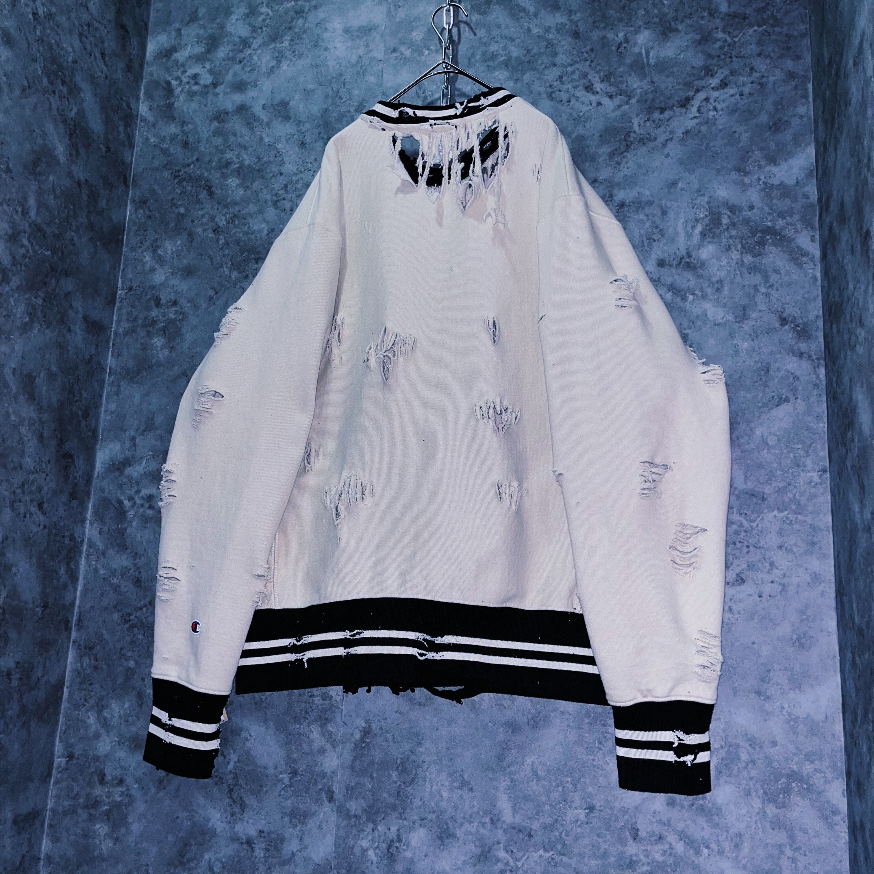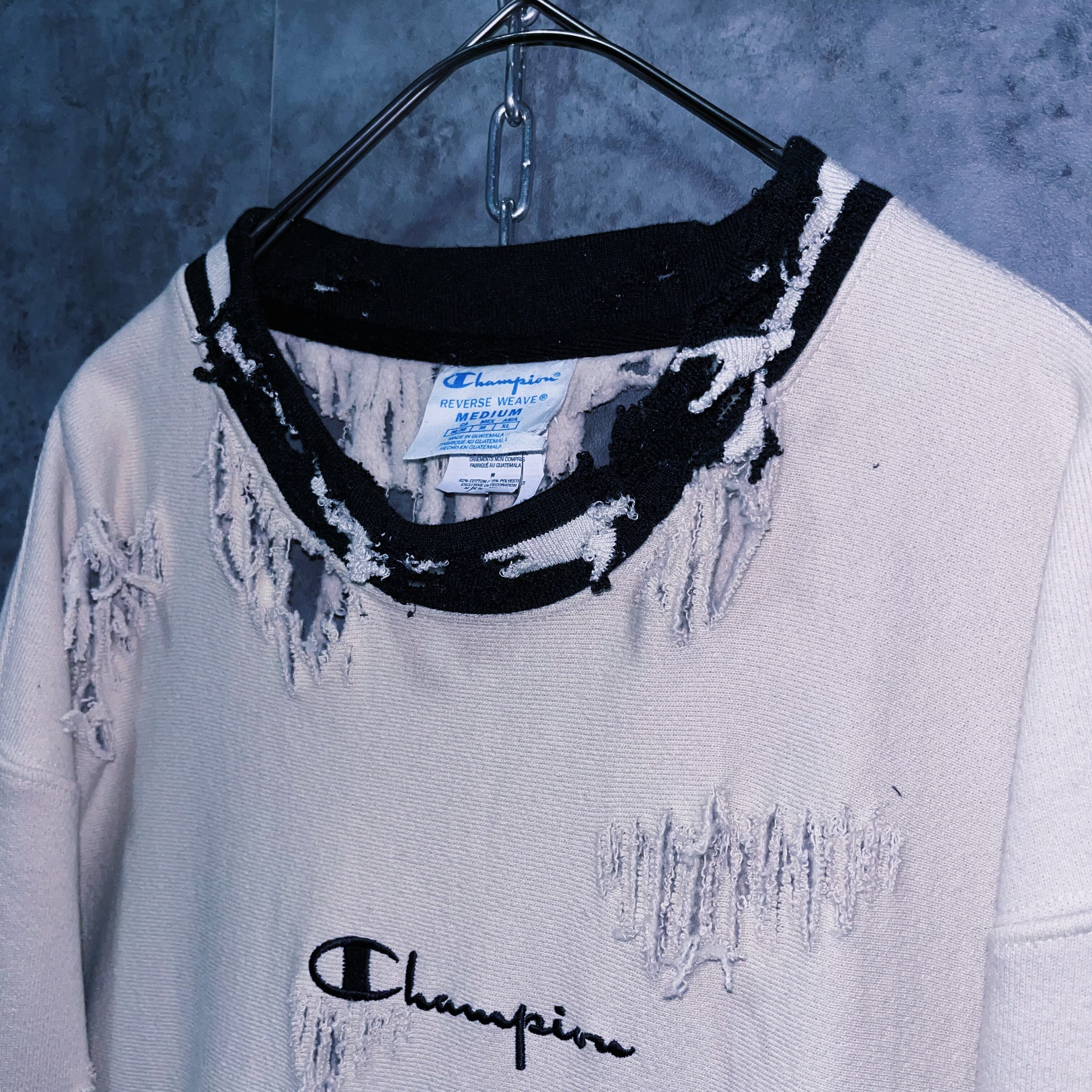 ヴィンテージ“champion”リバースウィーブロゴエンブロイダリーデザインボロカスタムスウェットプルオーバー
