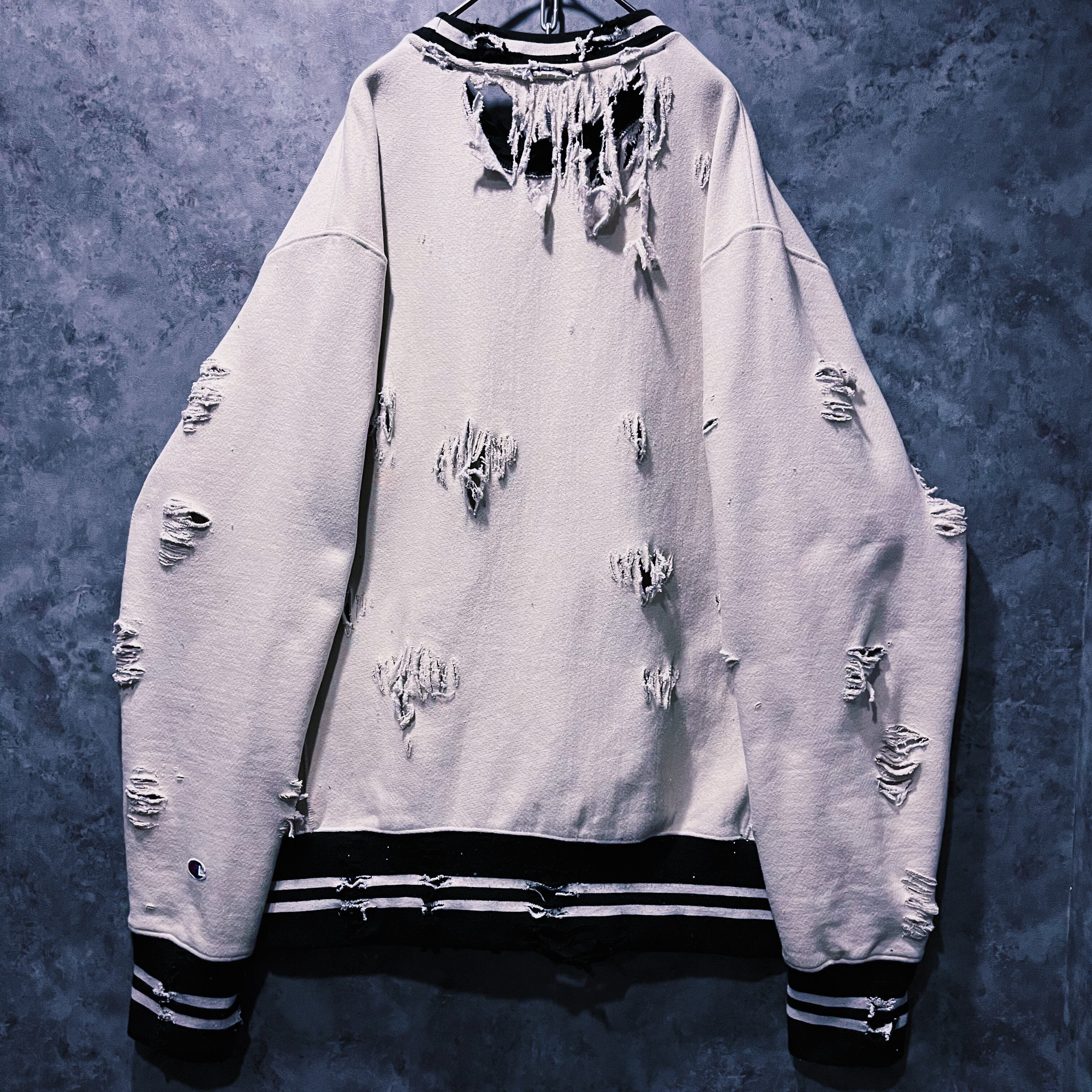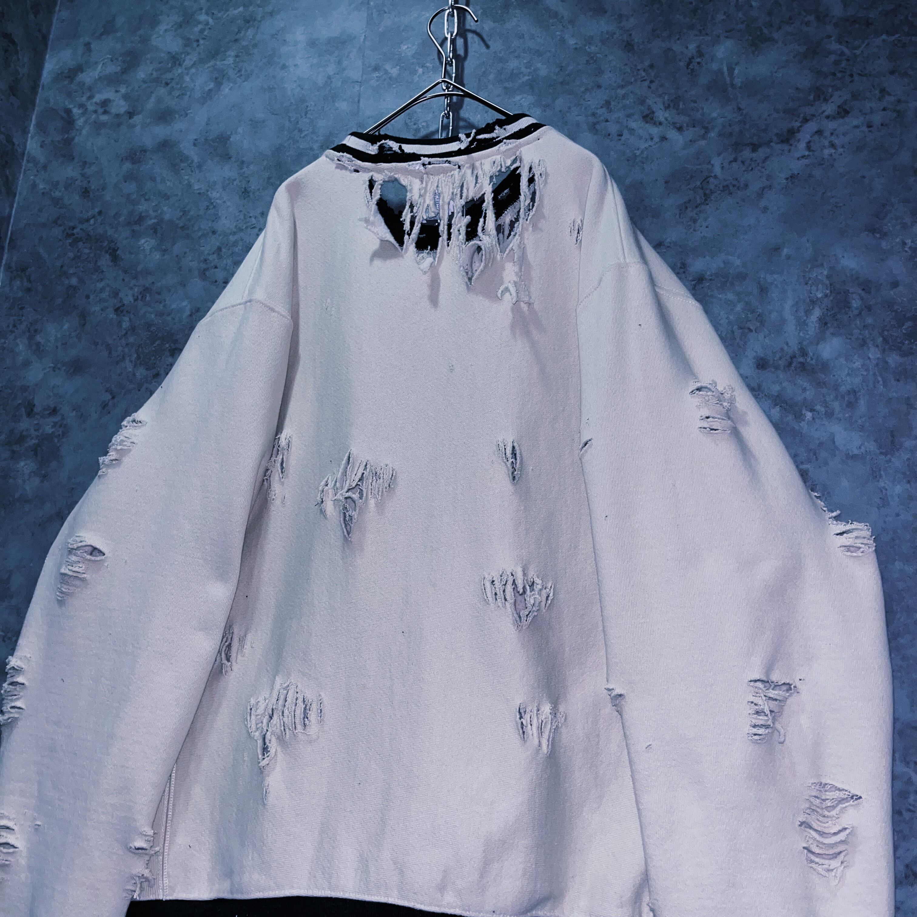 オンラインに載せる前に旅立つことも多く、かなり動きの早いリメイクアイテム。スウェットらしいカジュアルなデザインにボロ加工で一気に目を引くアイテムに。早い者勝ちの逸品。ぜひこの機会に。