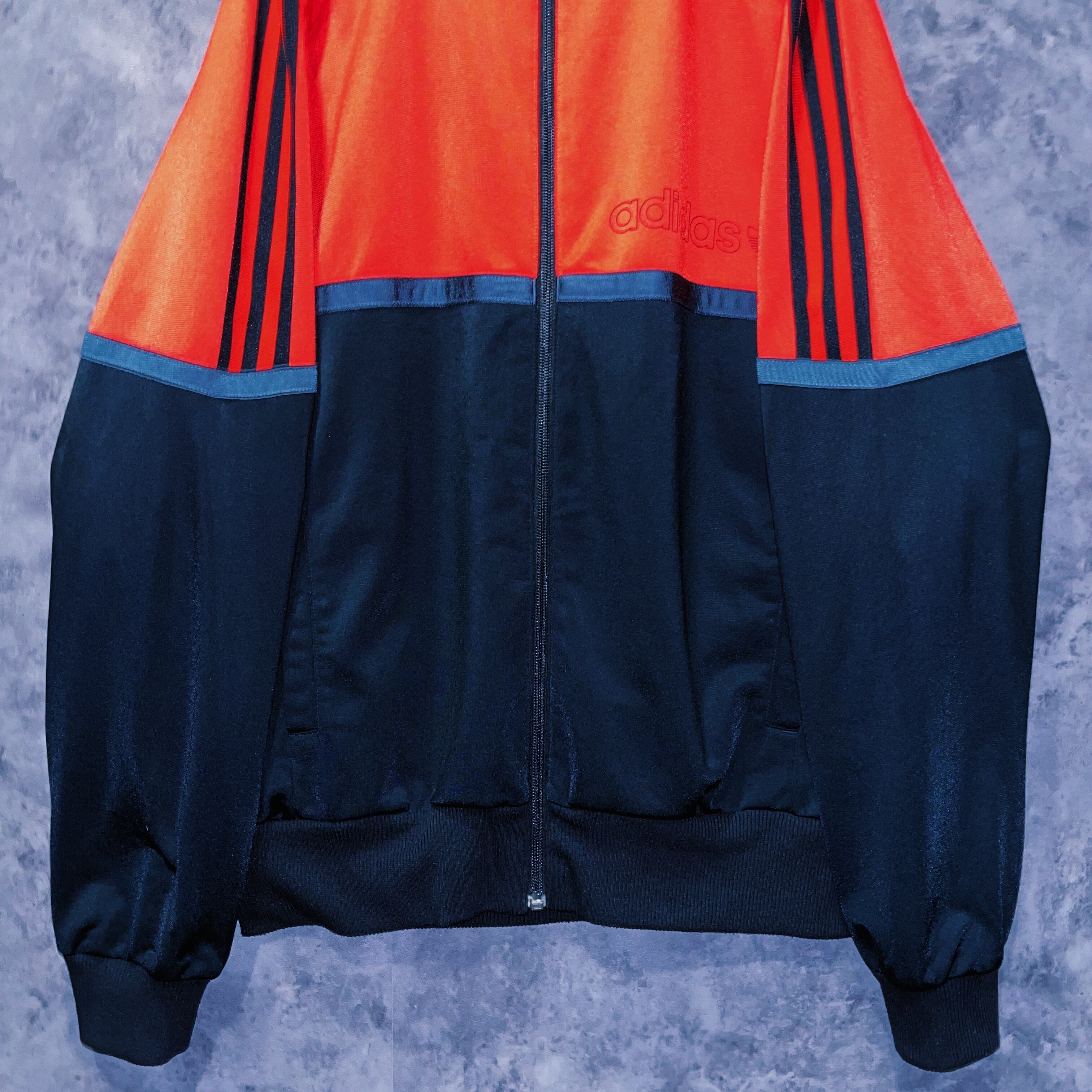”ATP”のような艶やかな光沢に身を包み、存在感のあるクロムオレンジとブラックがスイッチングした各色のコントラストが輝くクルーネックのトラックジャケット。