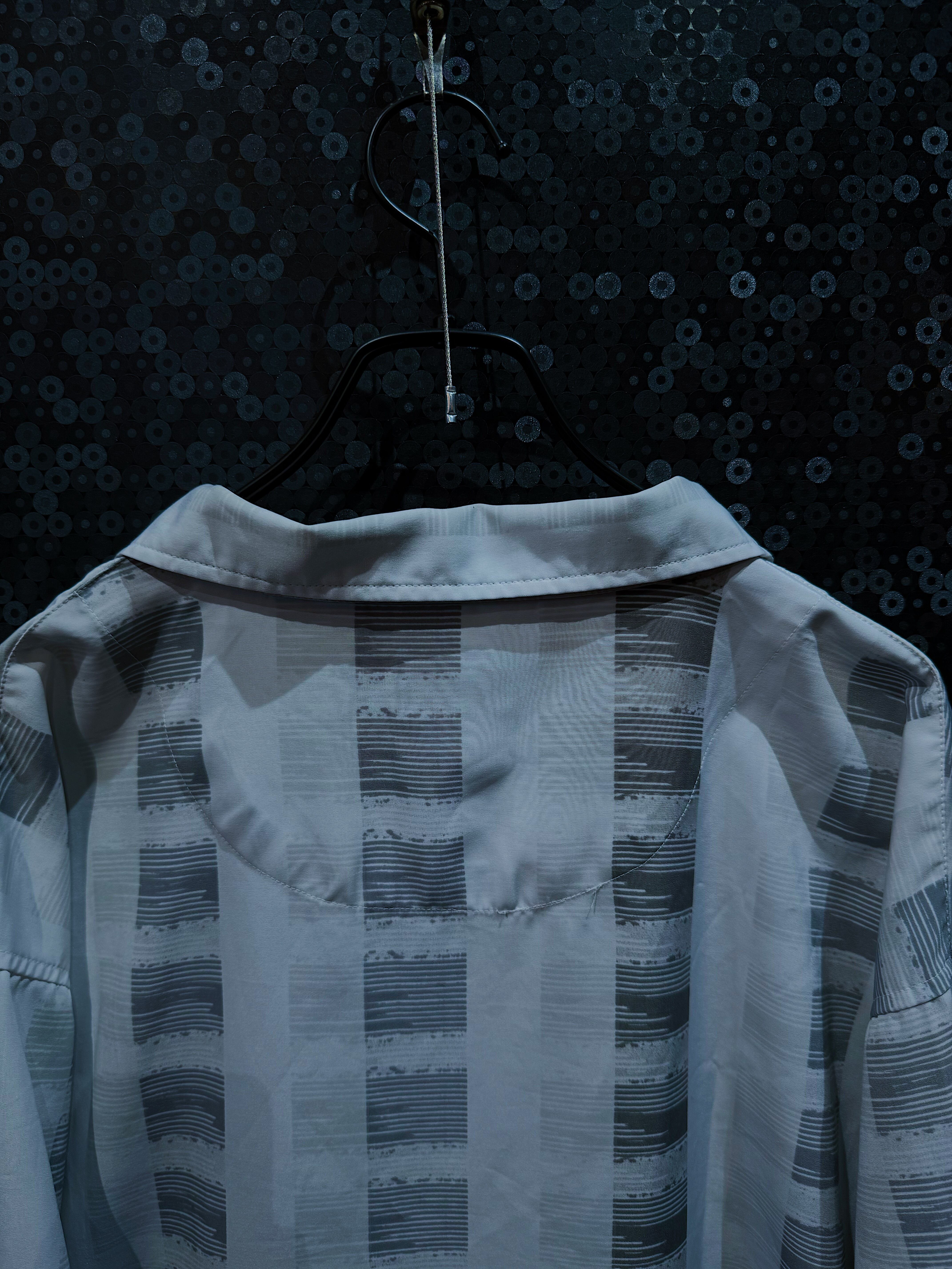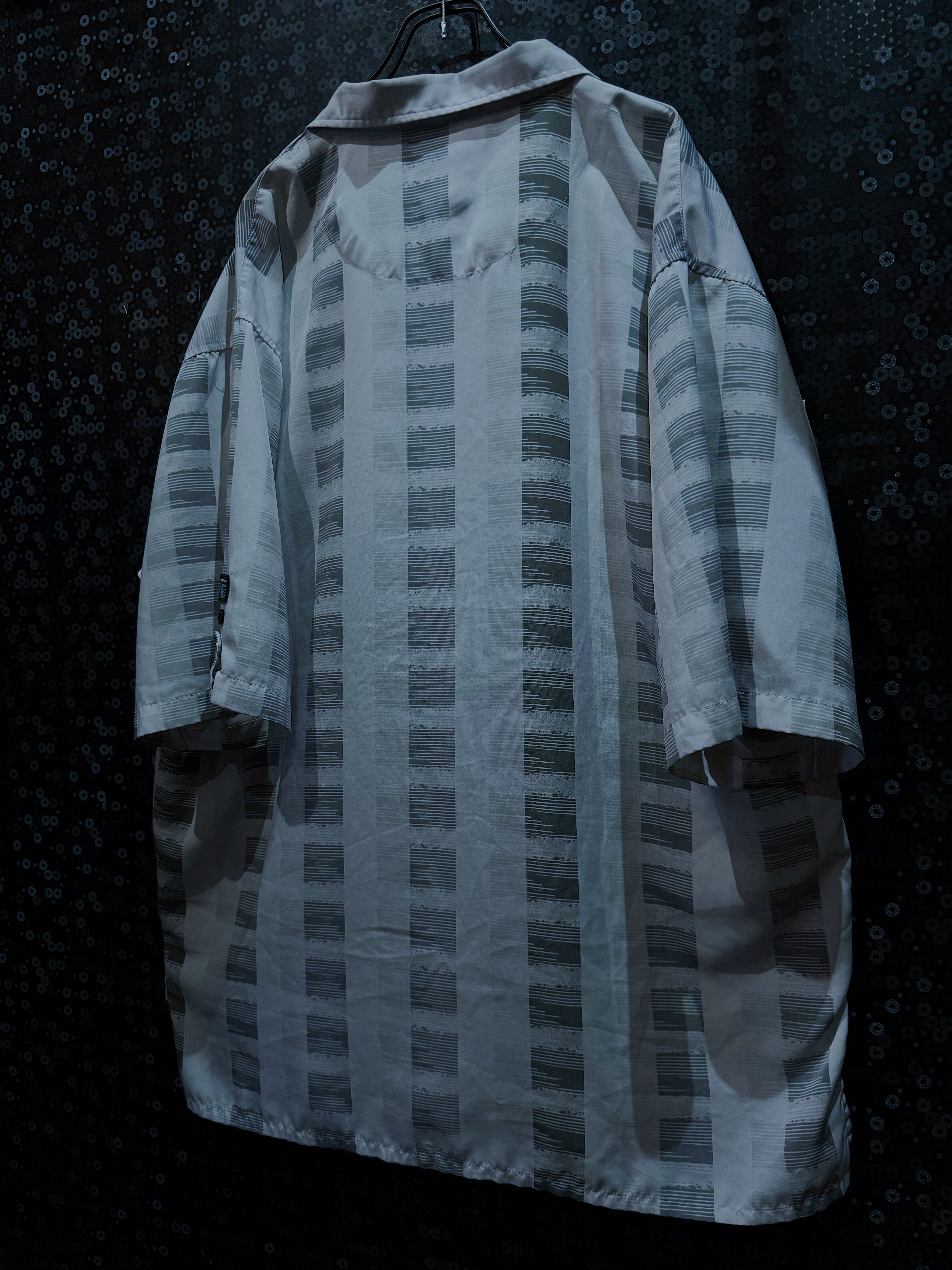 生地はやや光沢感のあるポリエステル素材。サテンのような質感が高級感を演出し、リゾートシャツのように羽織るのも◎。オーバーサイズで着用すれば、90’s〜Y2K感を存分に表現できます。