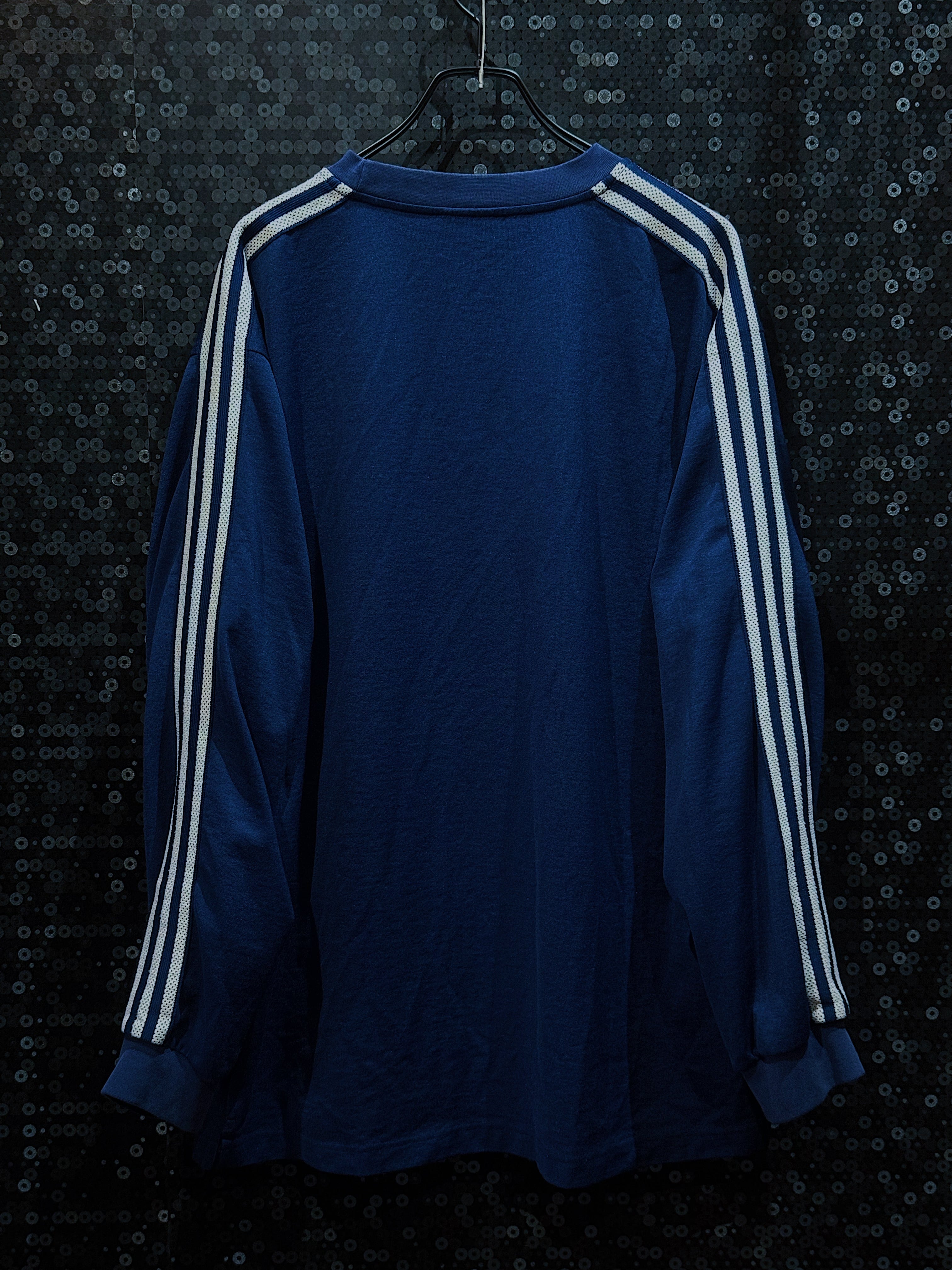 このネイビーカラーのヴィンテージadidasロングスリーブTシャツは、adidasのパフォーマンスライン特有のスポーティーさとクラシックな90sの雰囲気を兼ね備えた一着。