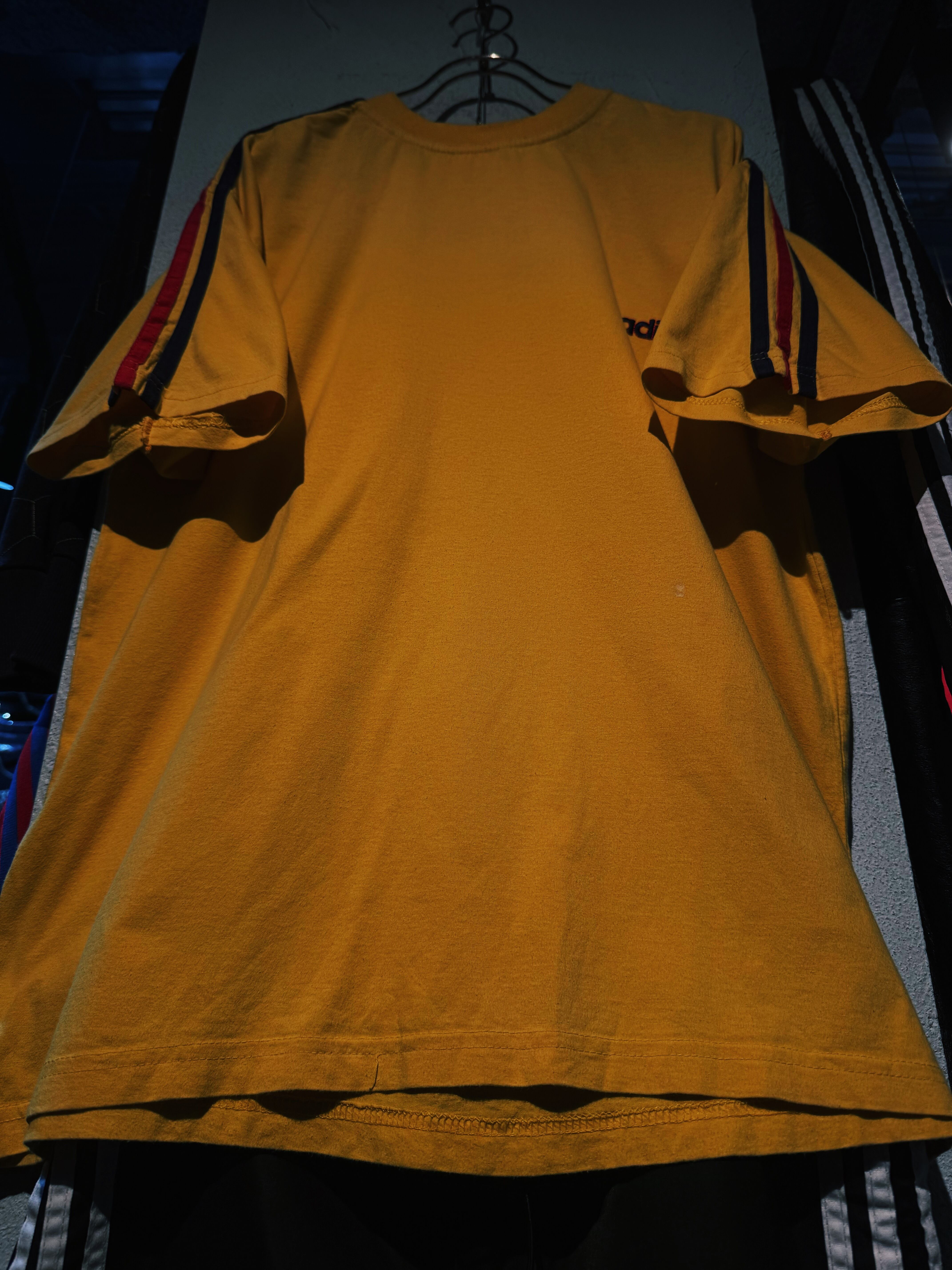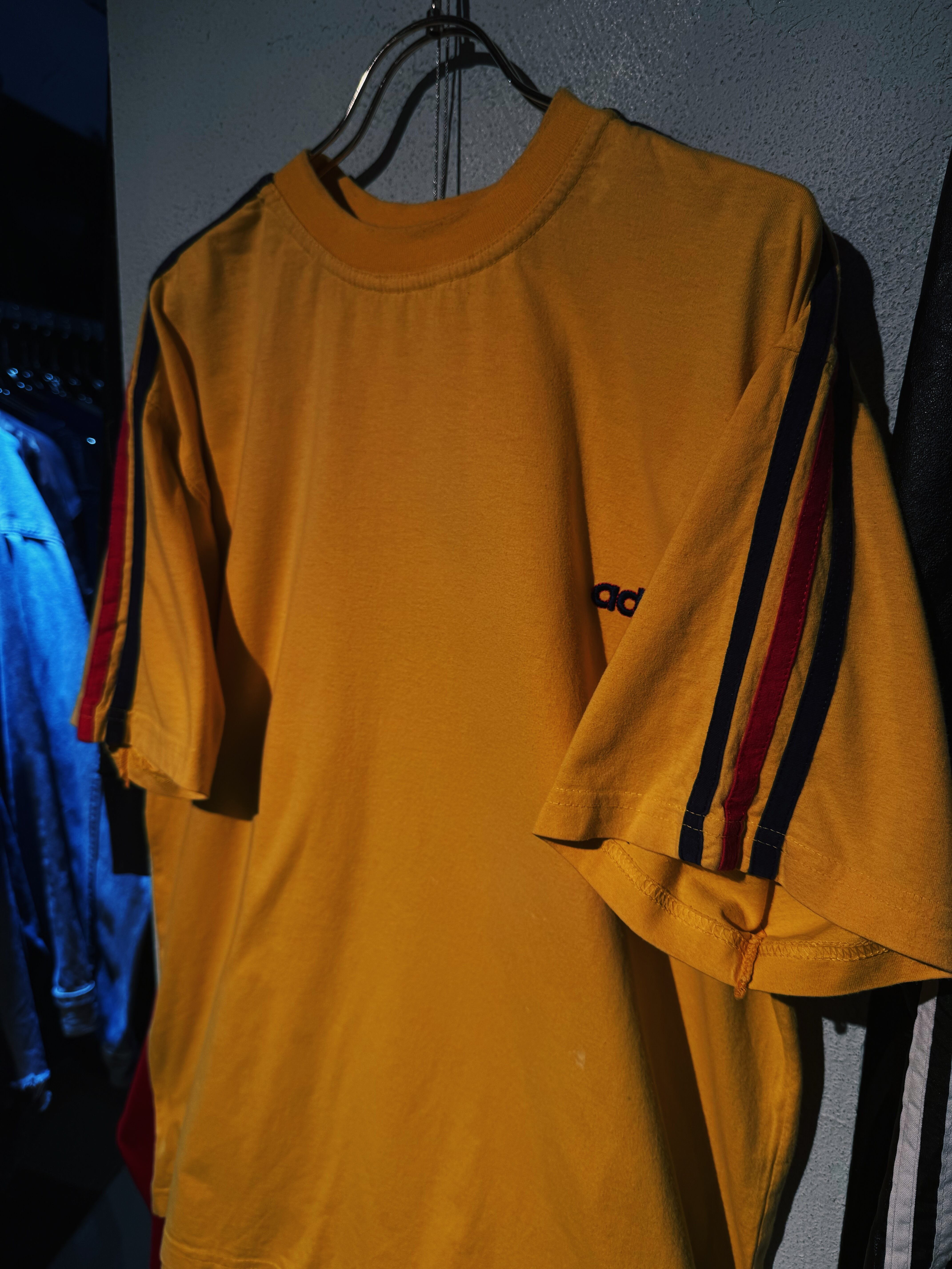 80年代ヴィンテージ"ADIDAS"イエローカラースリーストライプスデザインS/STシャツ