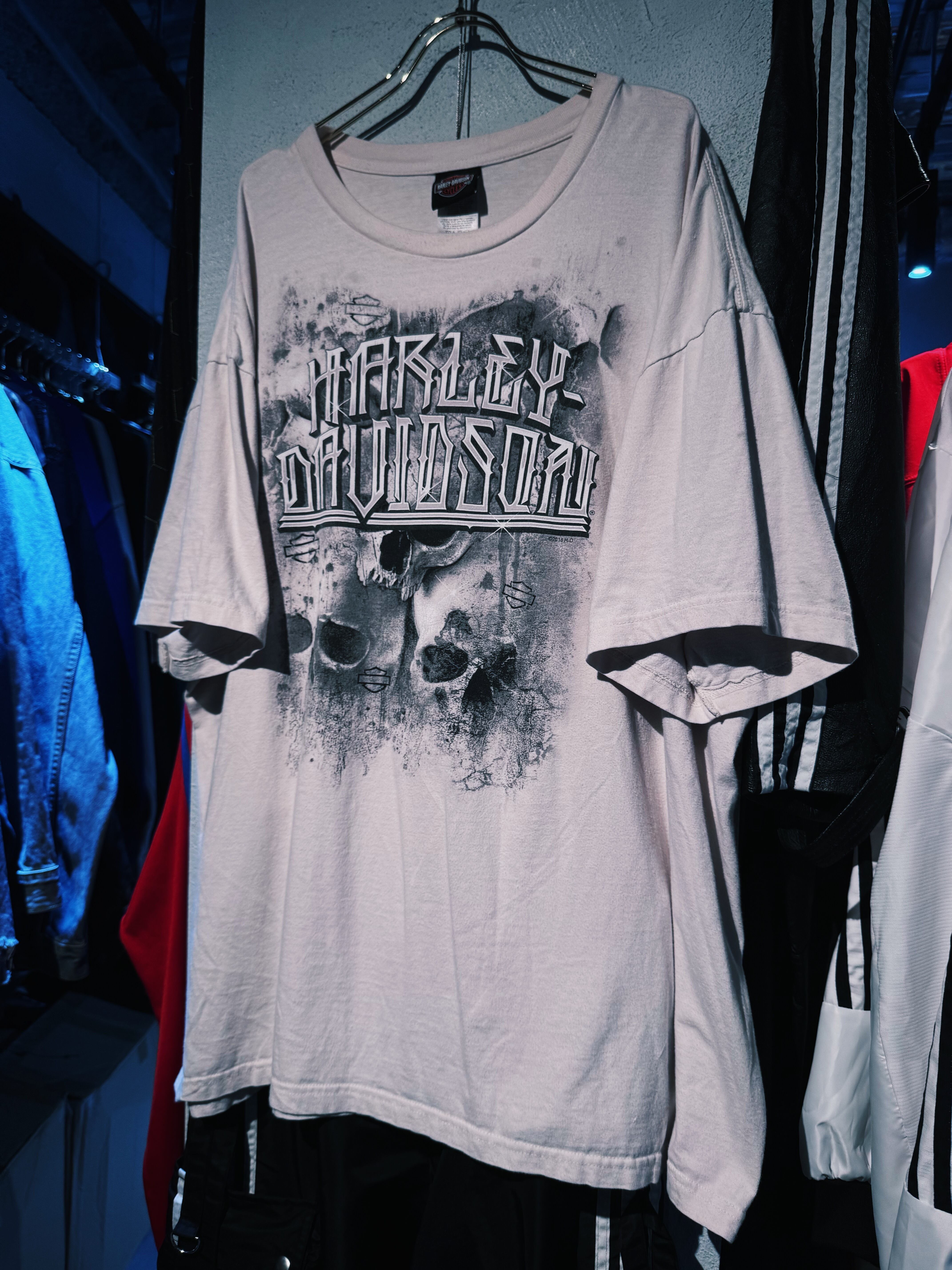 "ハーレーダビッドソン"ロゴスカルデザインオーバーサイズTシャツ