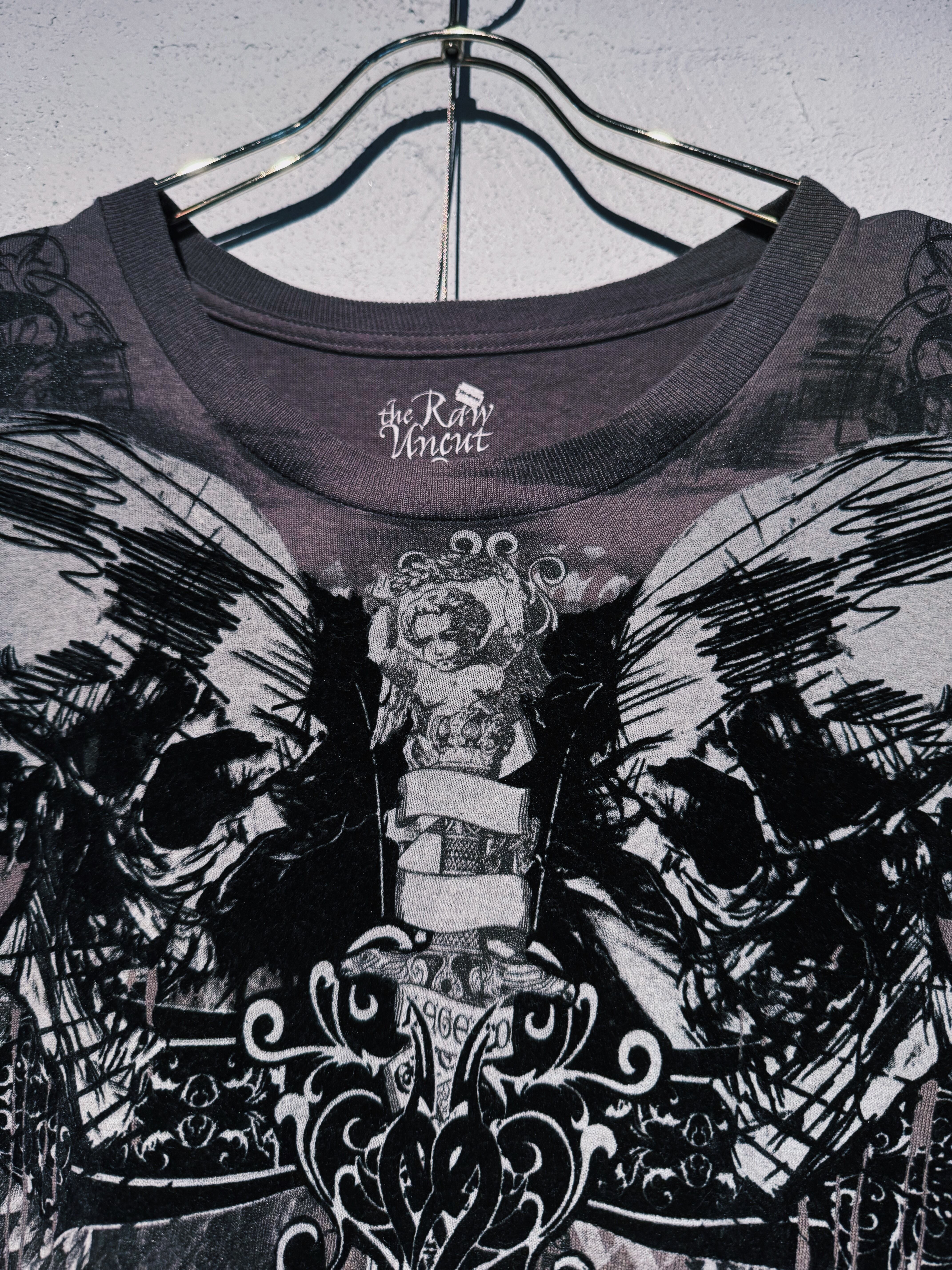 【D4C】vintage glay color skull & cross gorgeous emblem design over sized S/S T shirt