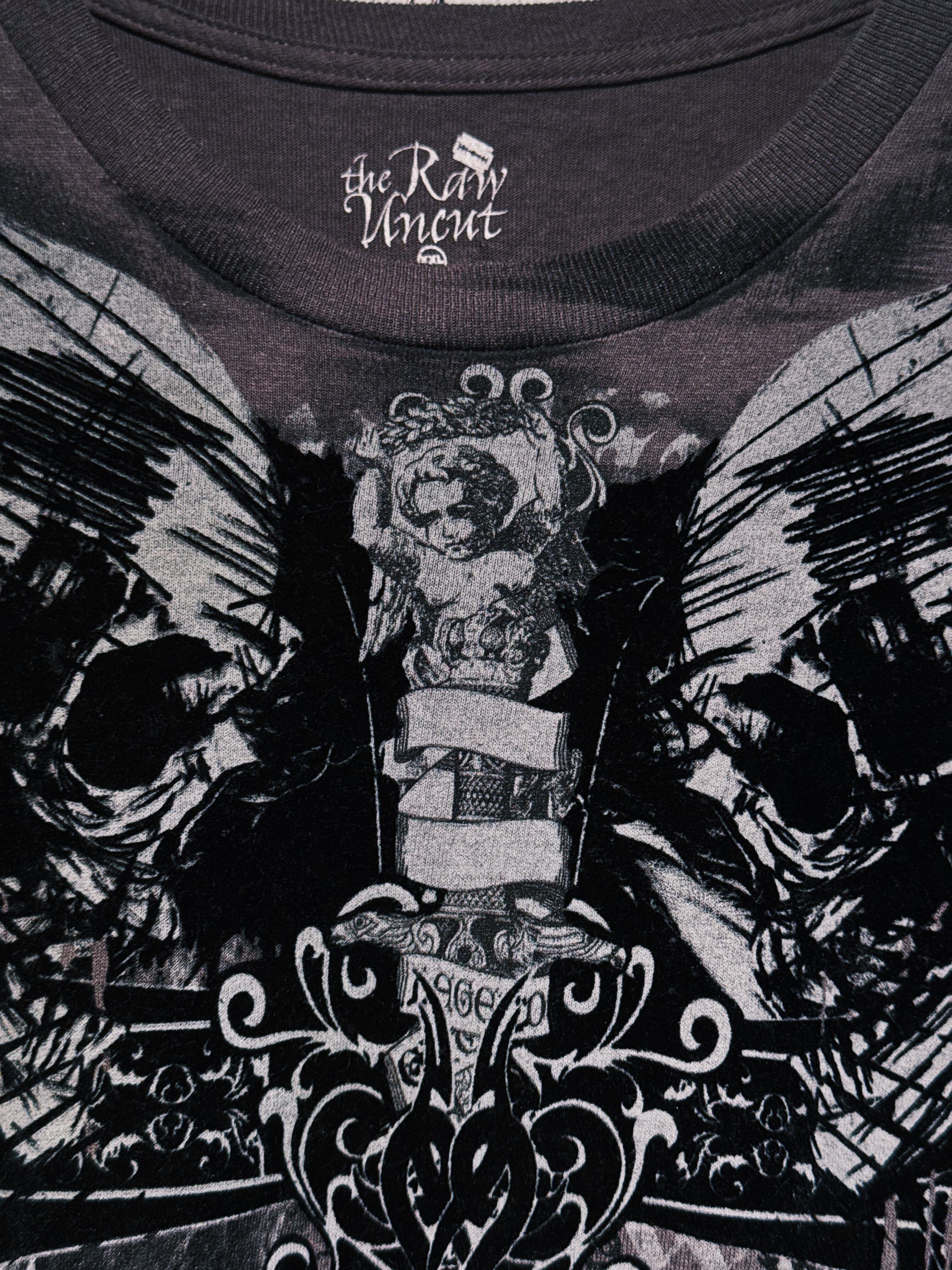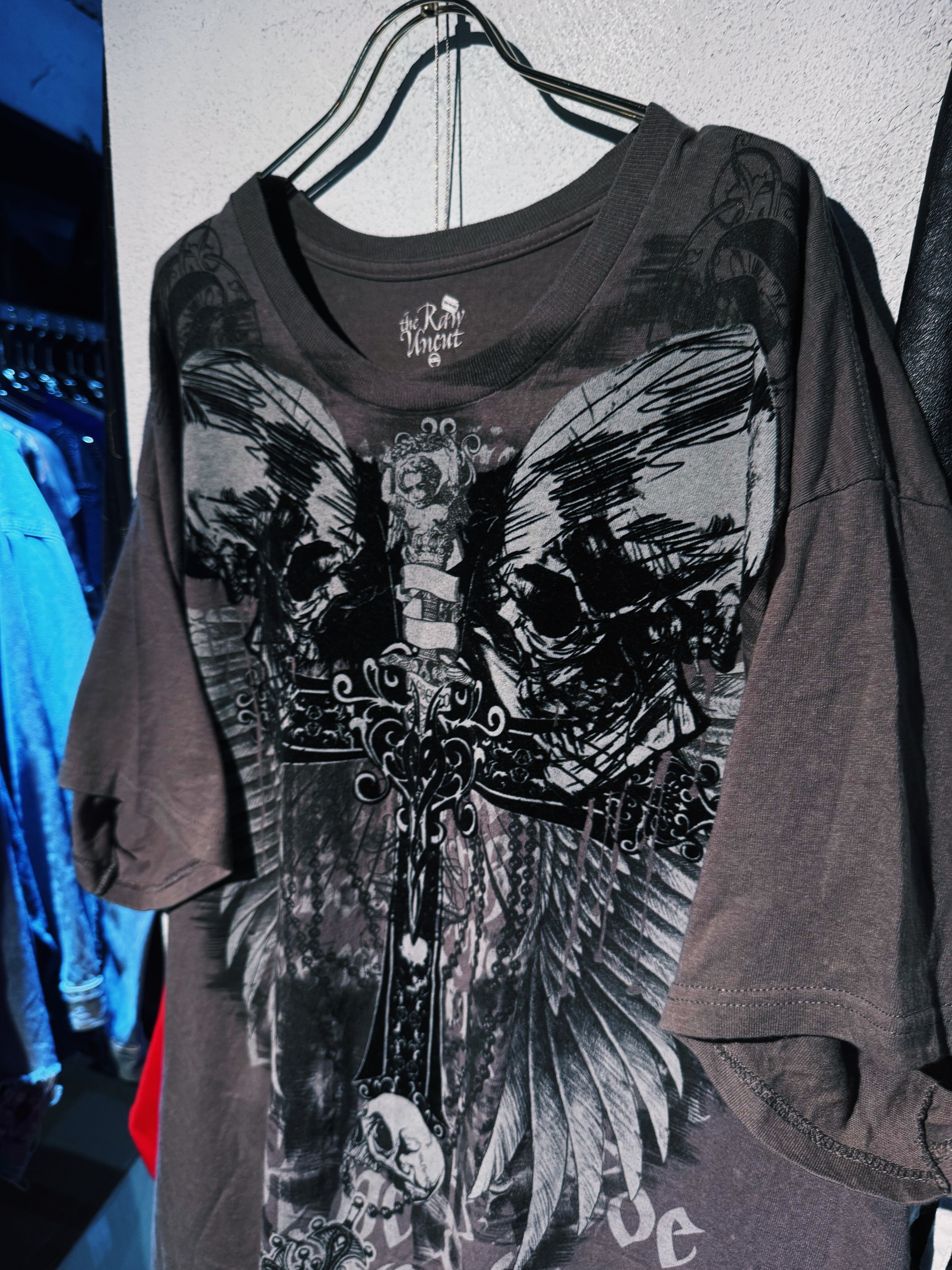 vintage glay color skull & cross gorgeous emblem design over sized S/S T shirt
