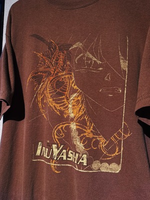 ボディがブラウンカラーな事もあり、ただでさえ希少な犬夜叉のTシャツですが更に倍、かなりレアな1着となっております。