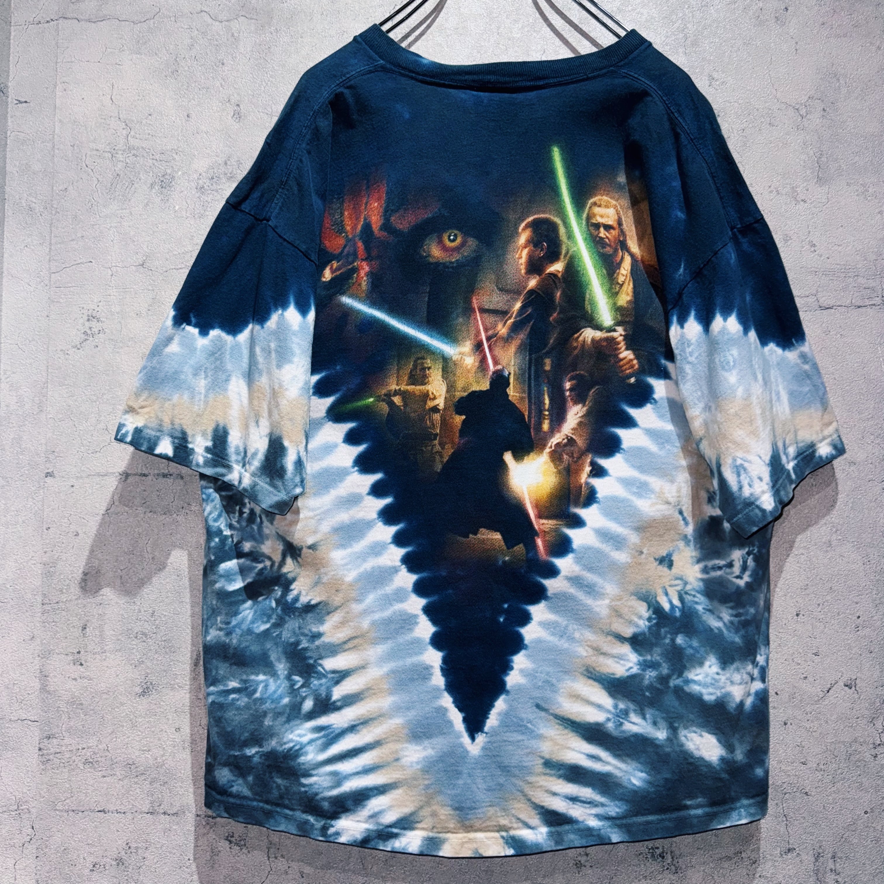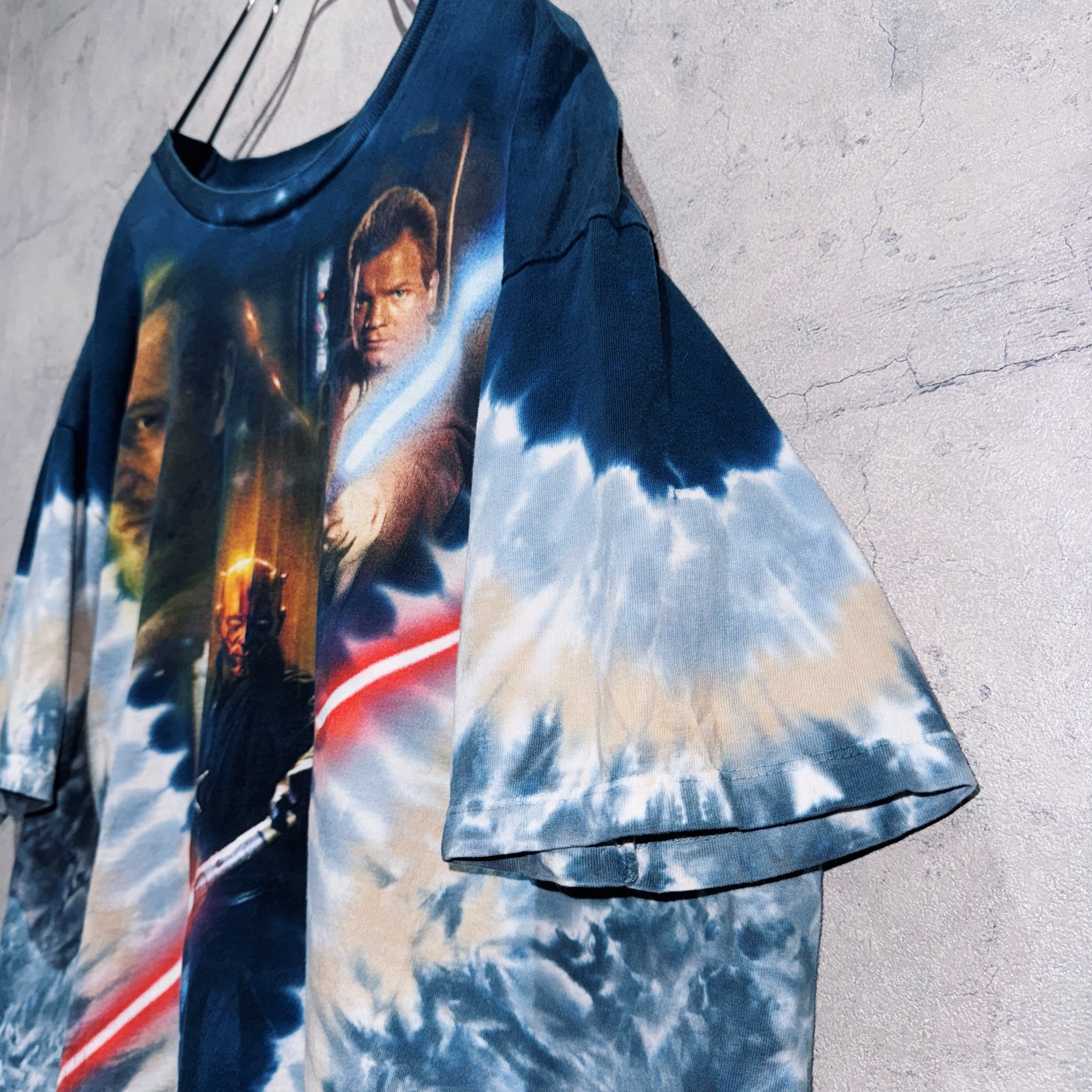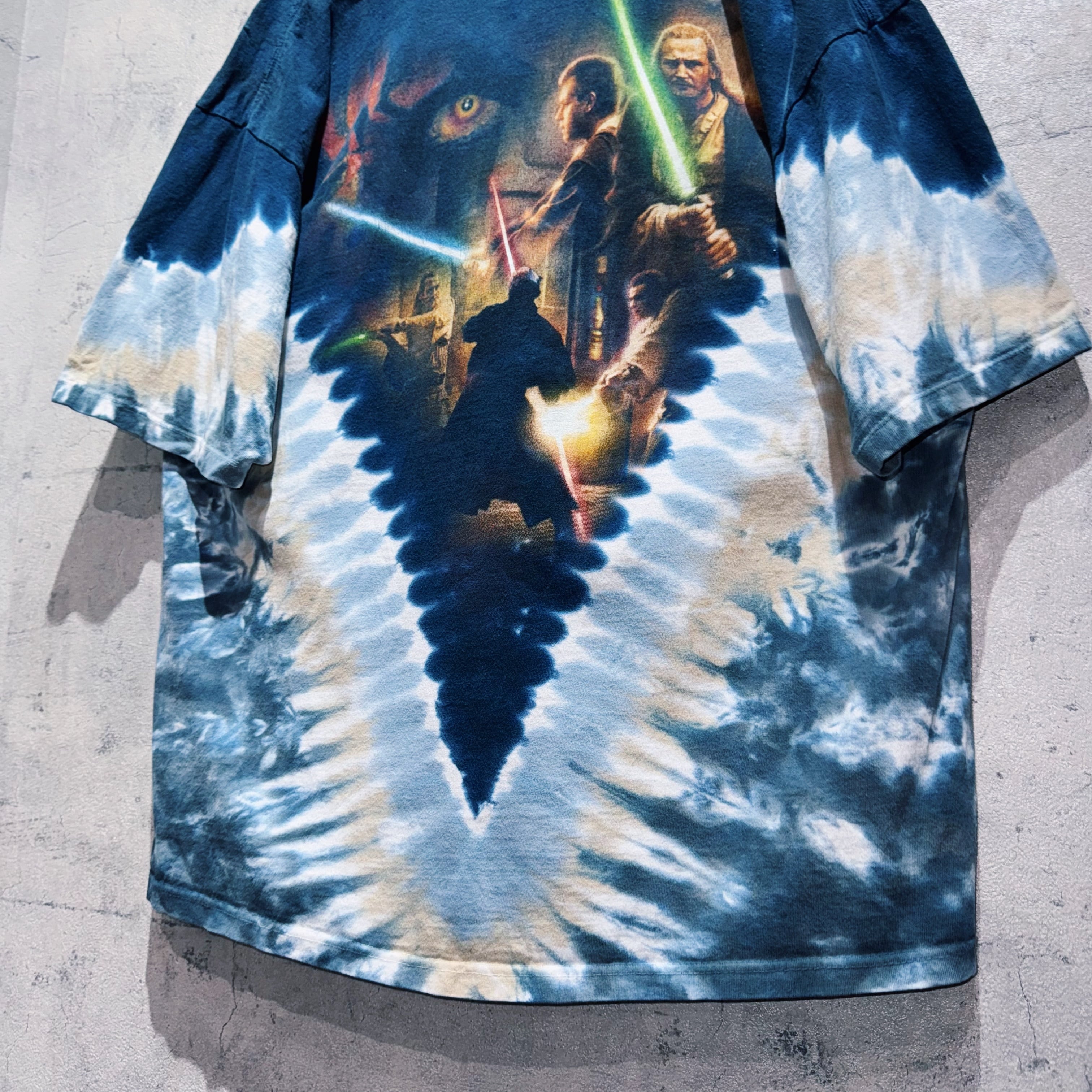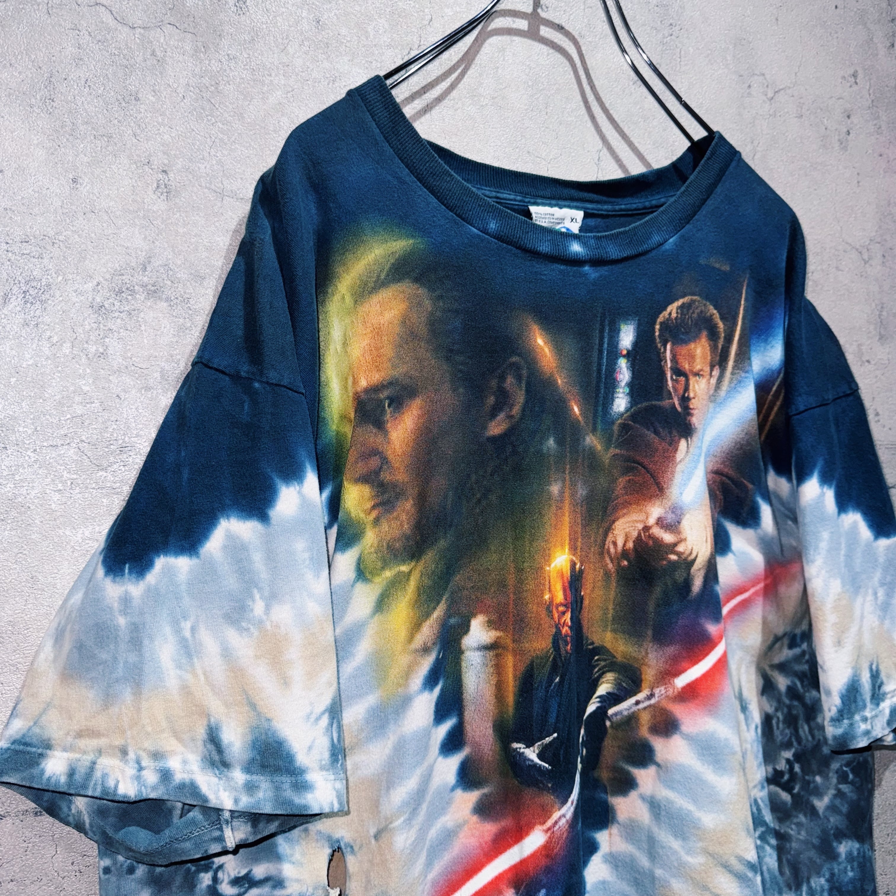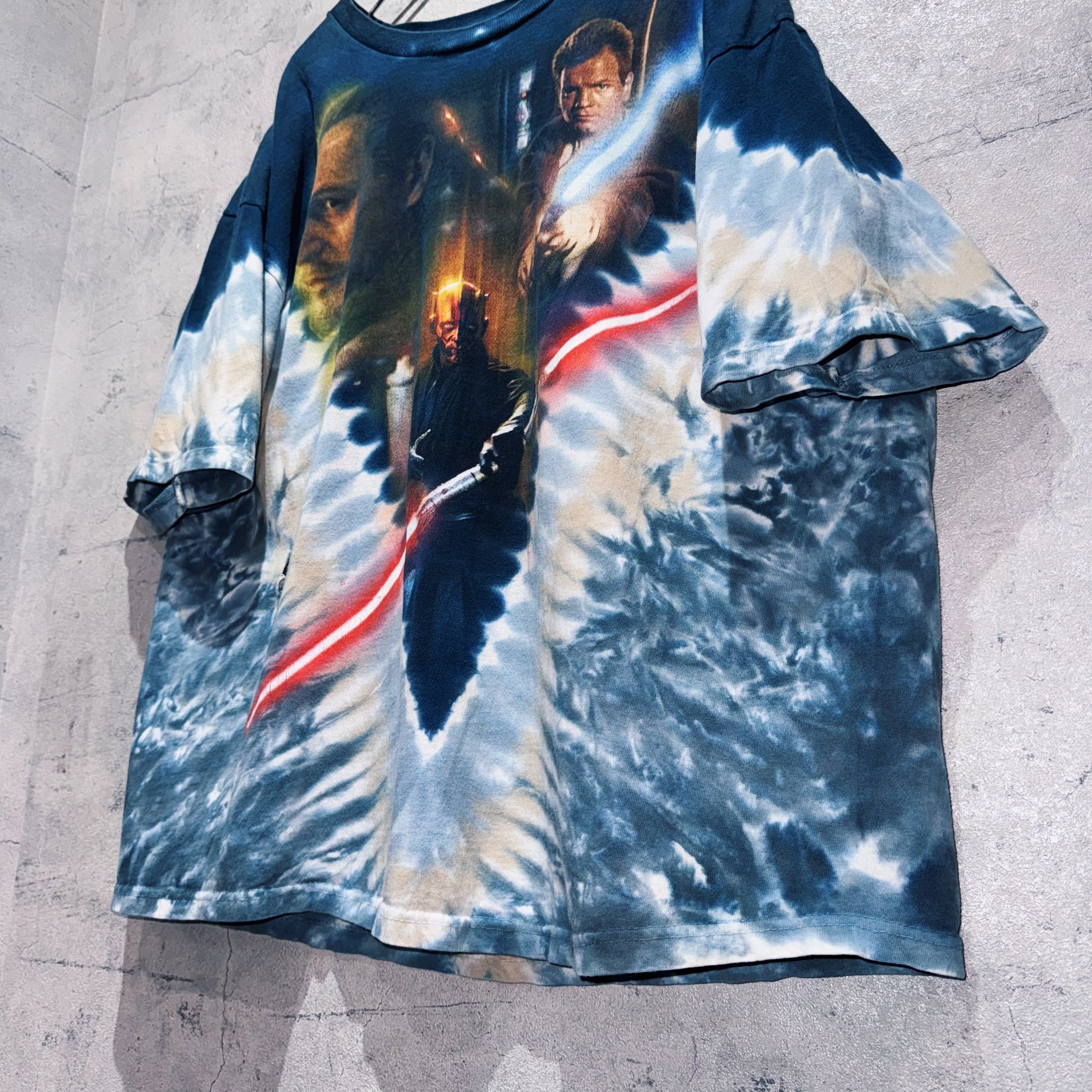 90年代"リキッドブルー"「スターウォーズ」エピソード1デザインタイダイTシャツ