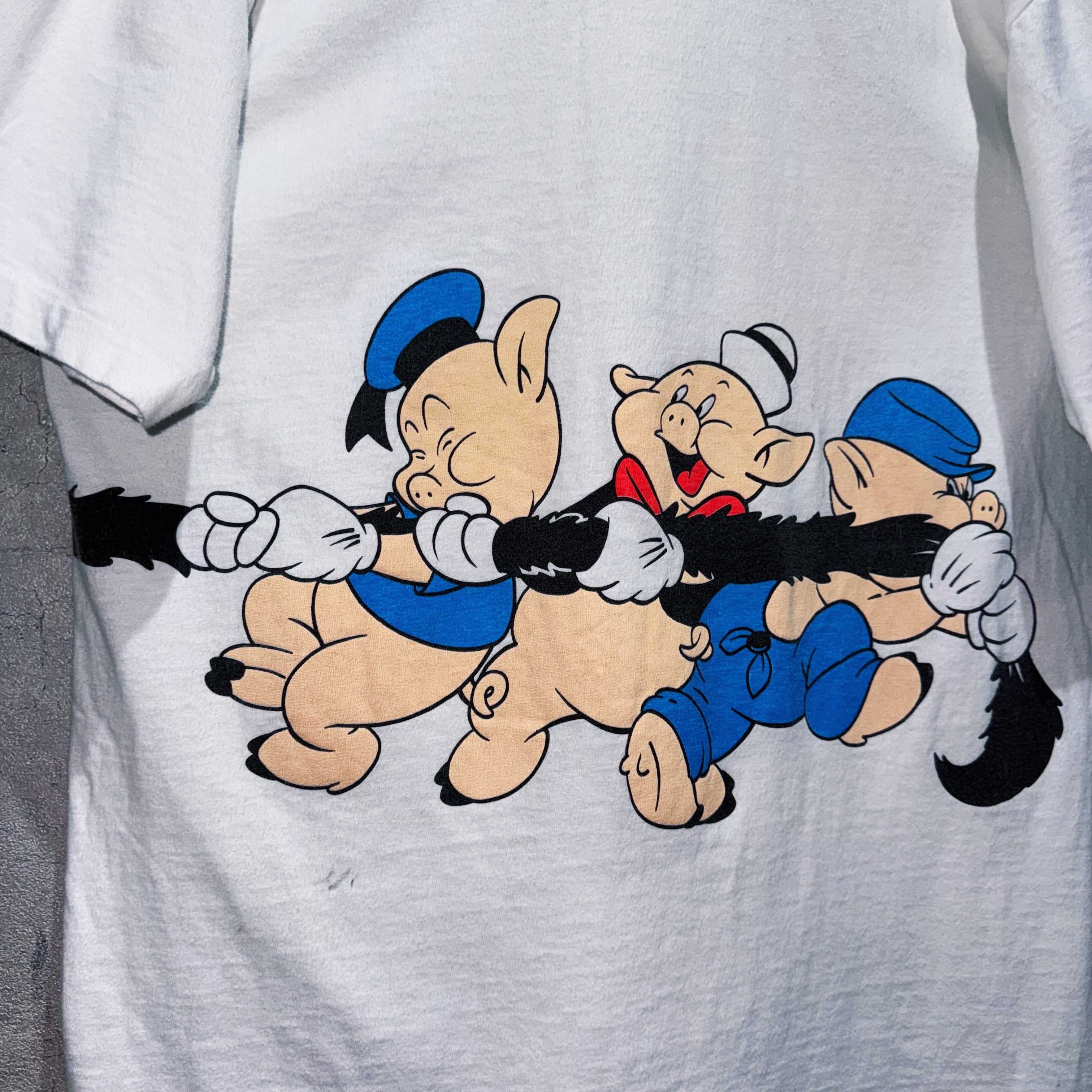 80年代"3匹の子ぶた"ビッグバッドウルフプリントデザインTシャツ