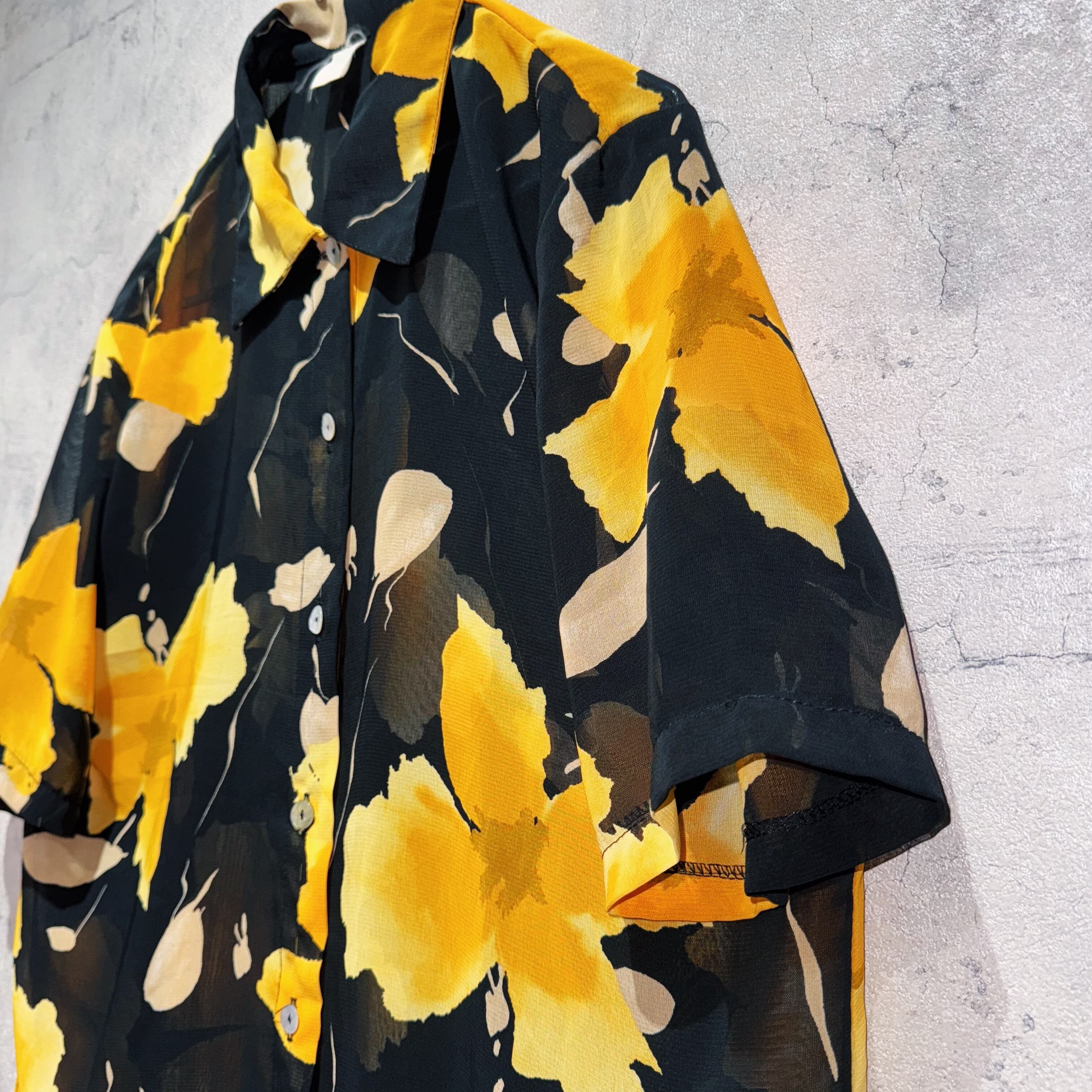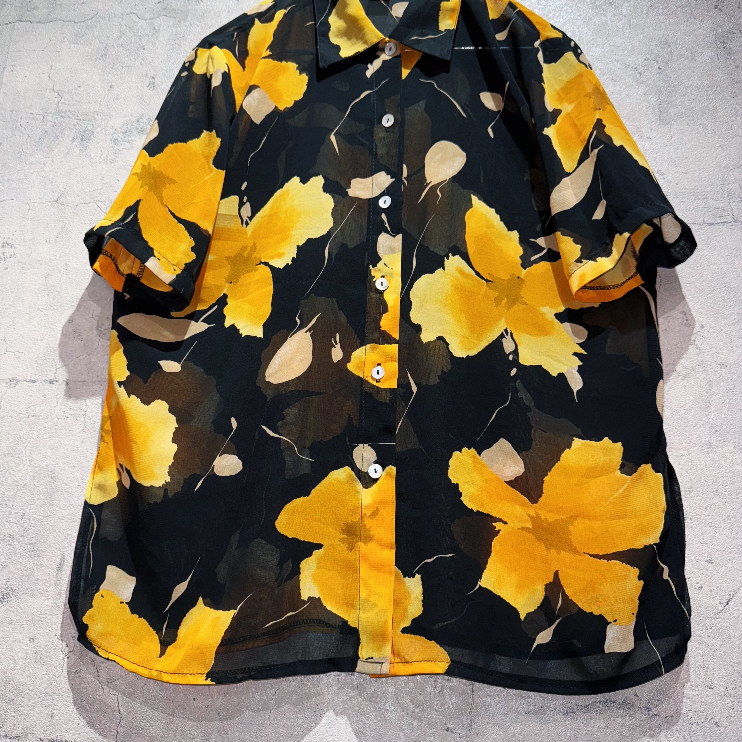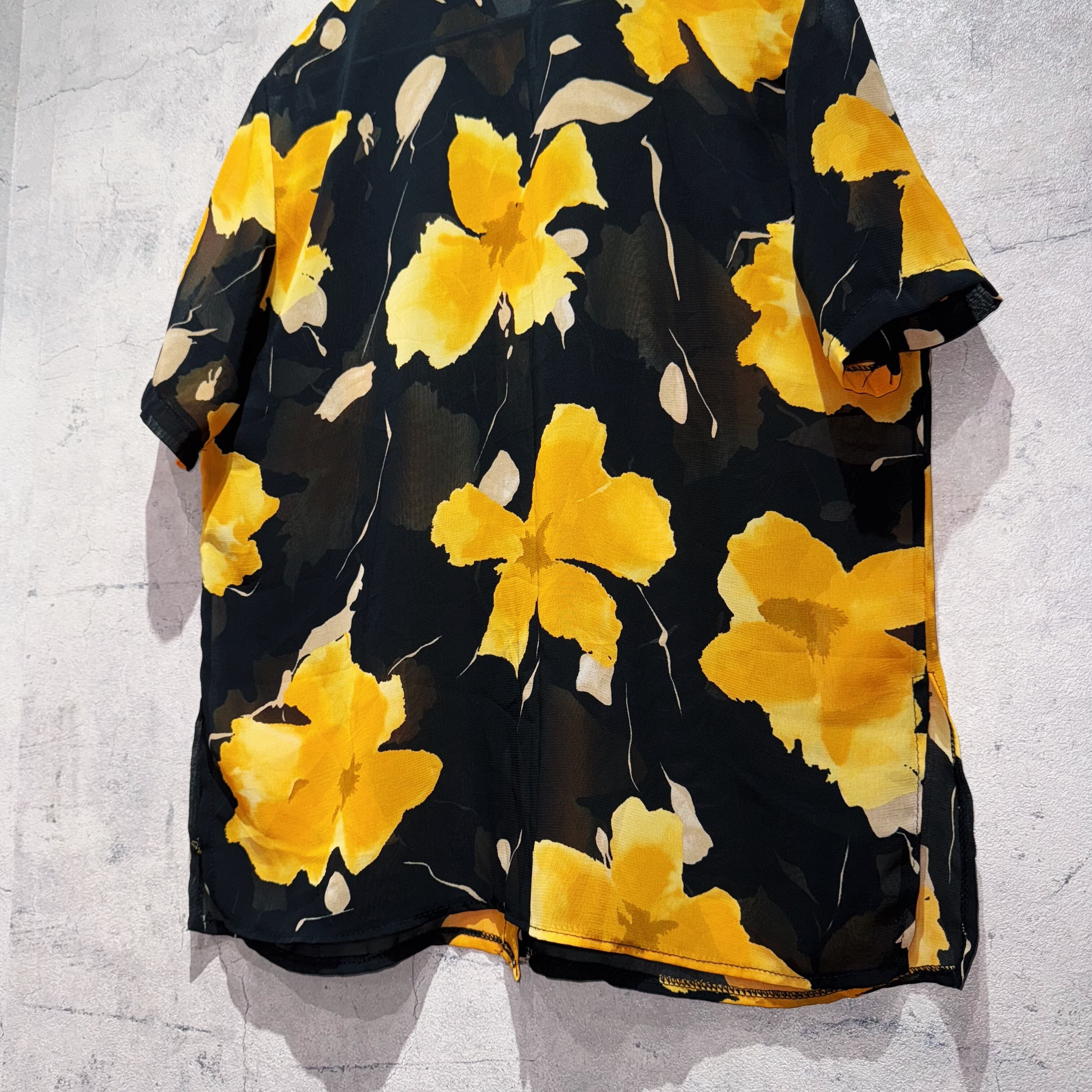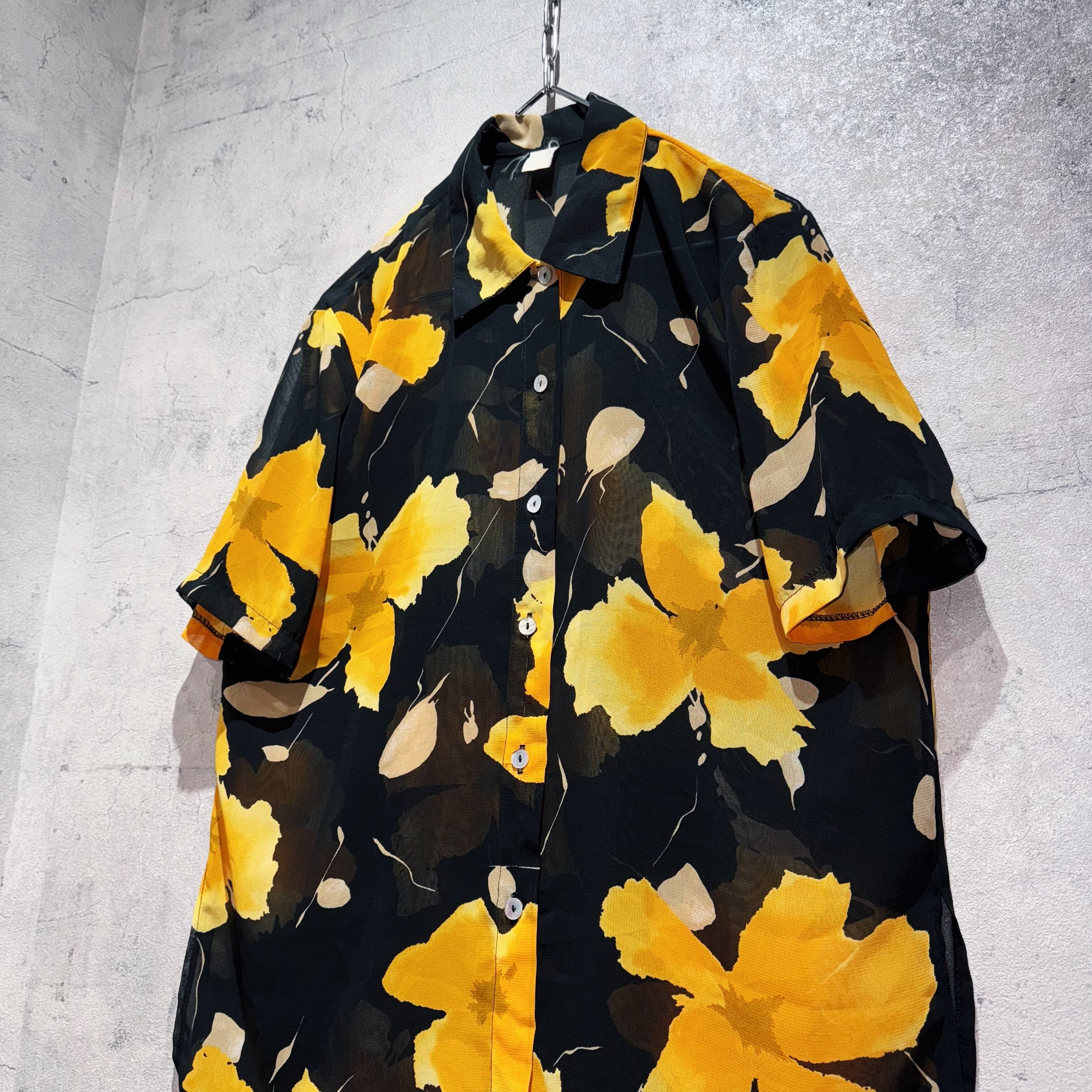 ヴィンテージアートグラフィックフラワーパターンショートスリーブシアーシャツ
