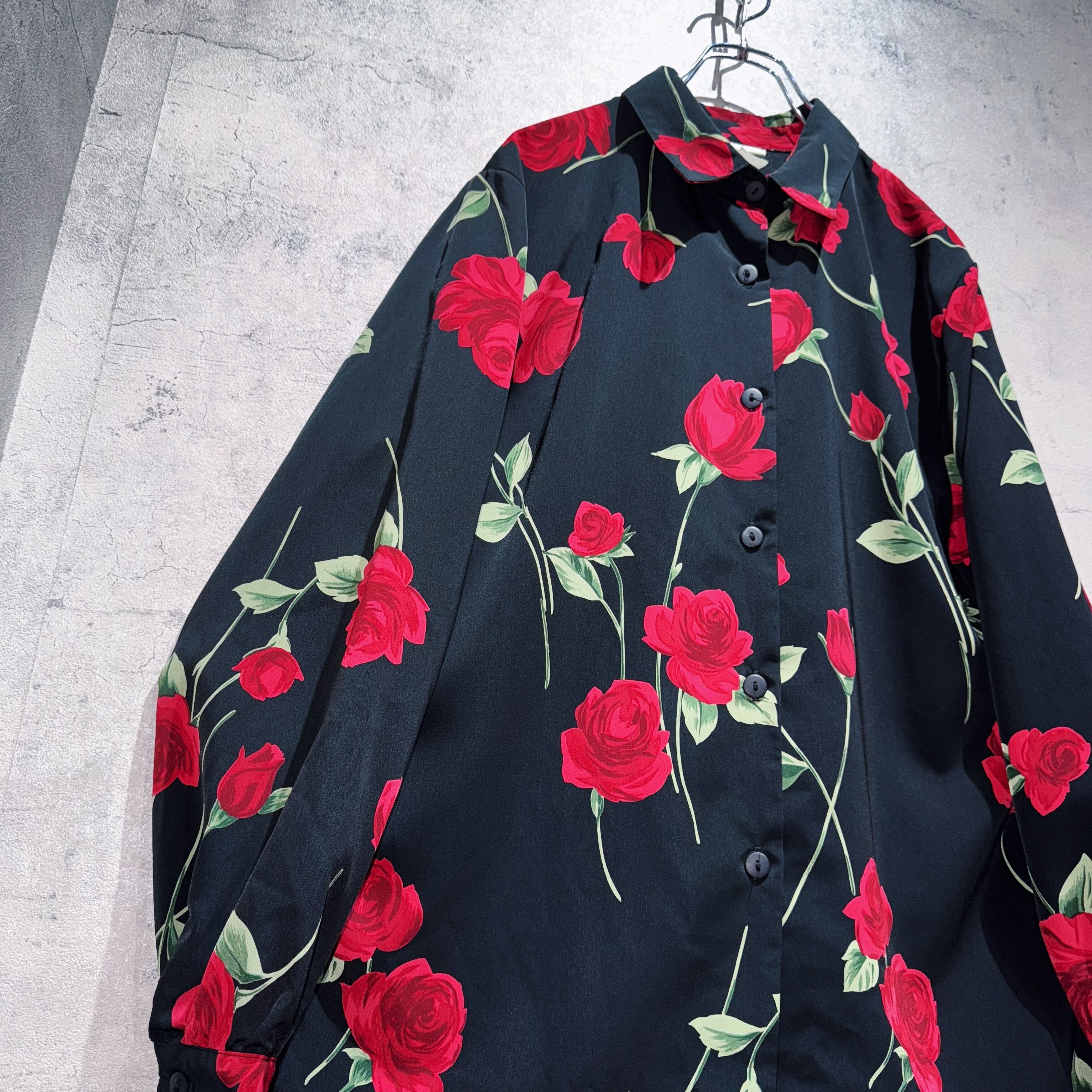 ヴィンテージビューティフルローズパターンデザインシャツ