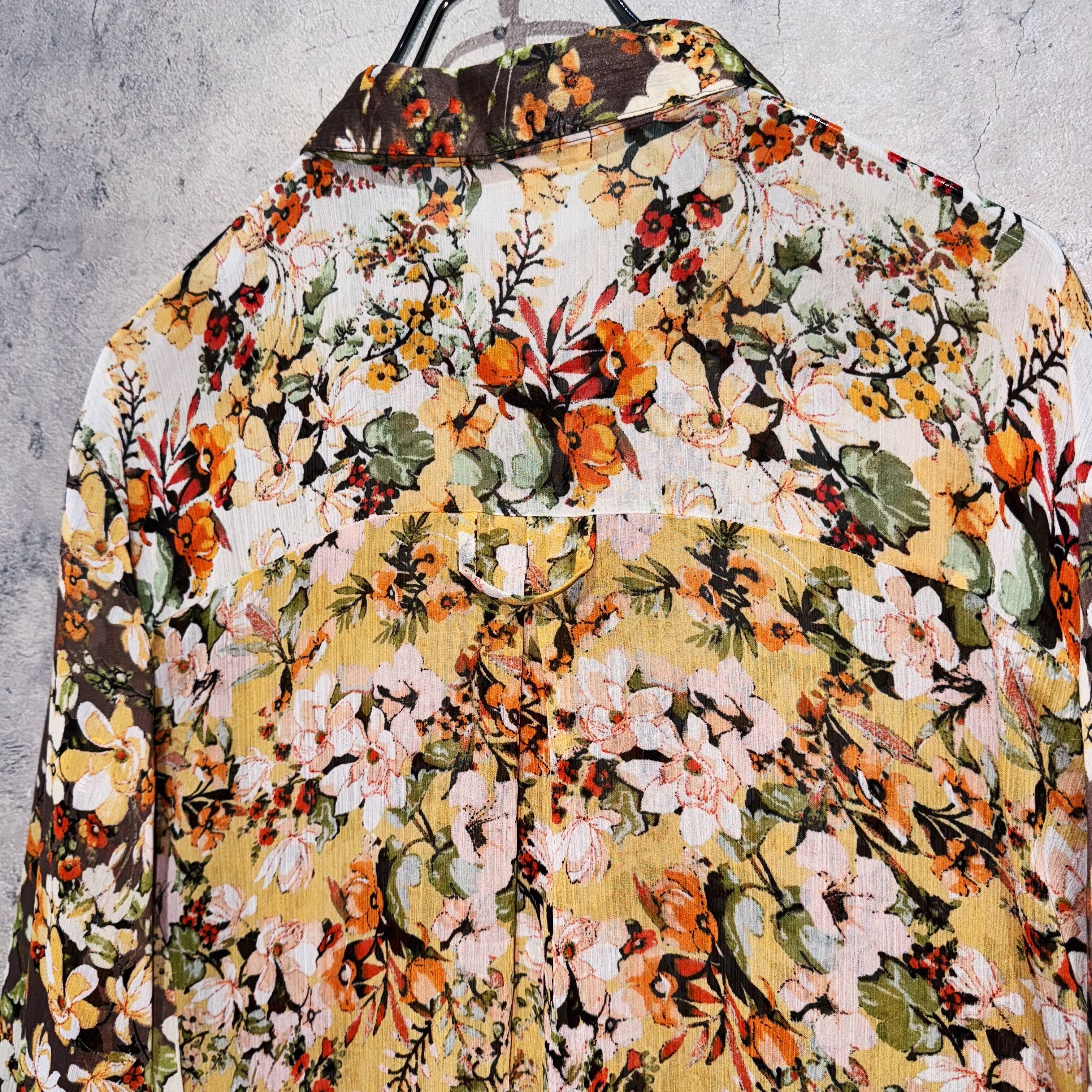 vintage beautiful flower pattern design sheer shirt