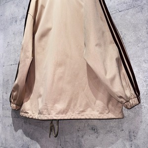 トレンドのトラックジャケットの中でも特に人気が高いのがブラウンカラー。今回はベージュのボディにアディダスの代名詞である3本線を載せたデザイン。