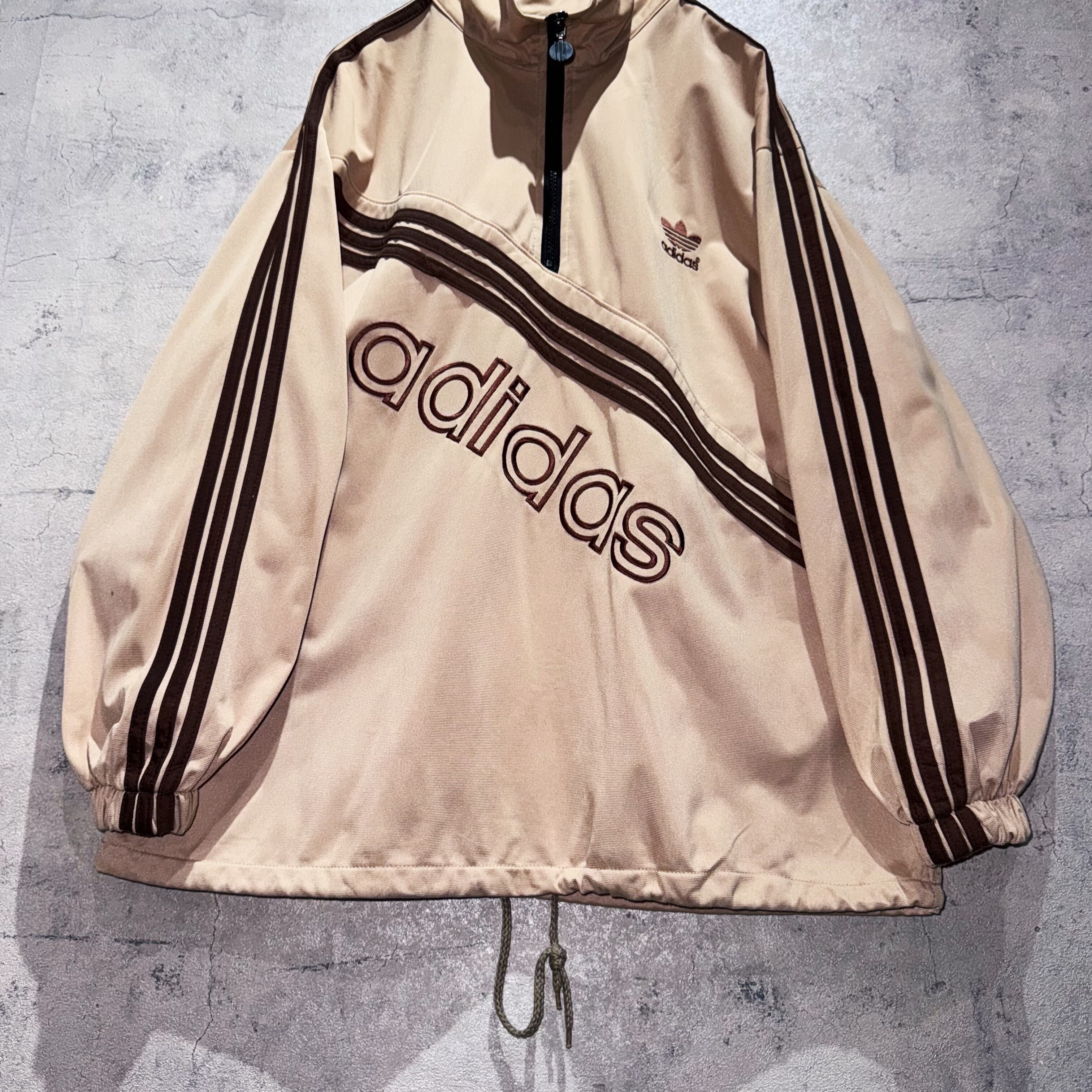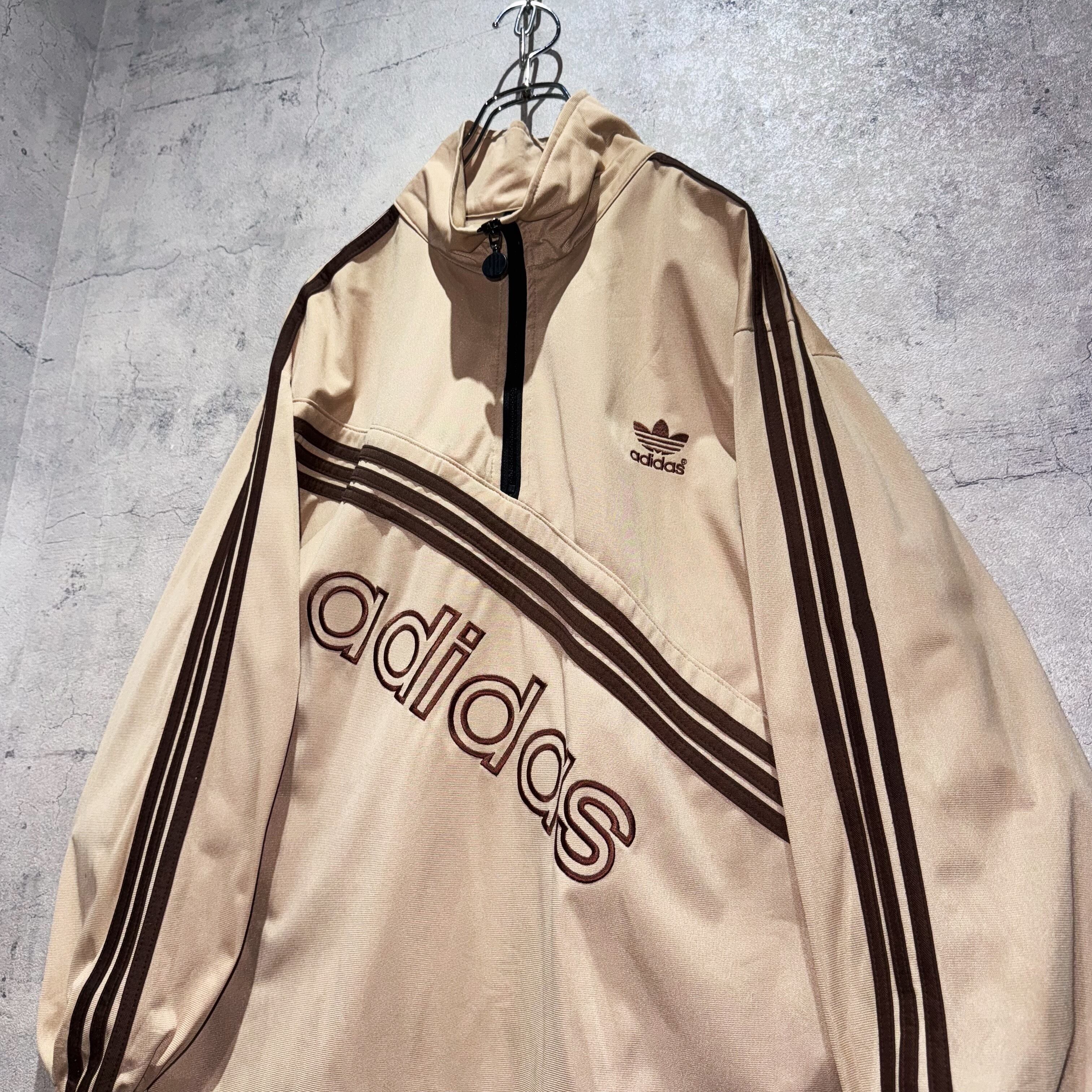 "アディダス"ベージュ×ブラウンカラーハーフジップデザイントラックジャケット