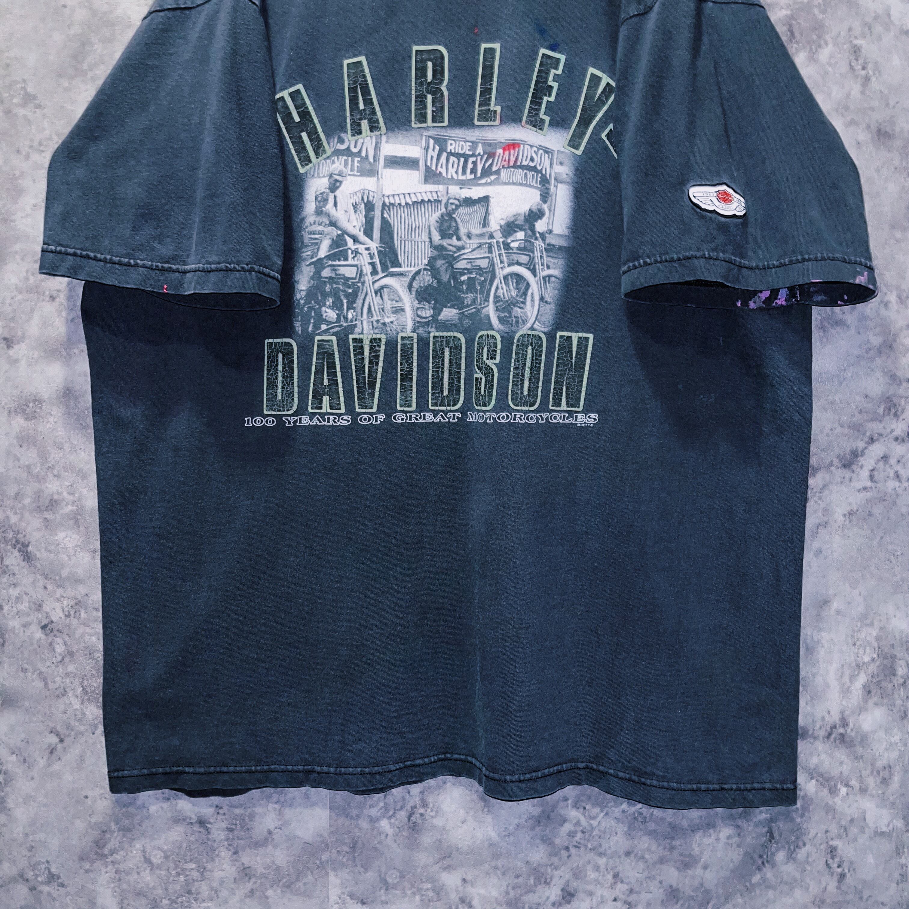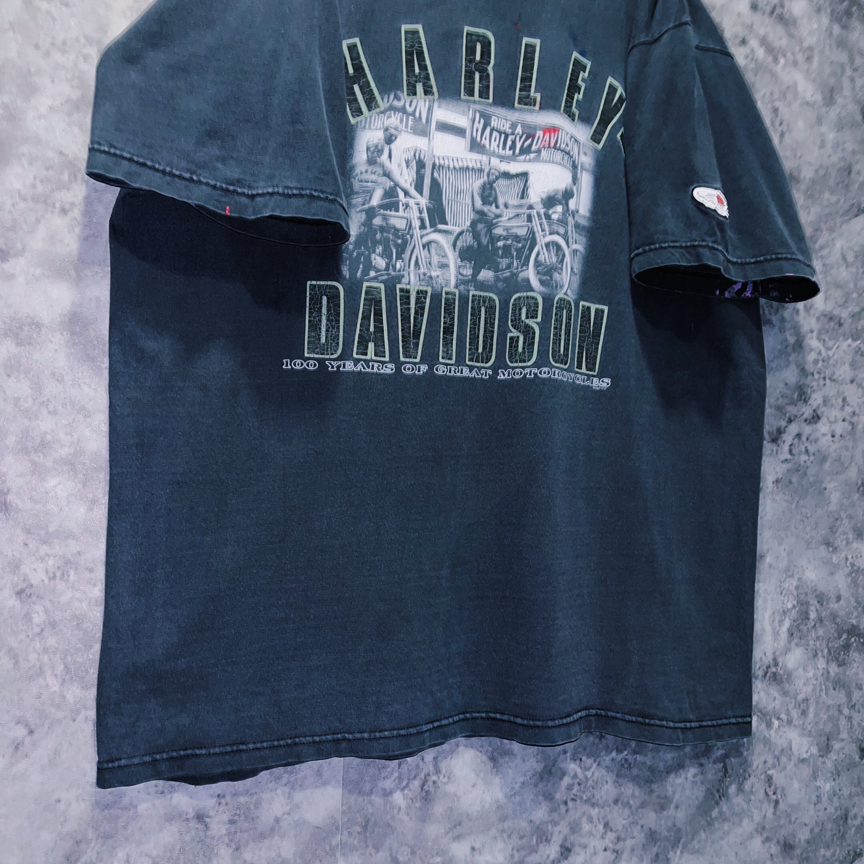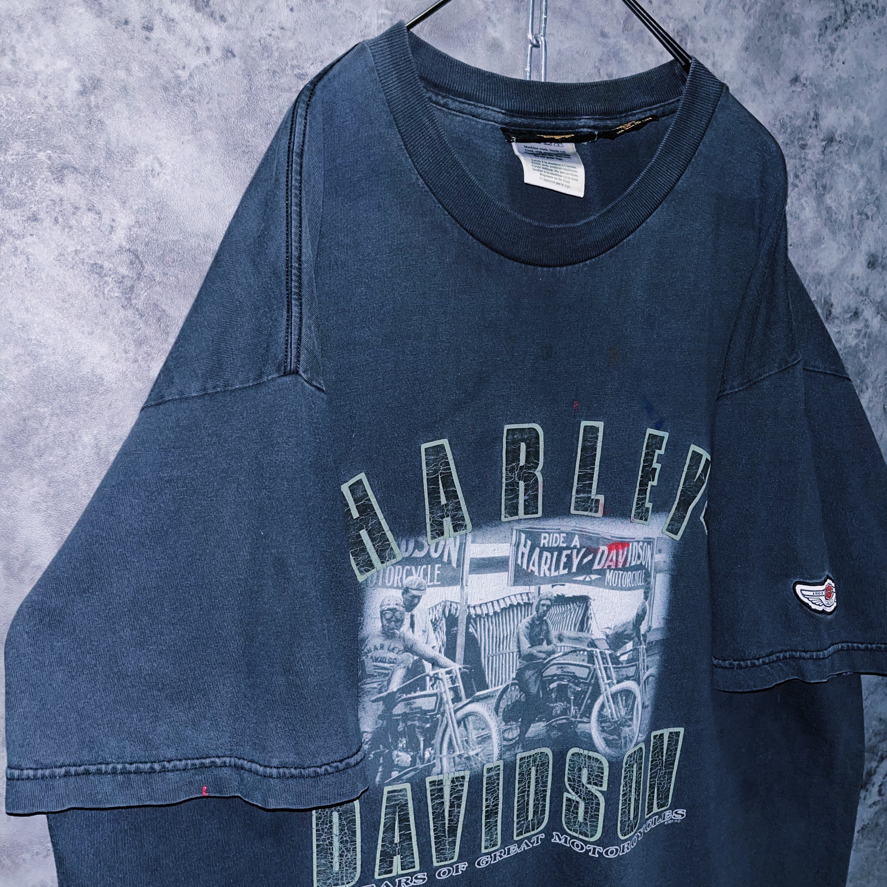 ヴィンテージ“Harley-Davidson”モトサイクルデザインプリントTシャツ