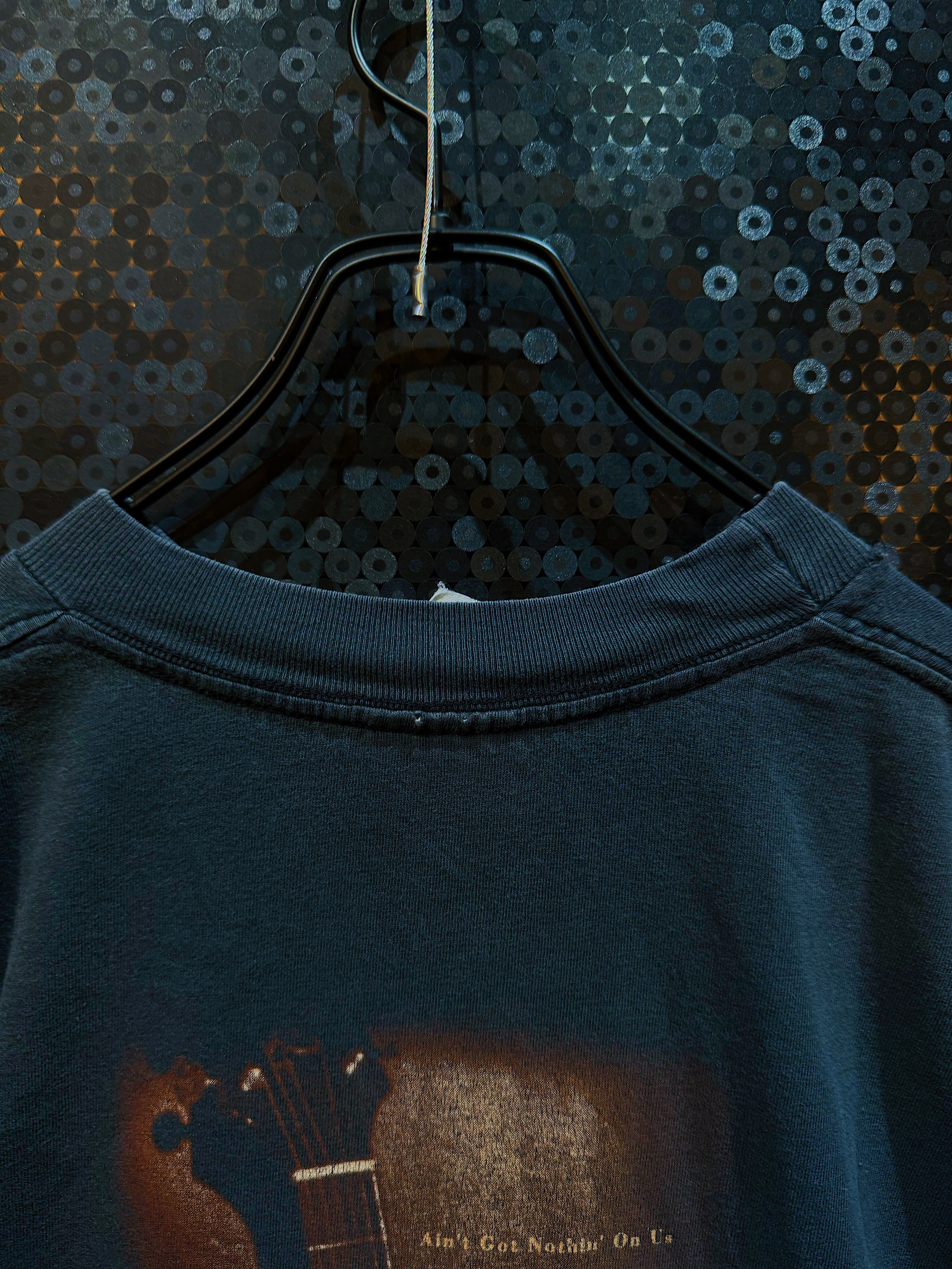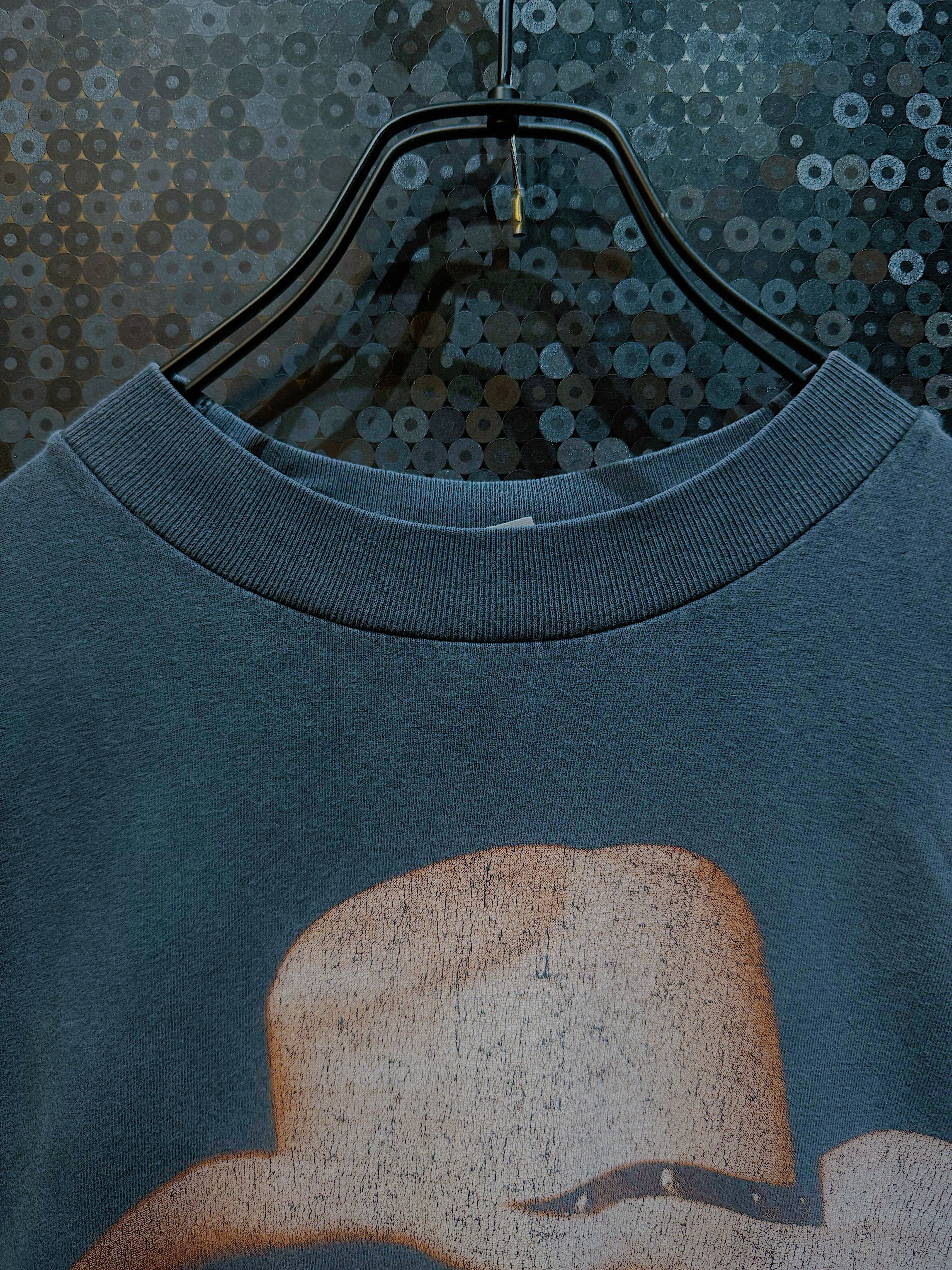 ボディは程よく色褪せたブラックで、コットン100%ならではの柔らかい風合いがヴィンテージの魅力をさらに引き立てています。音楽ファンはもちろん、グランジやウェスタンテイストをミックスしたコーディネートの主役にもなる一枚です。90年代カントリーの熱気が詰まった希少なツアーグッズ、ファン垂涎の逸品。