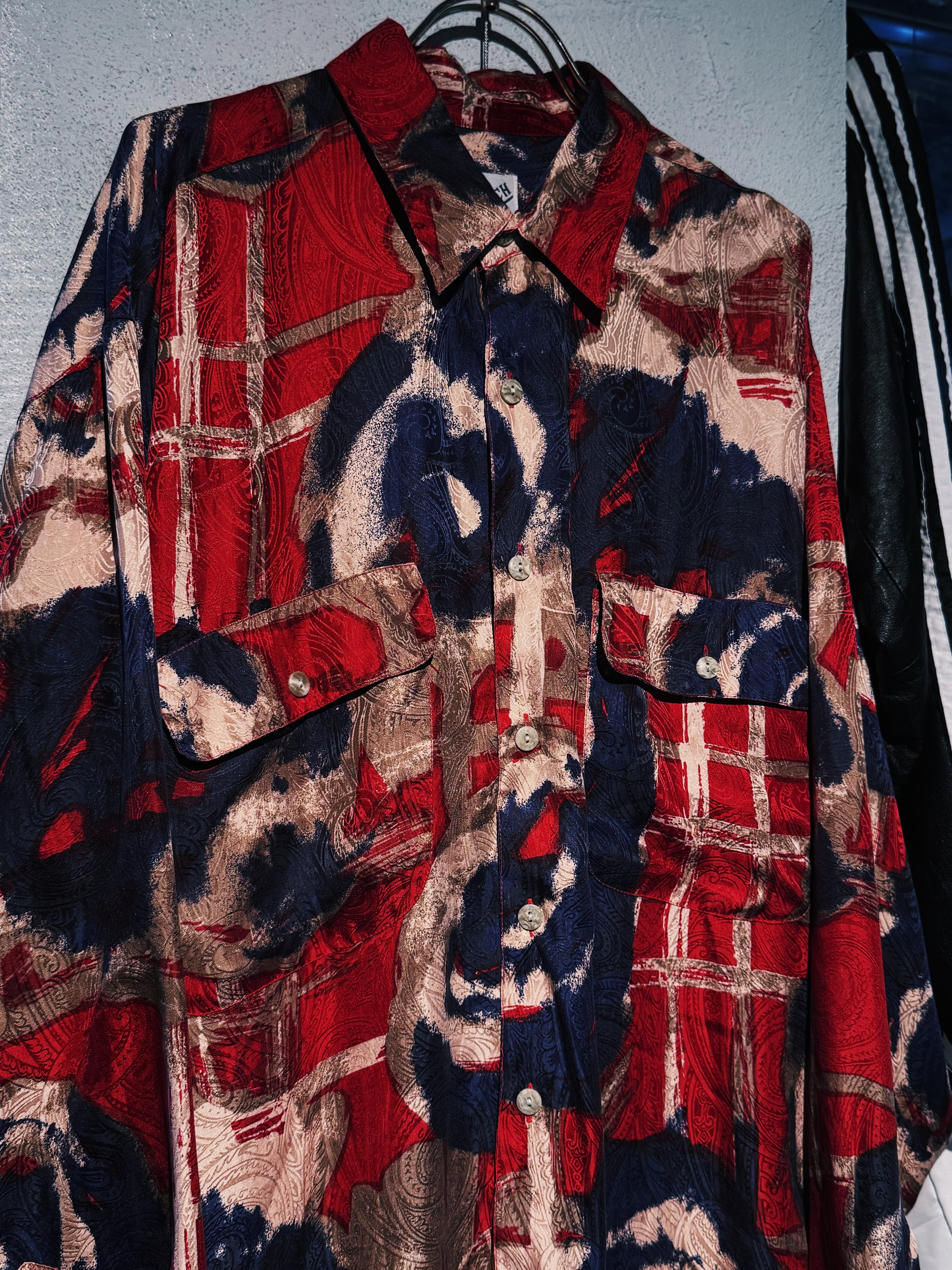 【D4C】"Dead stock"90's Art graphic pattern design silk shirt
