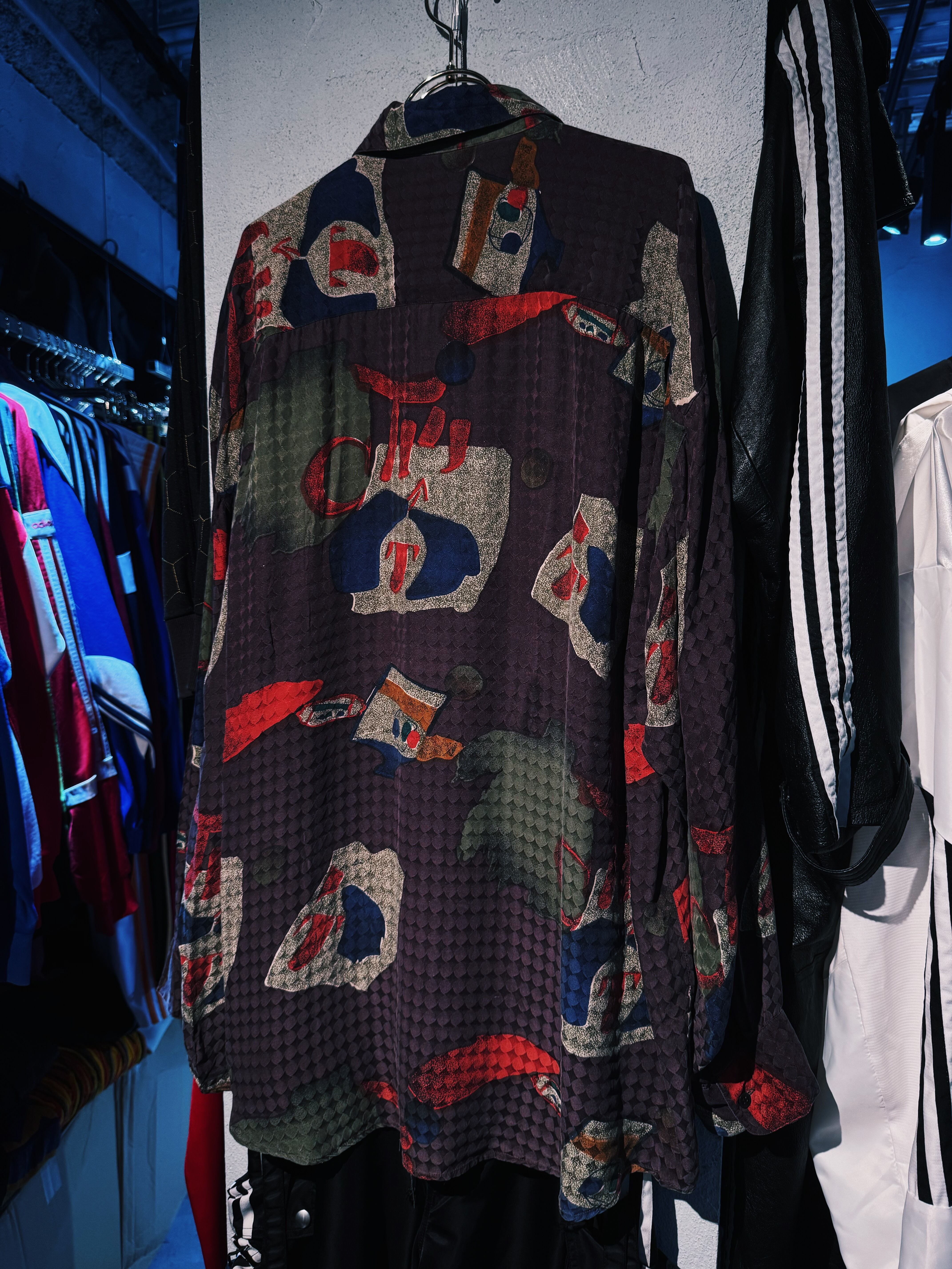 【D4C】"Dead stock"90's Art graphic pattern design silk shirt