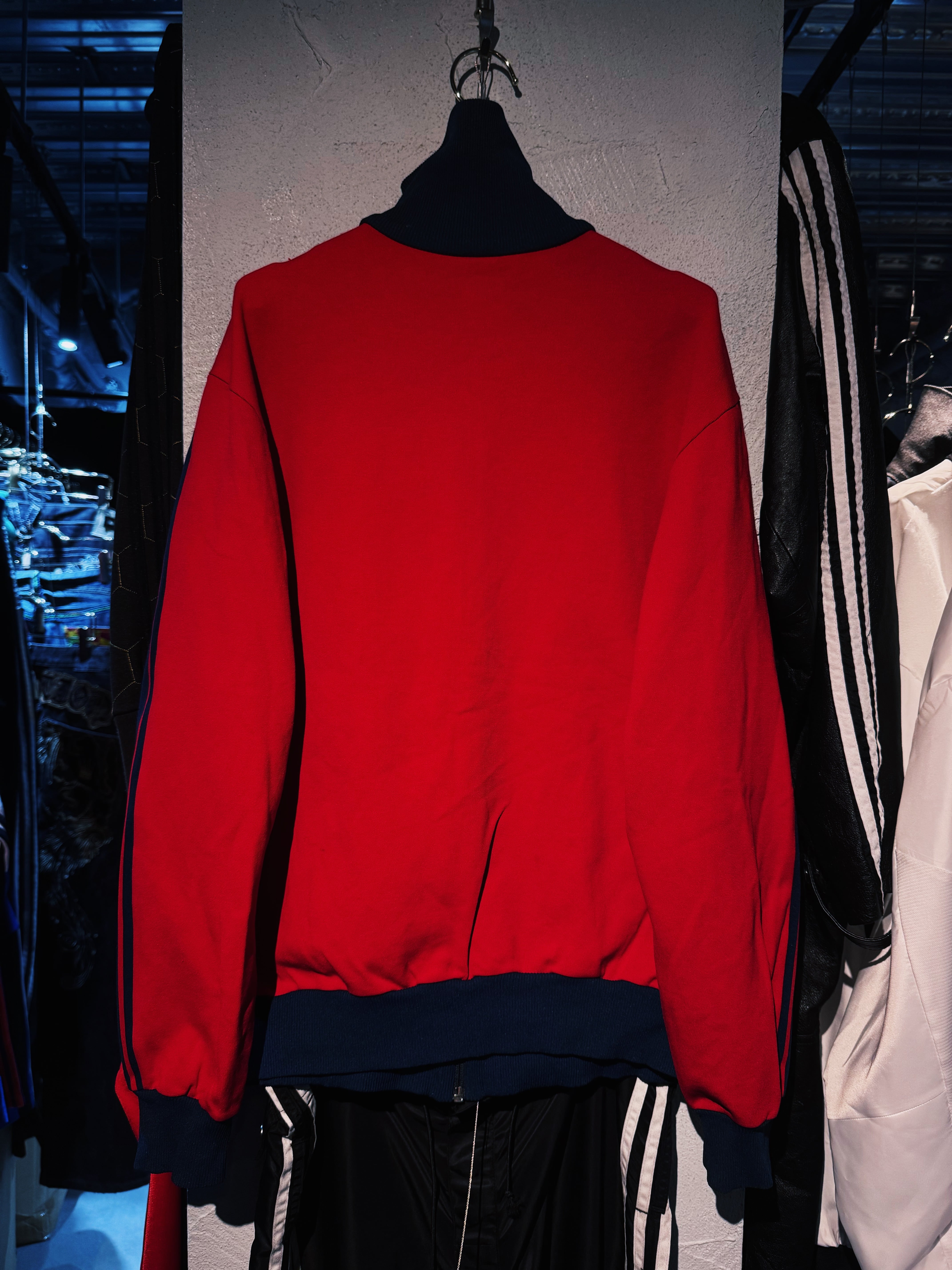 今回は力強いレッドとネイビーのスイッチングカラーでご用意。3本線に加え、かなり稀有なトレフォイルロゴを胸に搭載。更に左裾部分には昔ながらの秀逸なトレフォイルワッペン…デザインも西ドイツ製らしいディテールですね。