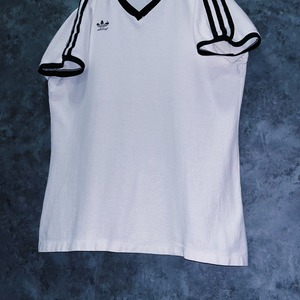 ヴィンテージ“adidas”トレフォイルロゴデザインVネックTシャツ