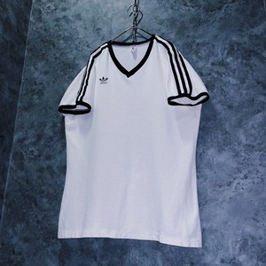 【doppio】vintage “adidas” trefoil logo design V-neck T-shirt