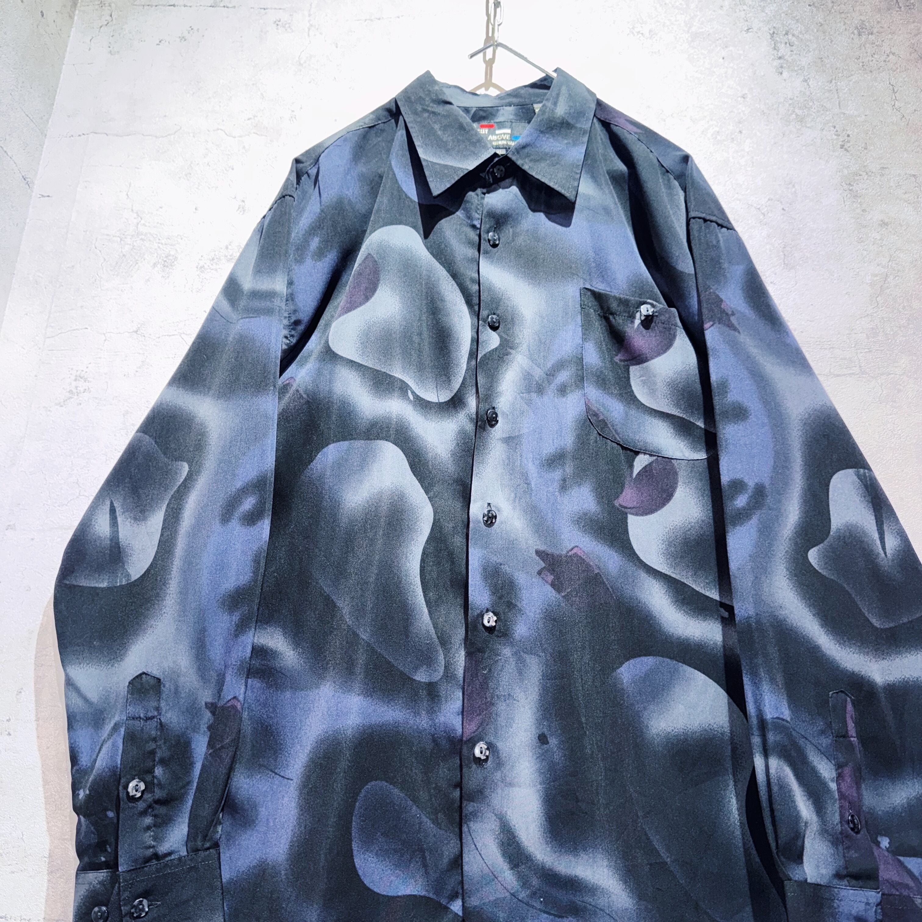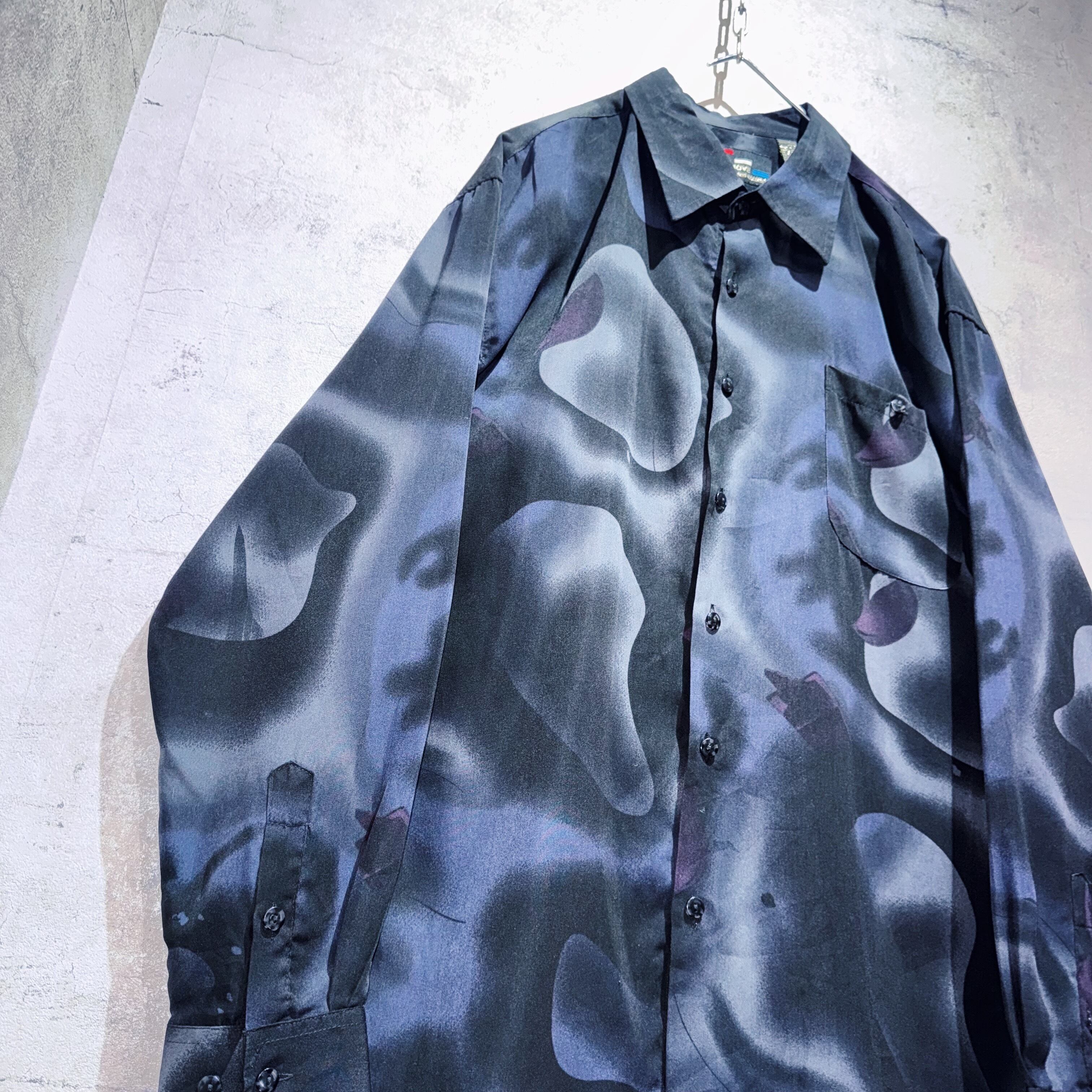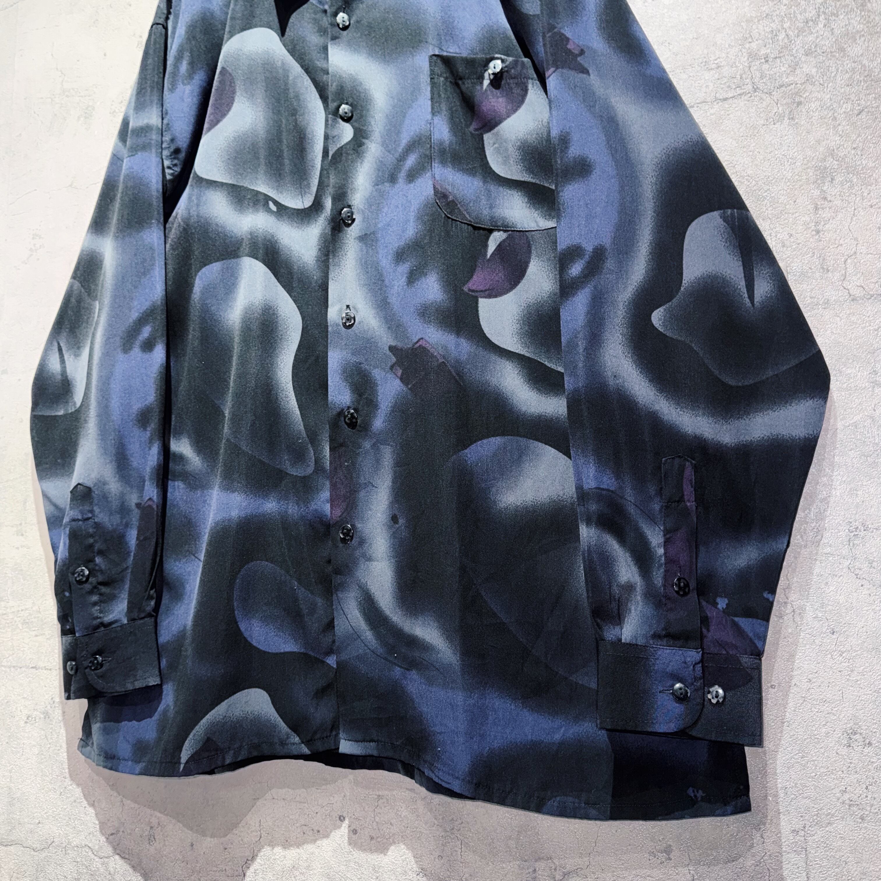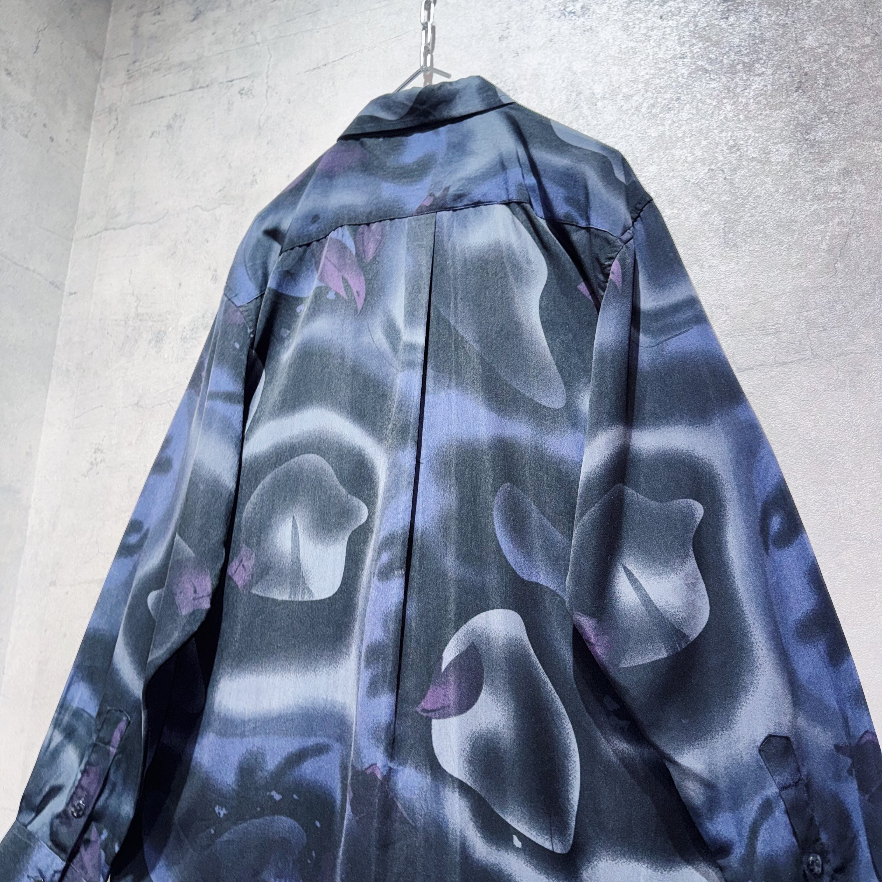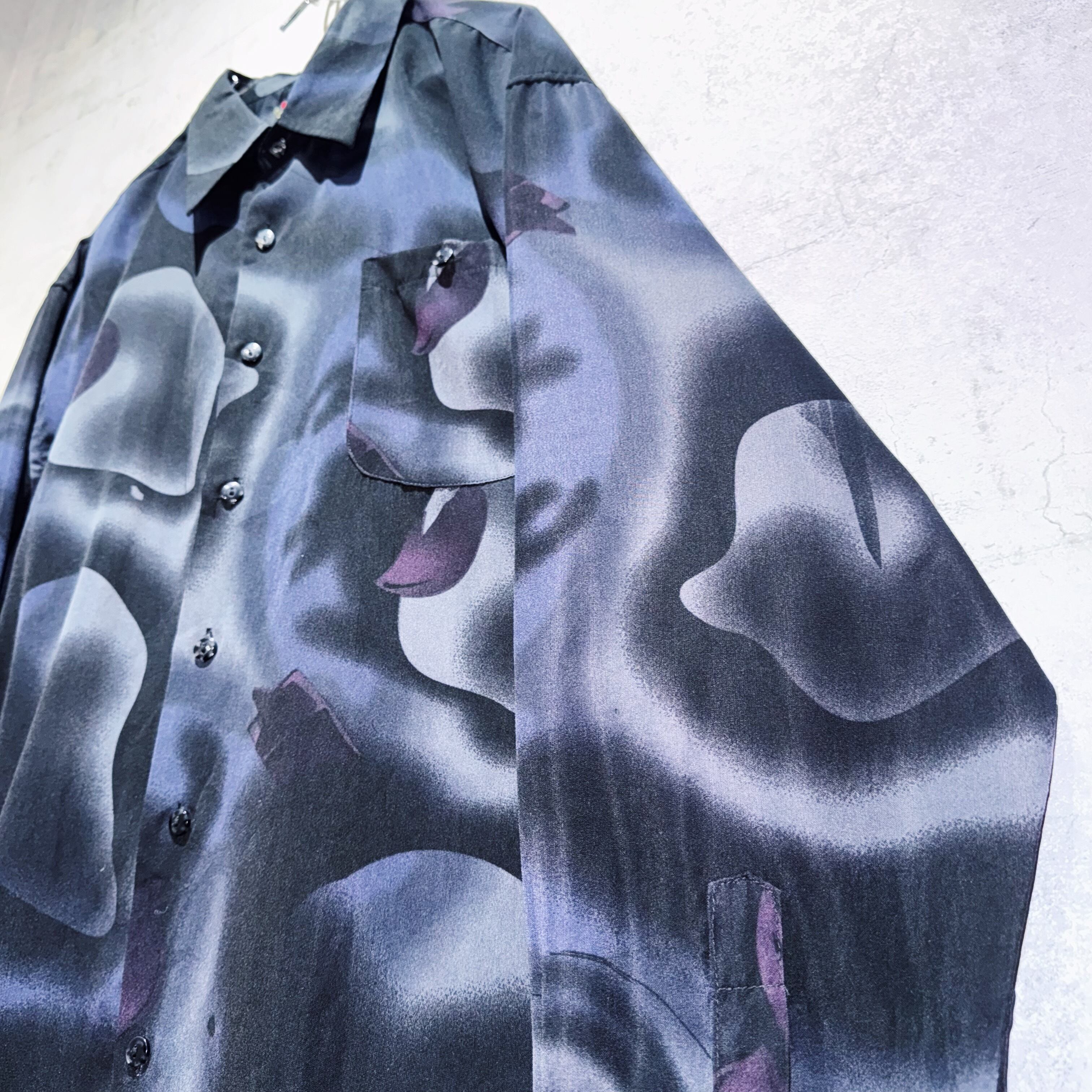 全身にダークなアートグラフィックを纏った、妖艶かつ威厳ある佇まいのデザインシャツ。