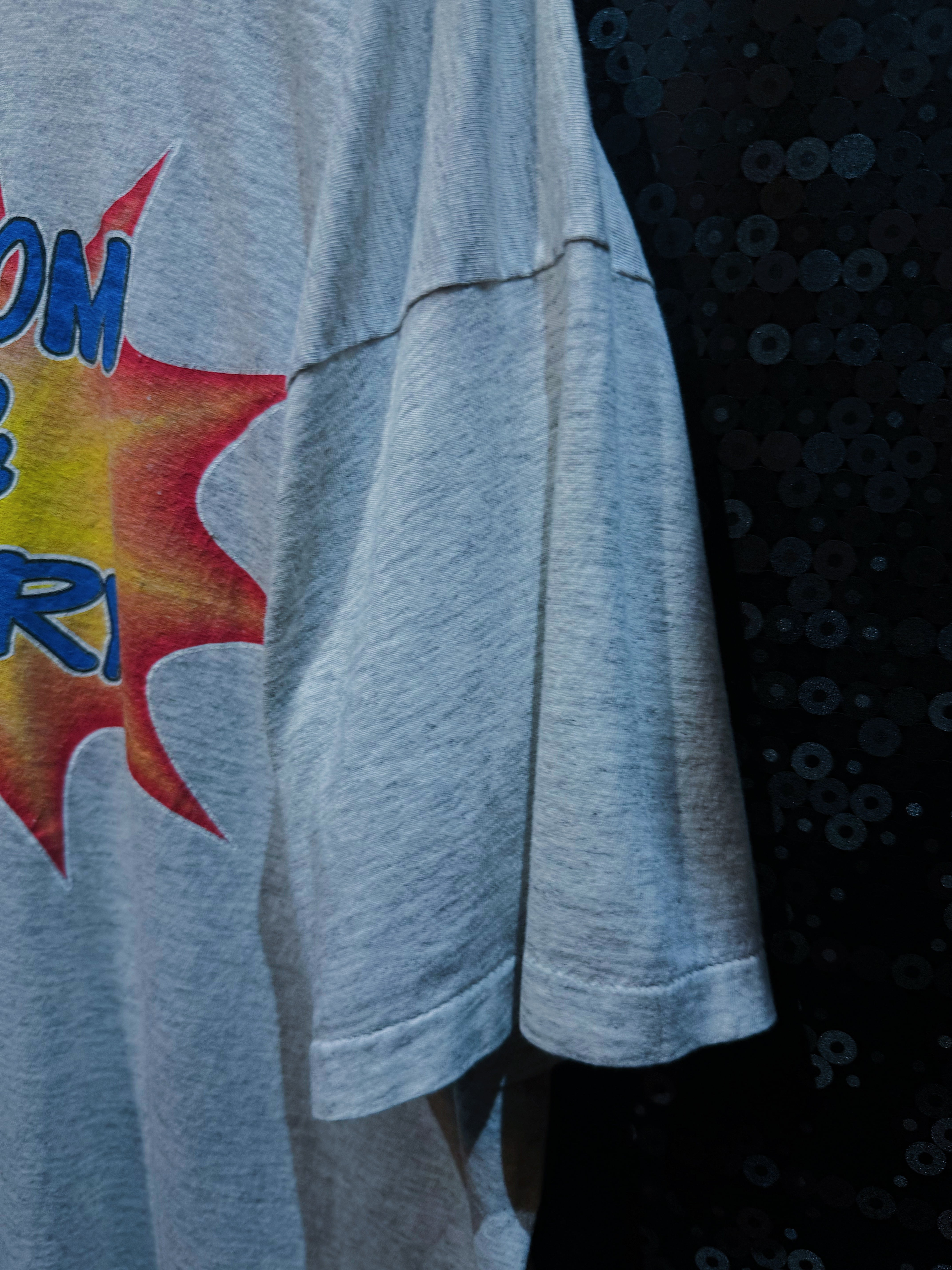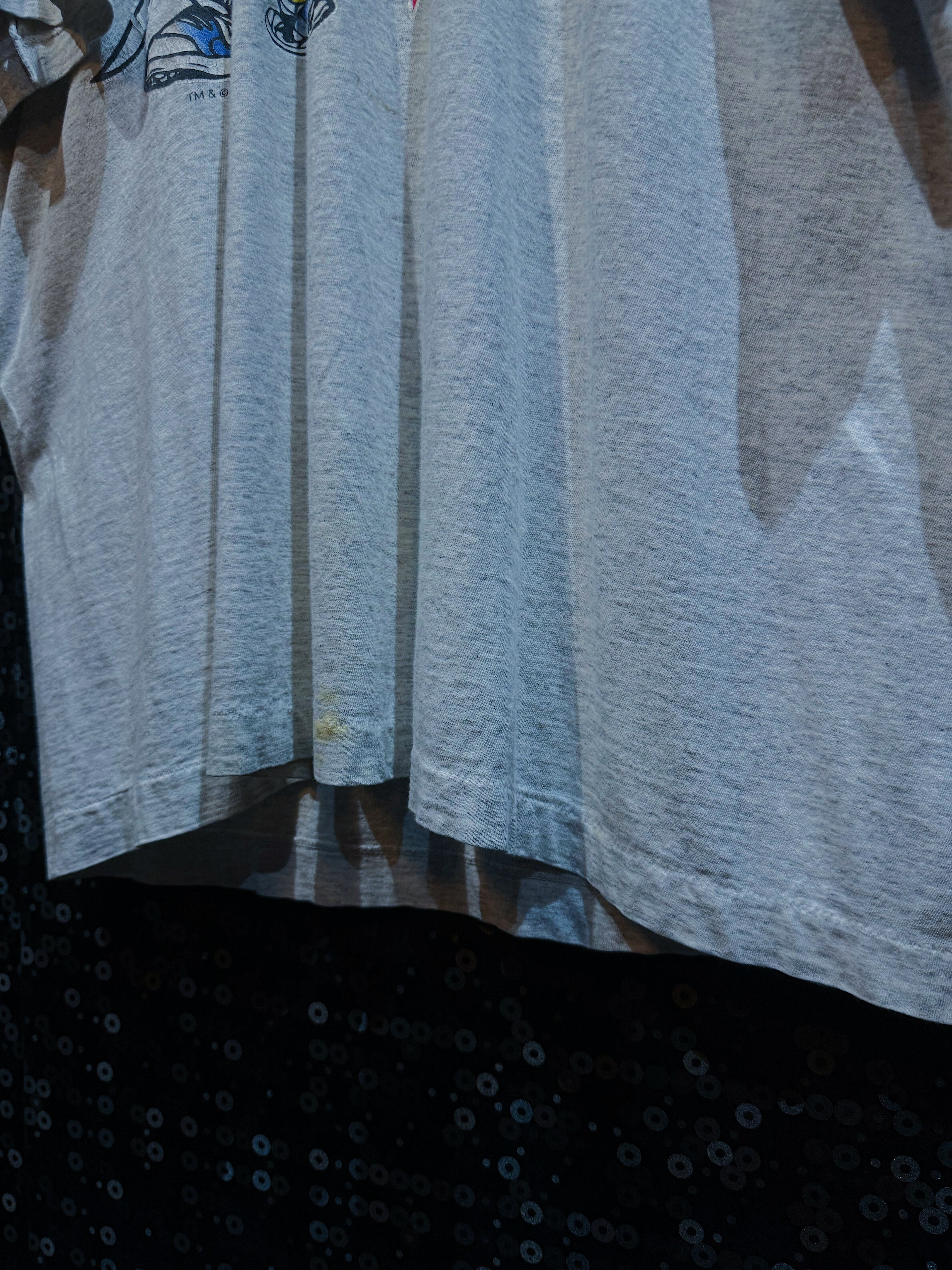 タグは「FRUIT OF THE LOOM(フルーツオブザルーム)」のブルータグ仕様で、90年代頃のアメリカ製Tシャツによく見られるタイプ。ボディの杢グレーもプリントのヴィンテージ感を引き立てており、単なるキャラTを超えたコレクタブルな1枚となっています。