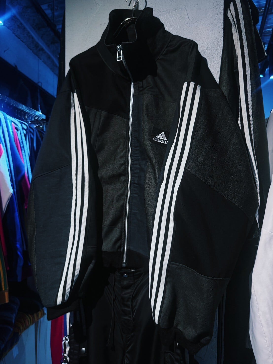 スラックスはもちろん、デニムやカーゴ、リメイクパンツなど合わせるアイテムで様々な表情を見せてくれる当店のトラックジャケットの中でも一際存在感のある逸品。