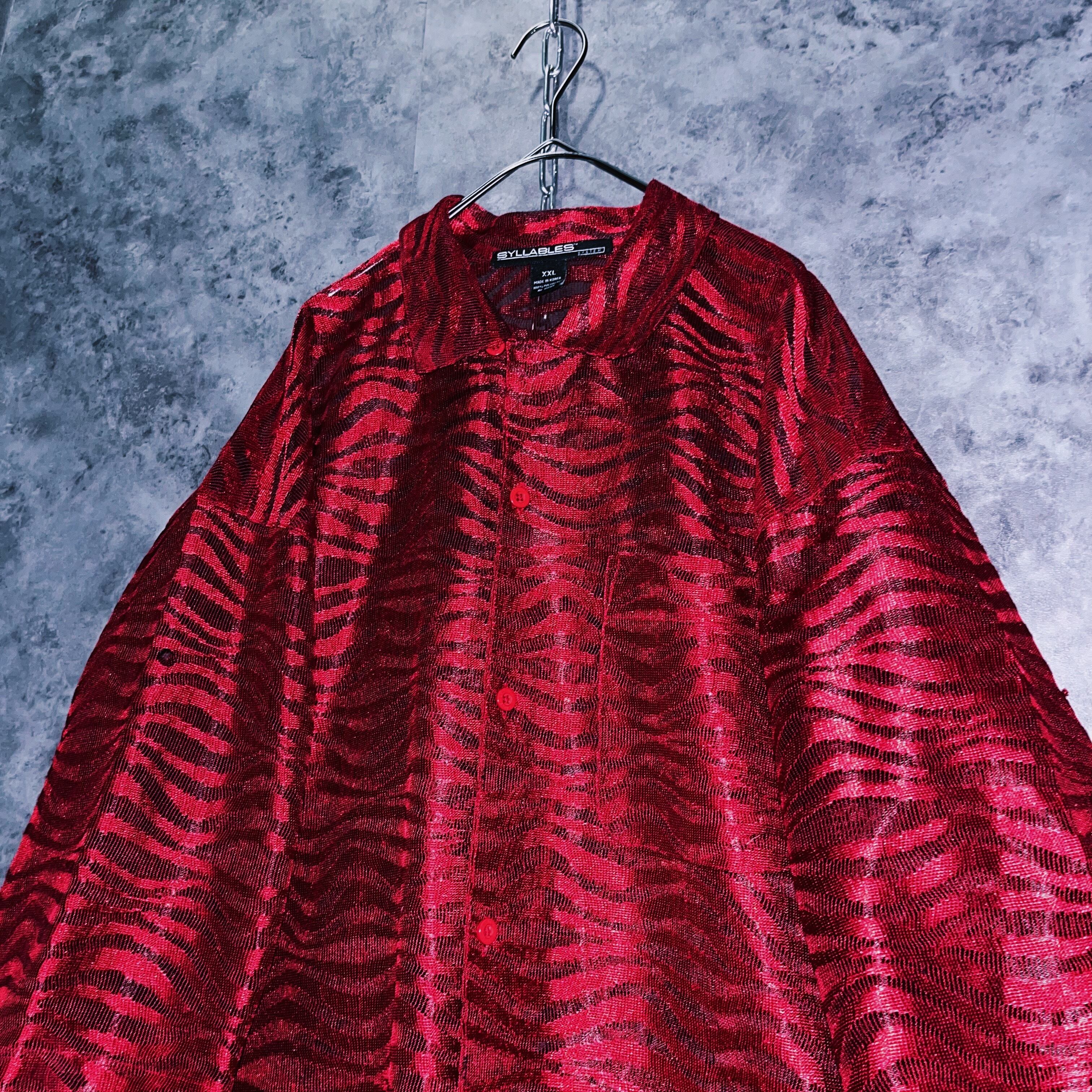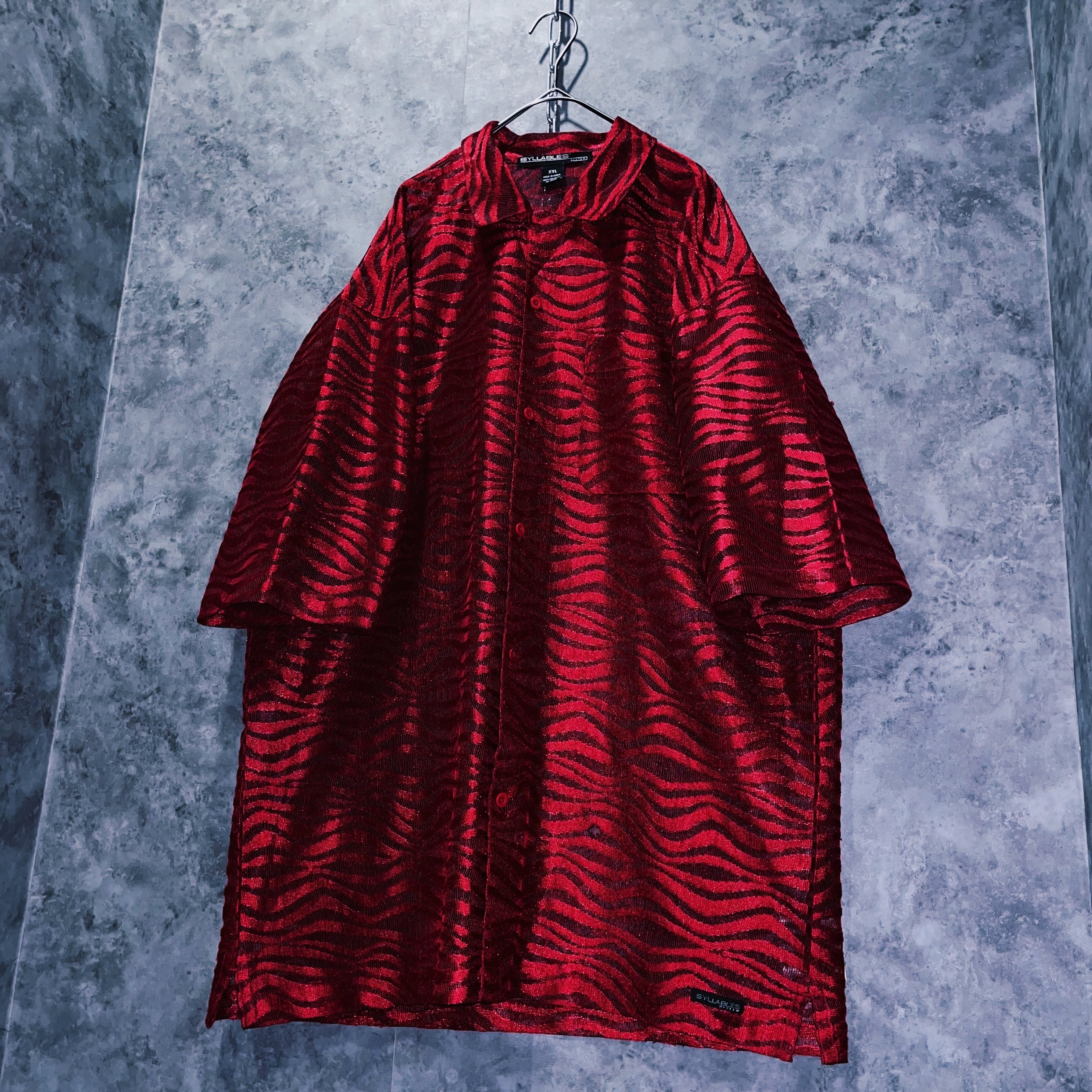 ヴィンテージアートグラフィックパターンショートスリーブシアーシャツ