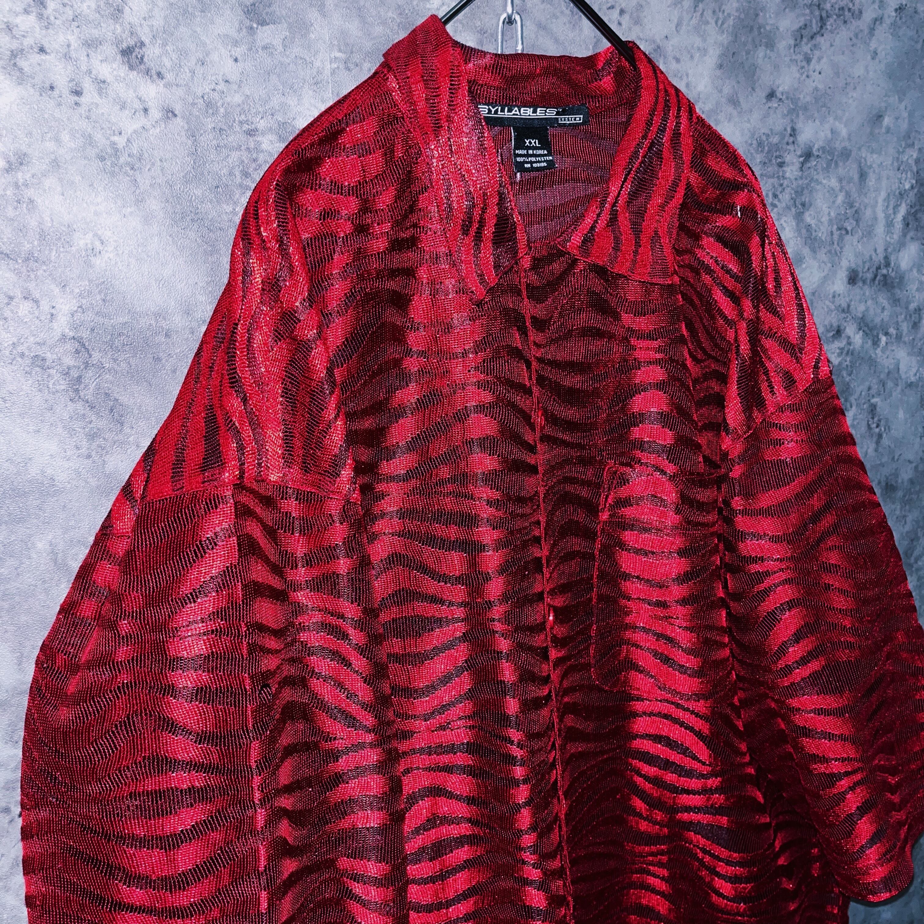 虎柄のようなアート柄をプリントではなく、織りなすことで立体感を生み出したショートスリーブのシアーシャツ。単調になりがちな夏コーデにインパクトを与えてくれる色味も魅力的。