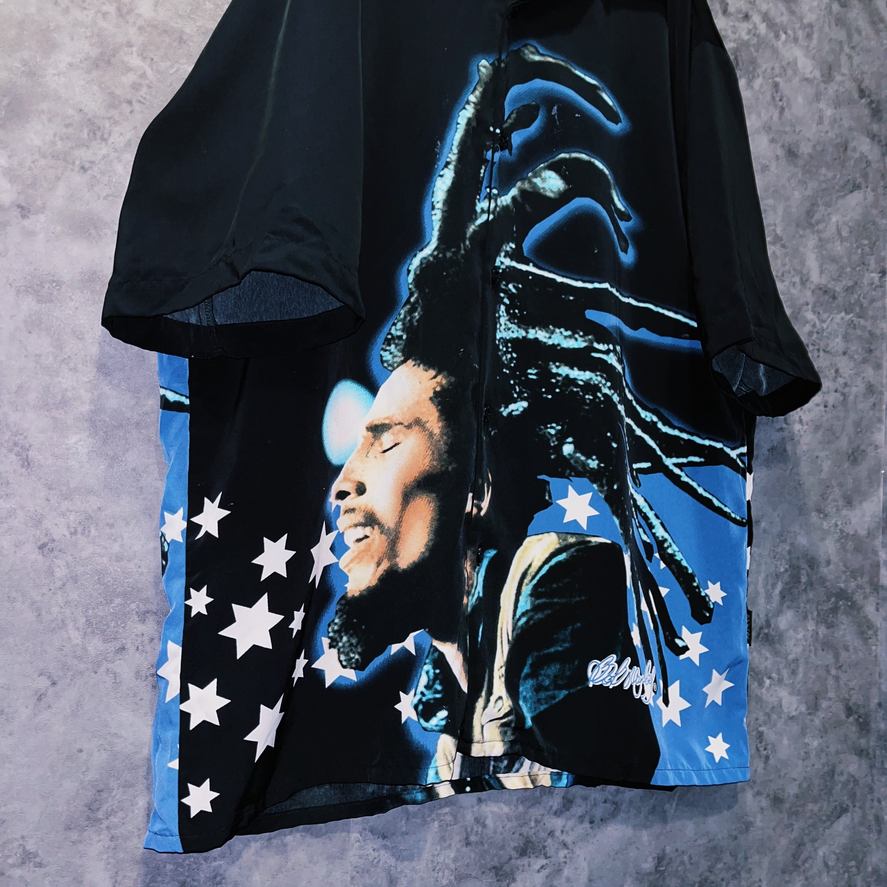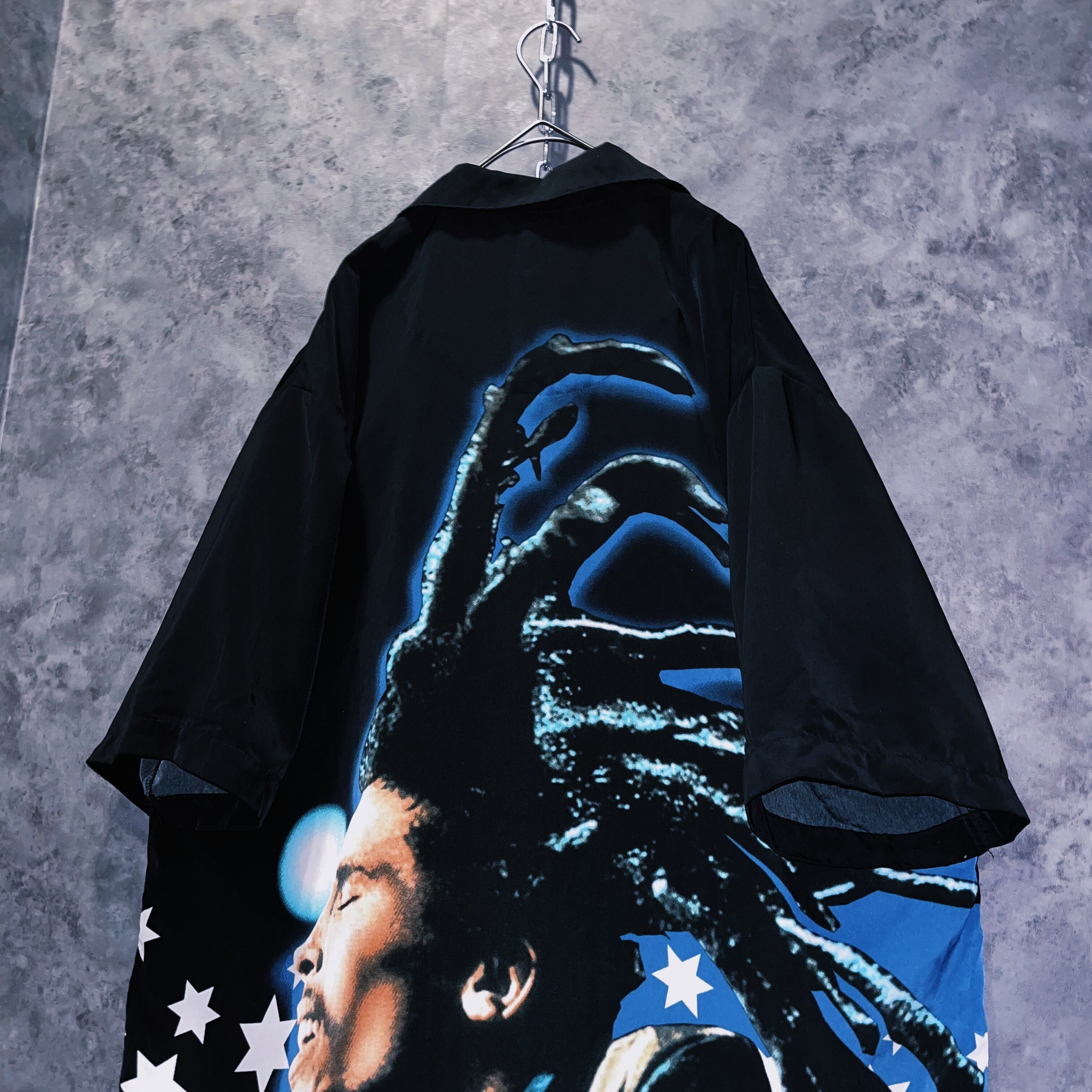 ヴィンテージ“ボブマーリー”フェイスプリントデザインオープンカラーシャツ