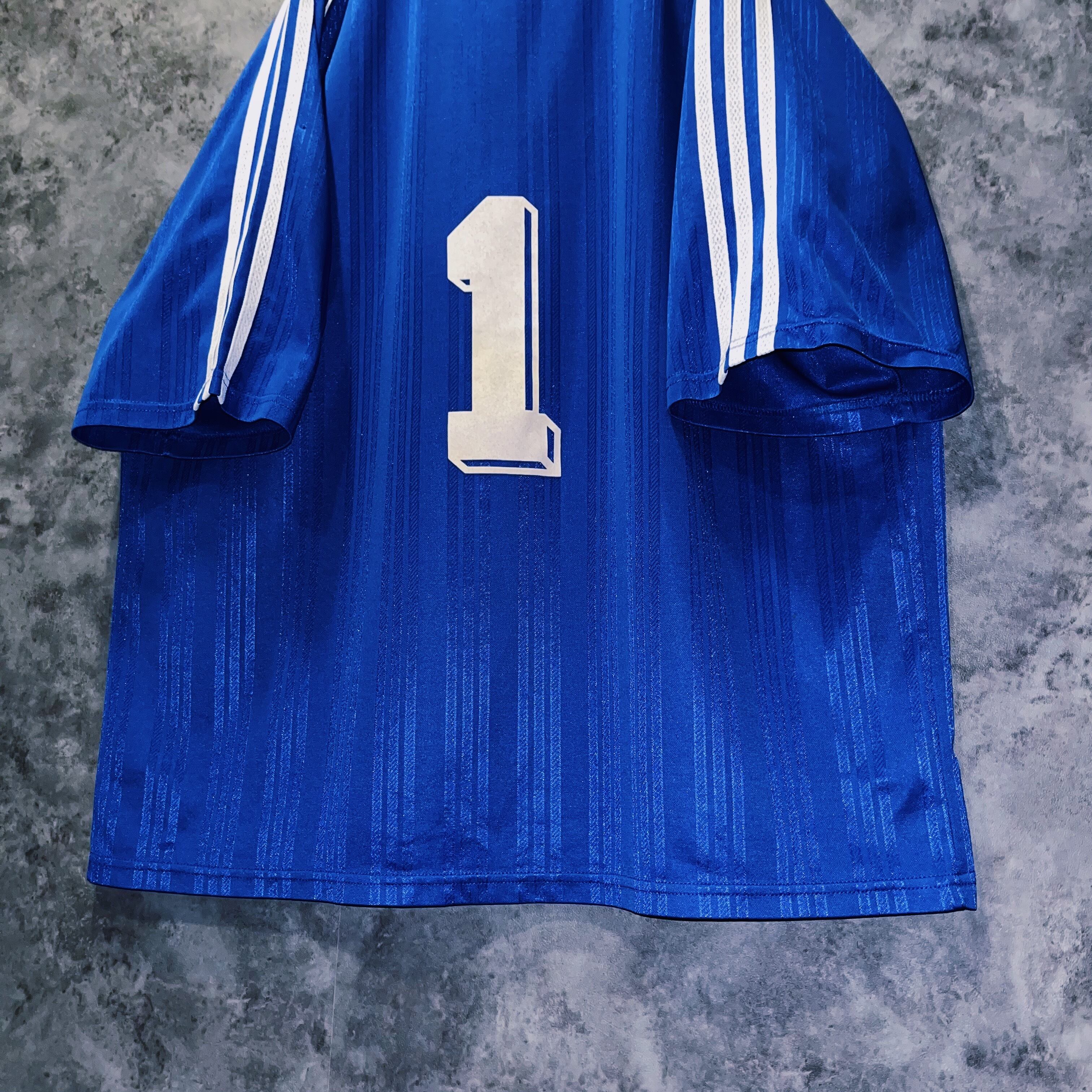ヴィンテージ“adidas”スリーストライプデザインスポーツゲームTシャツ
