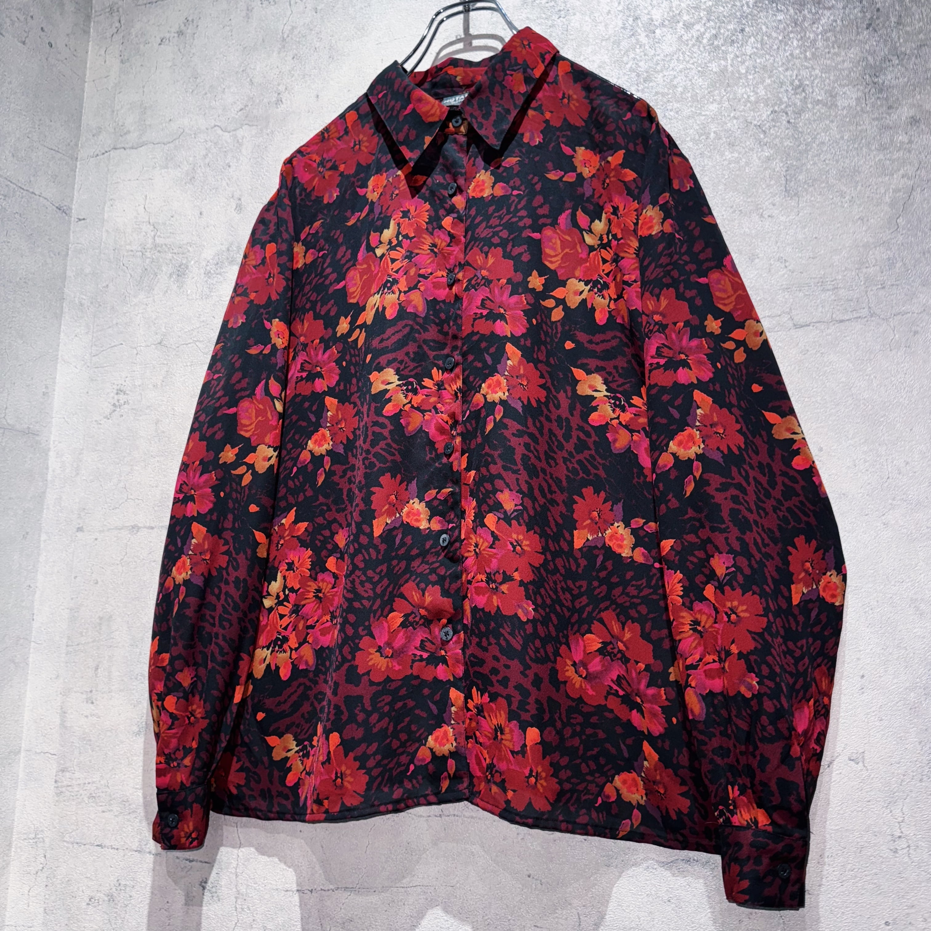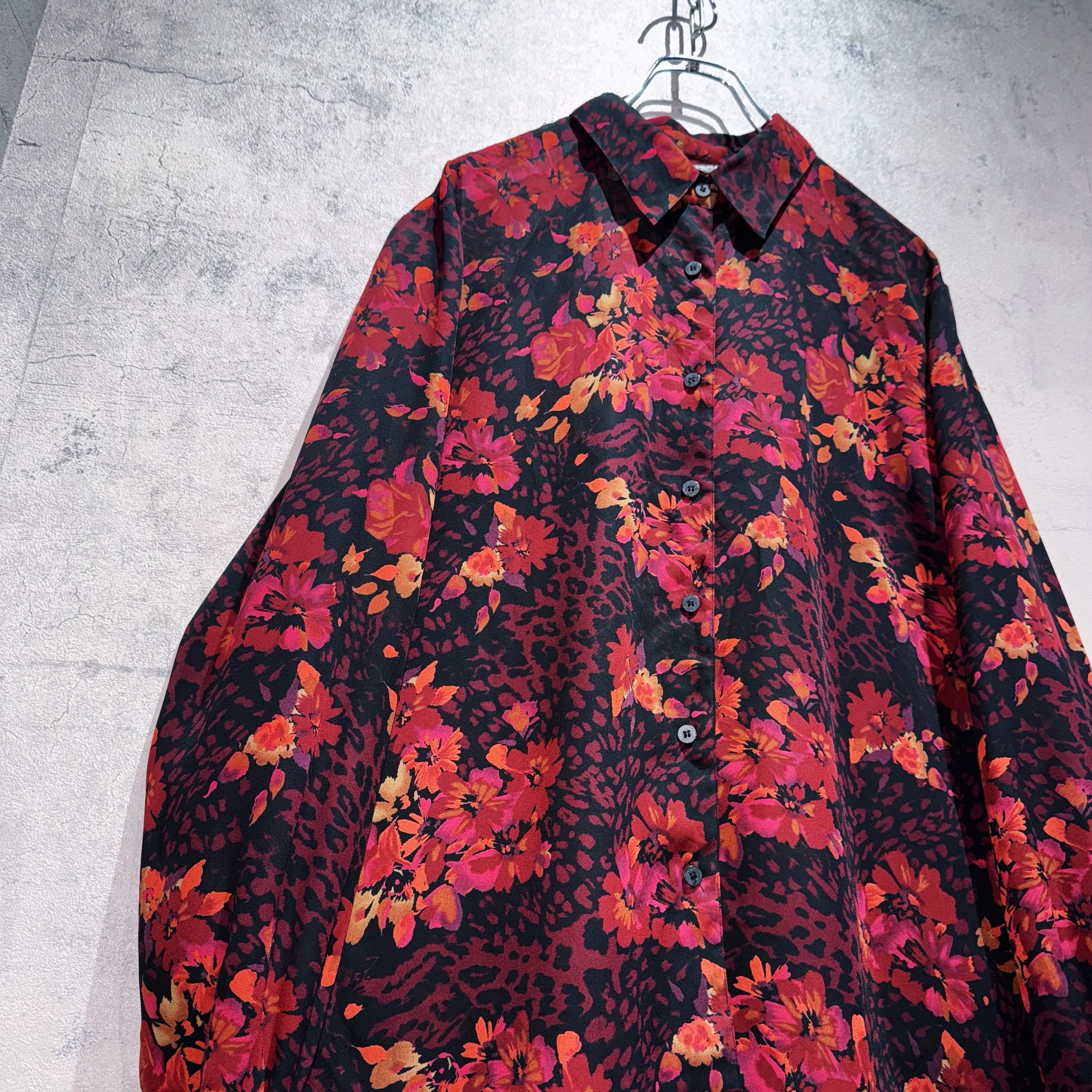 ヴィンテージビューティフルフラワー×レオパードパターンデザインシャツ