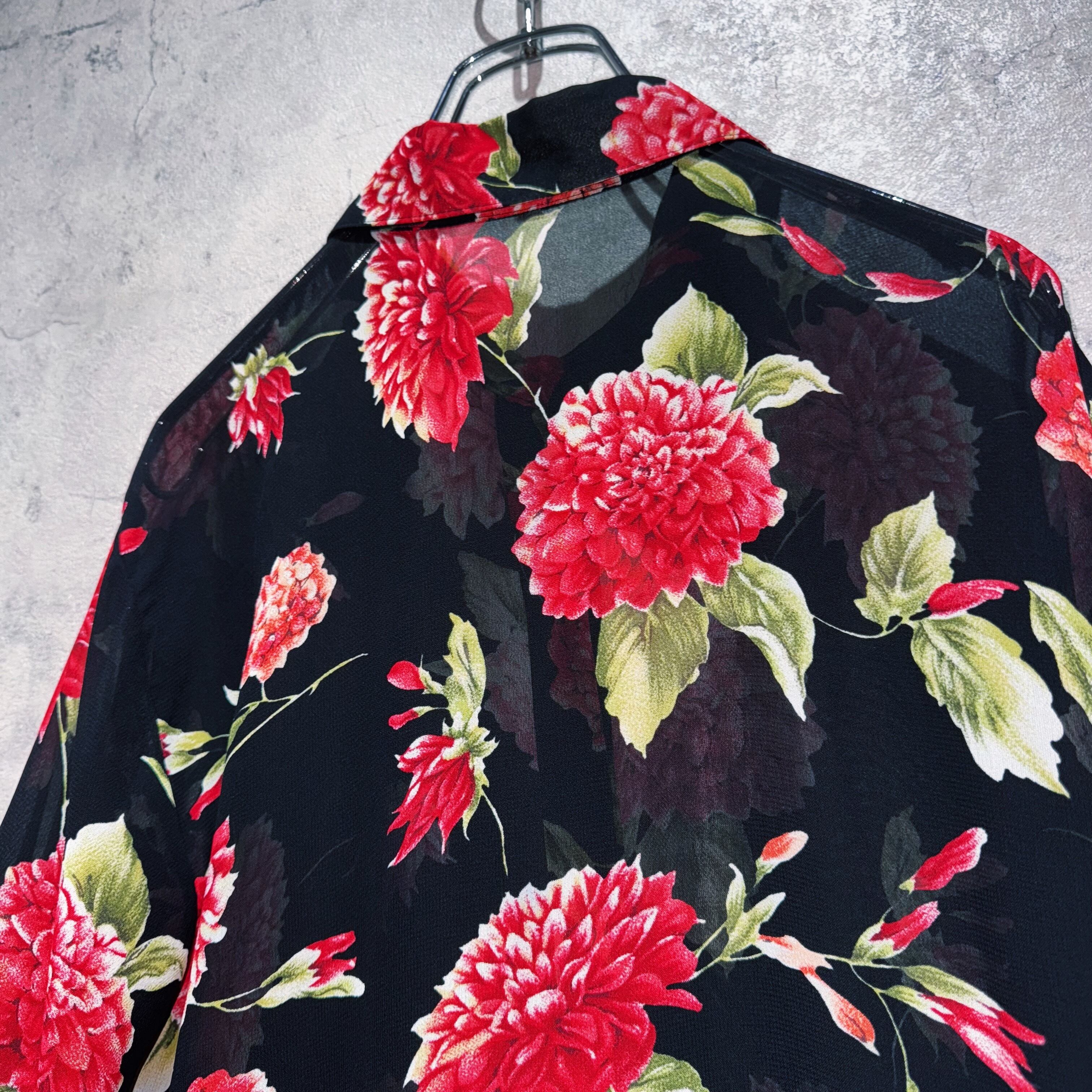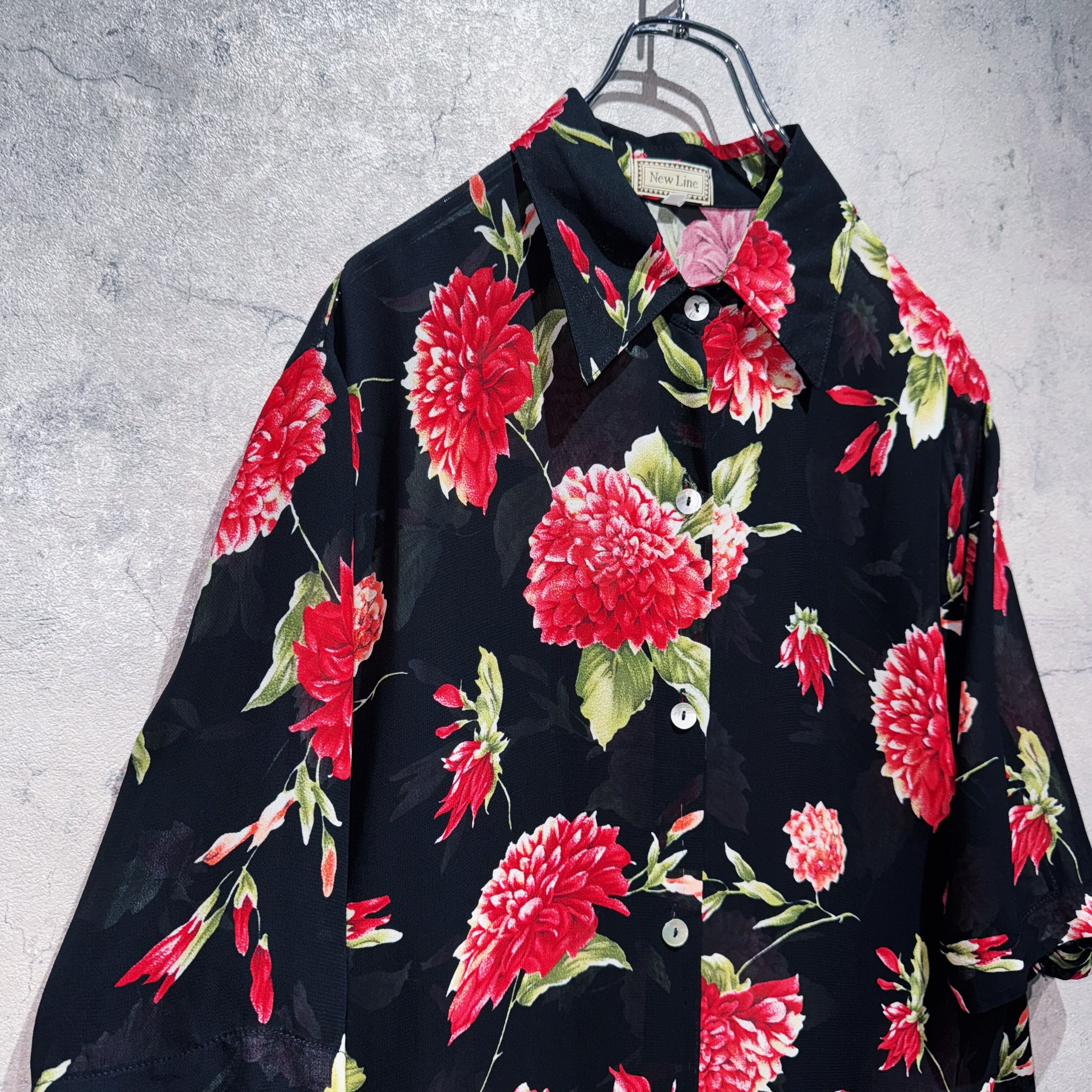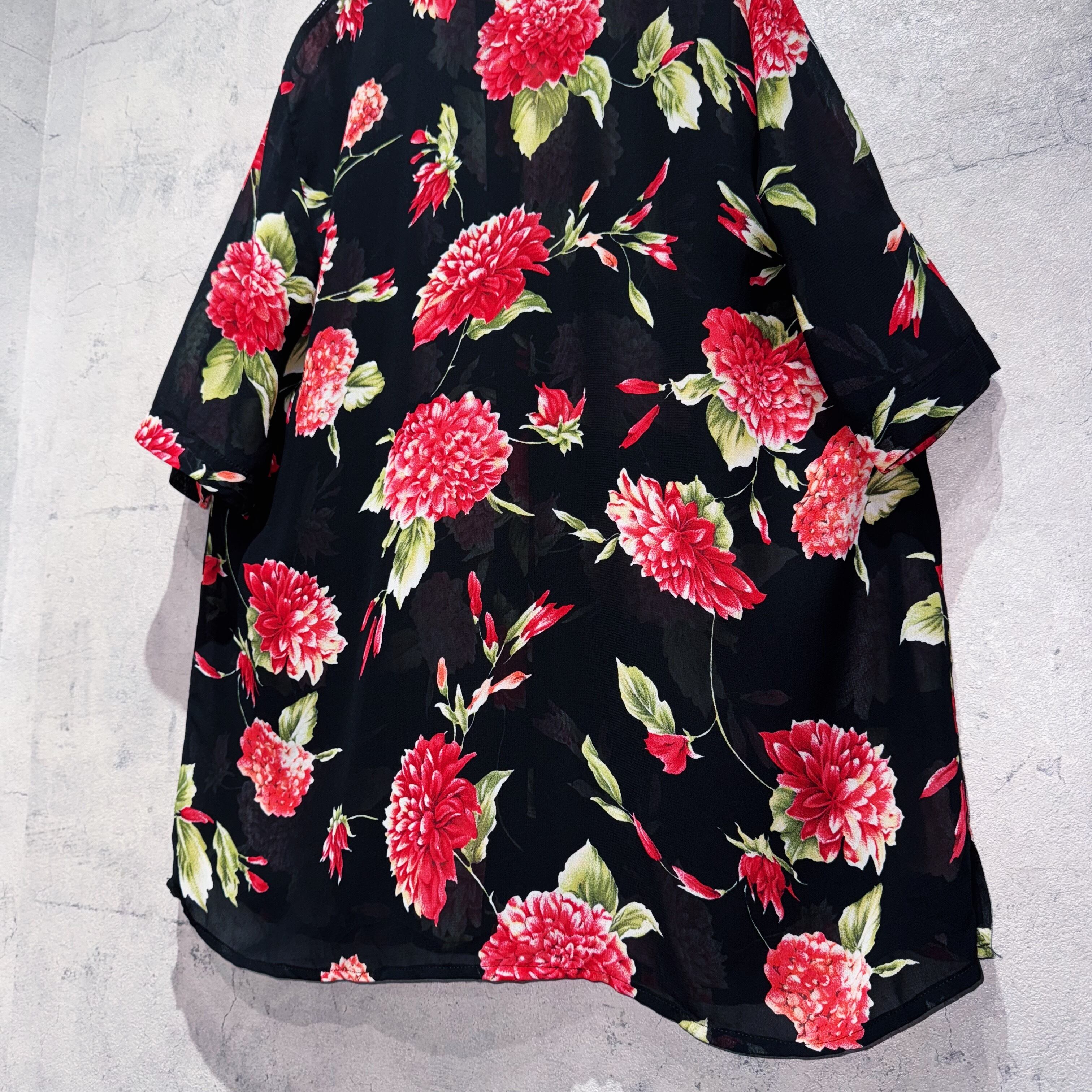 "Dead stock"beautiful flower pattern design short sleeve sheer shirt