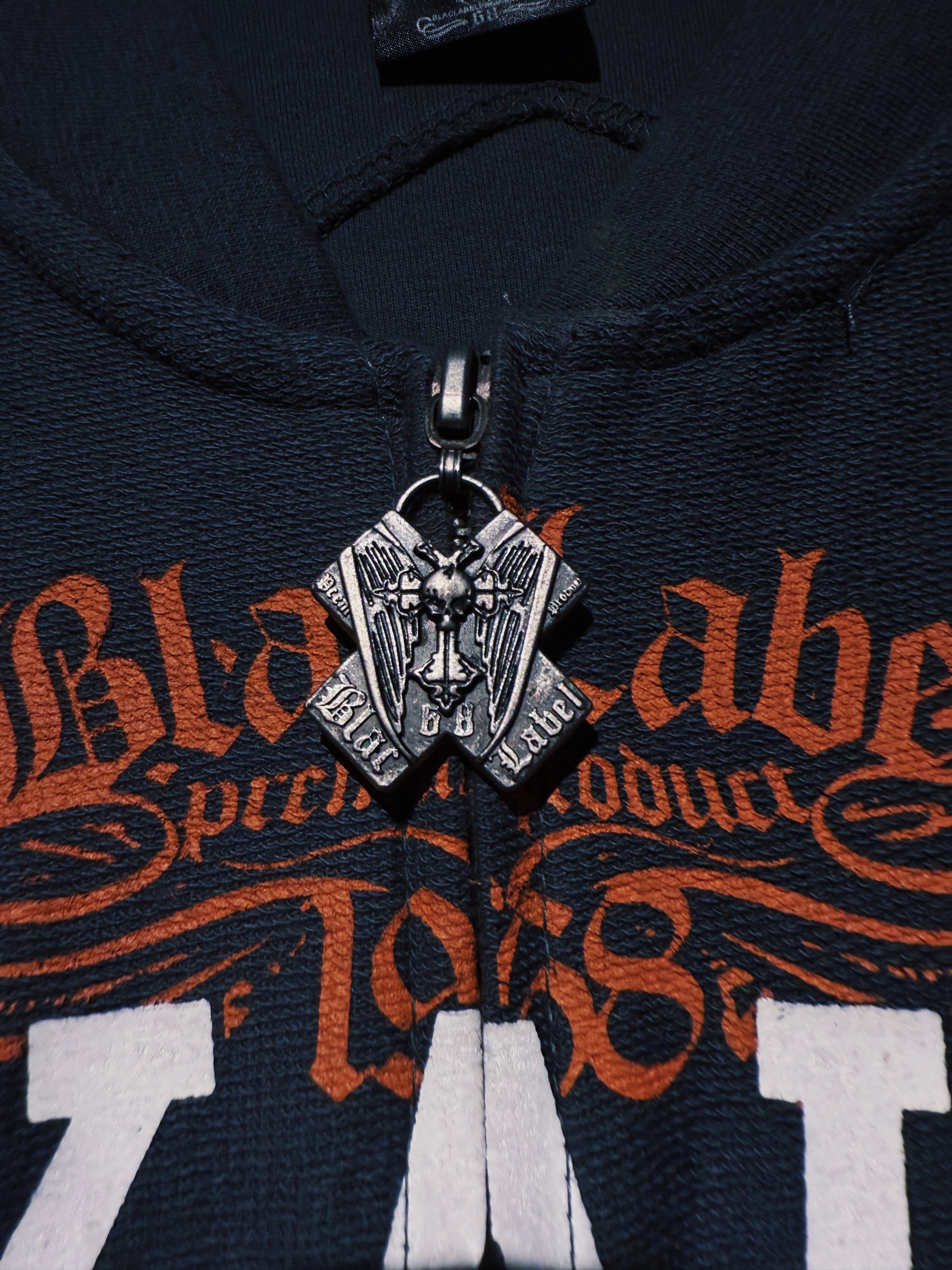 ヴィンテージ “ブラックレーベル” ロイヤリティ トライバルゴシック ジップアップパーカー