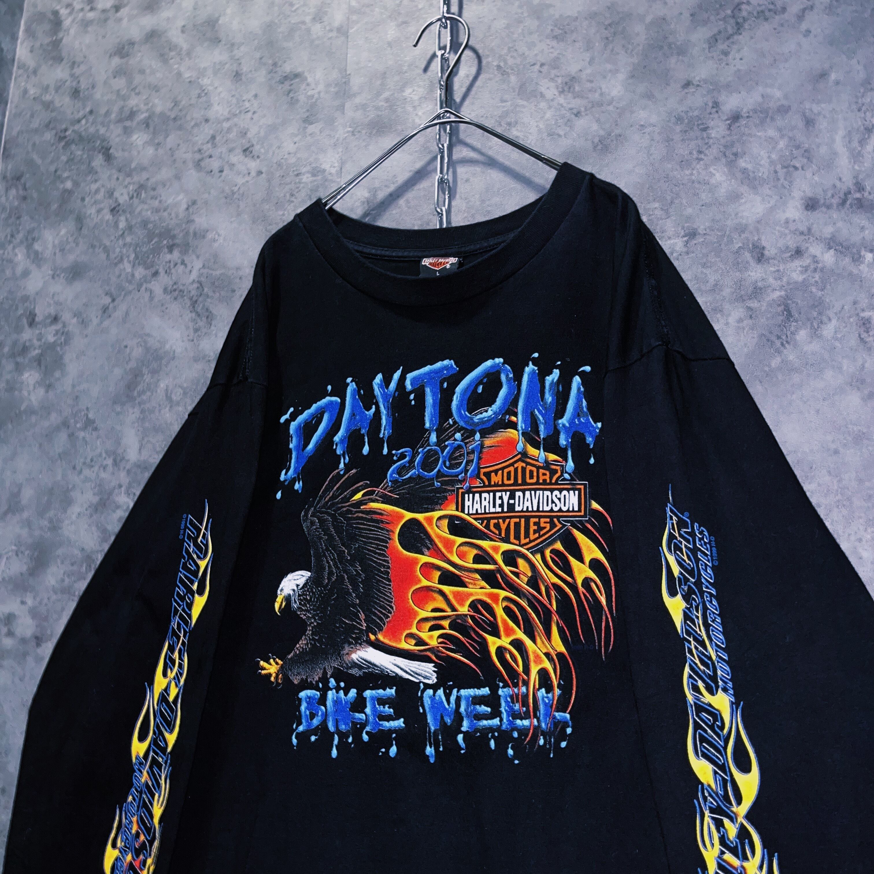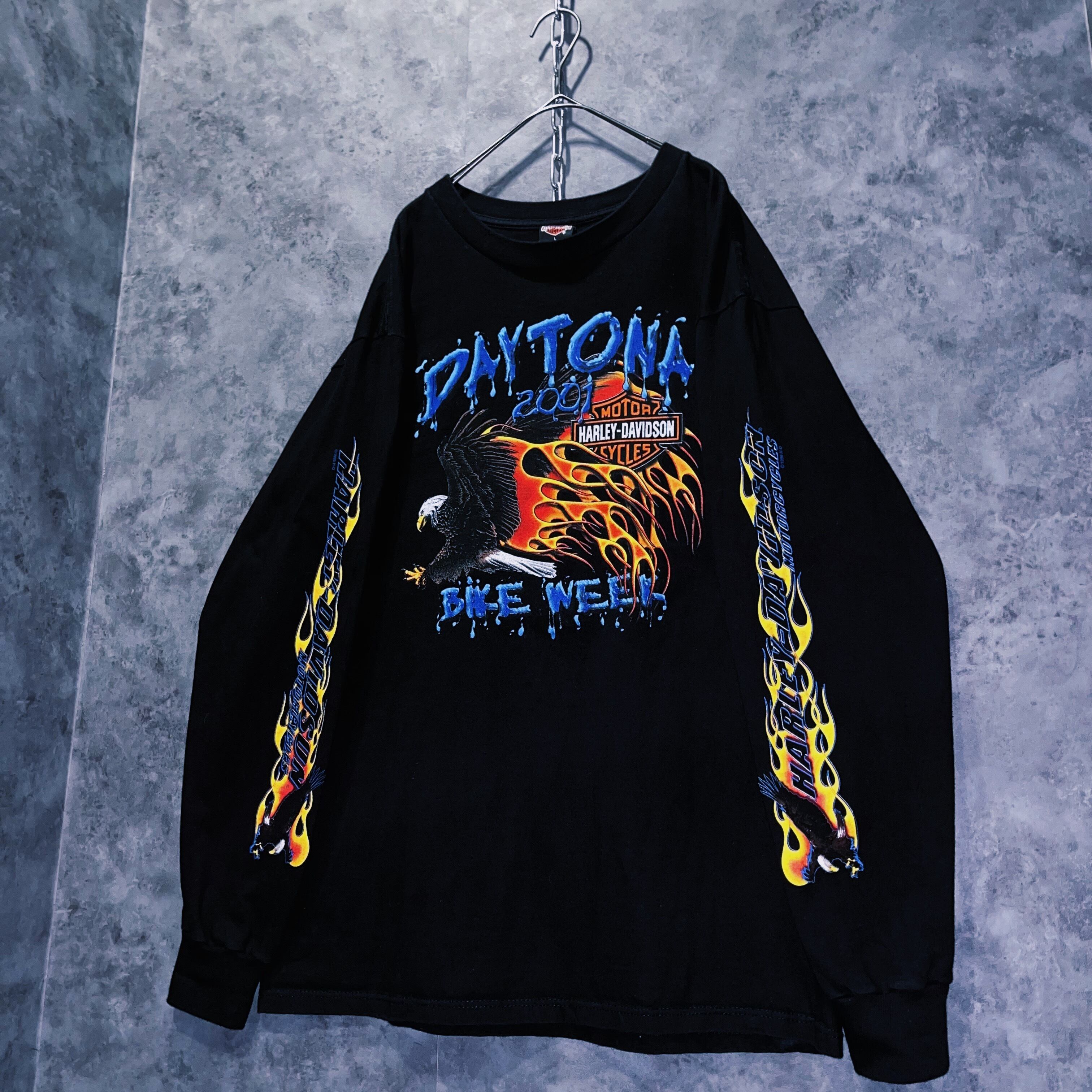 ヴィンテージ“Harley-Davidson”フレイムイーグルデザインロングスリーブTシャツ