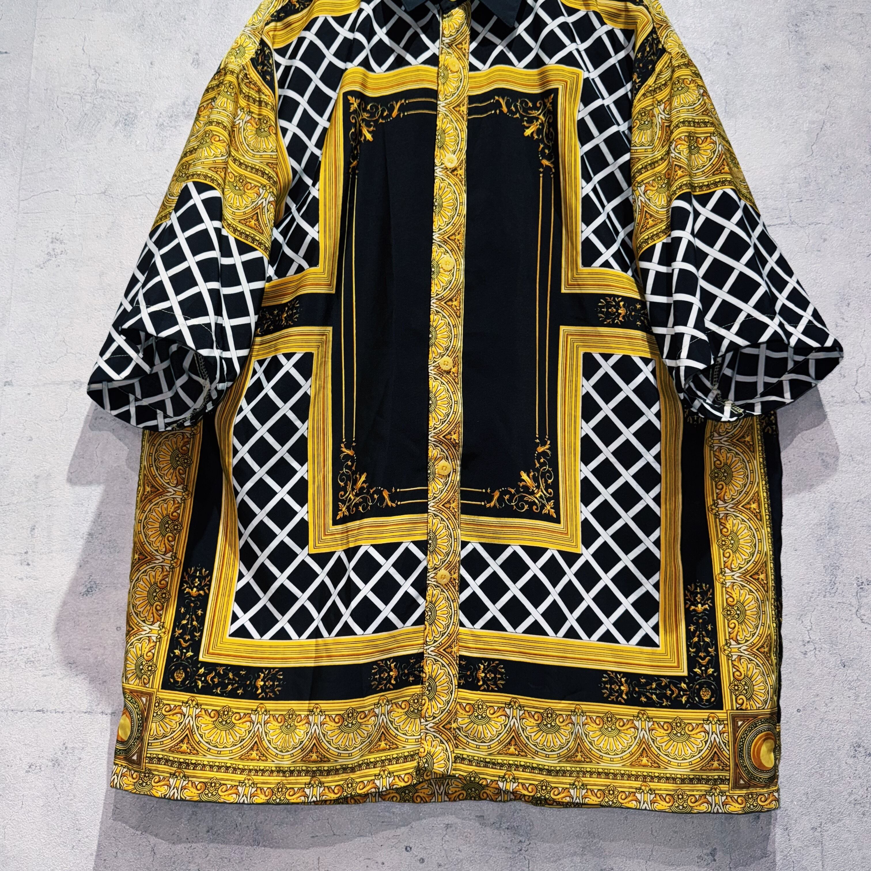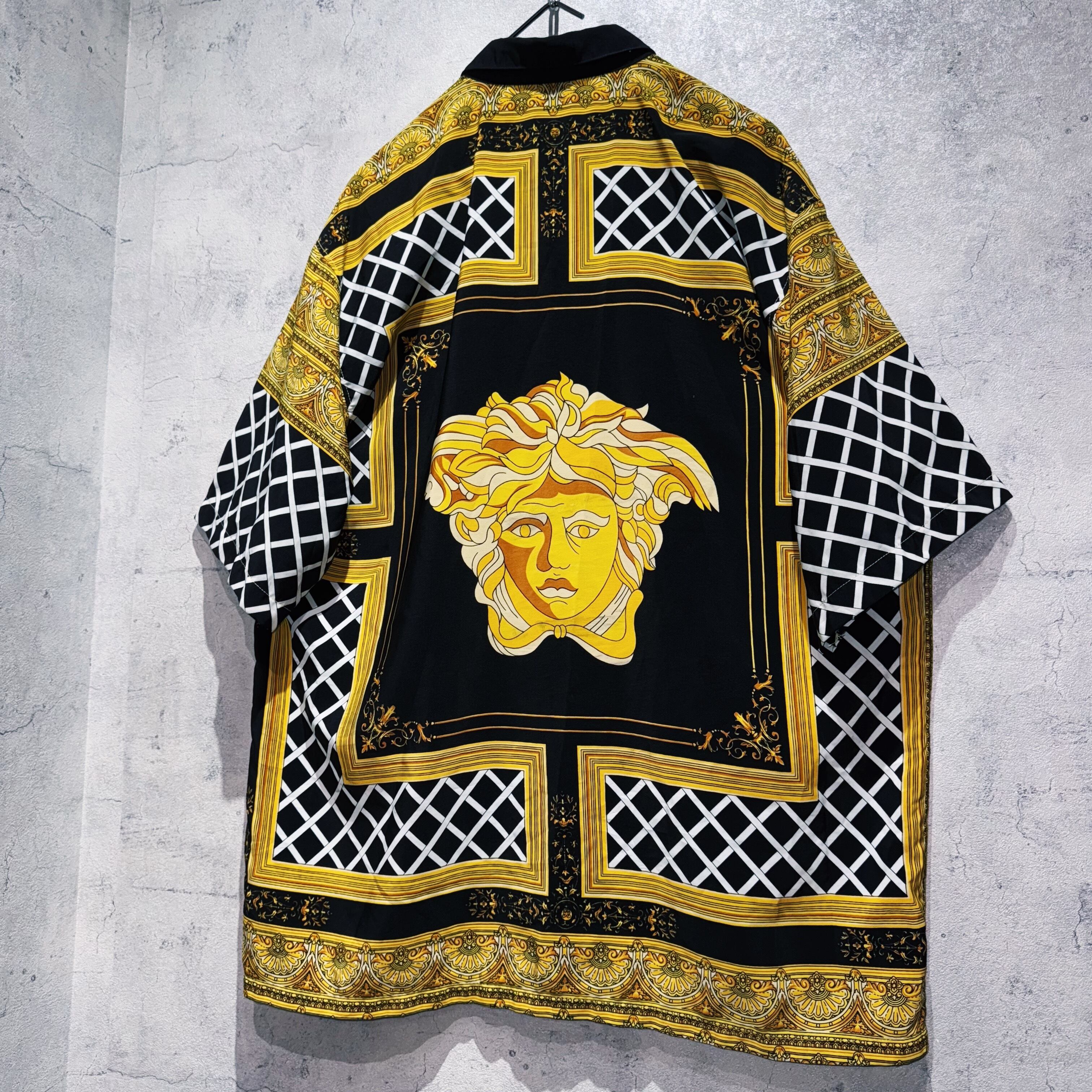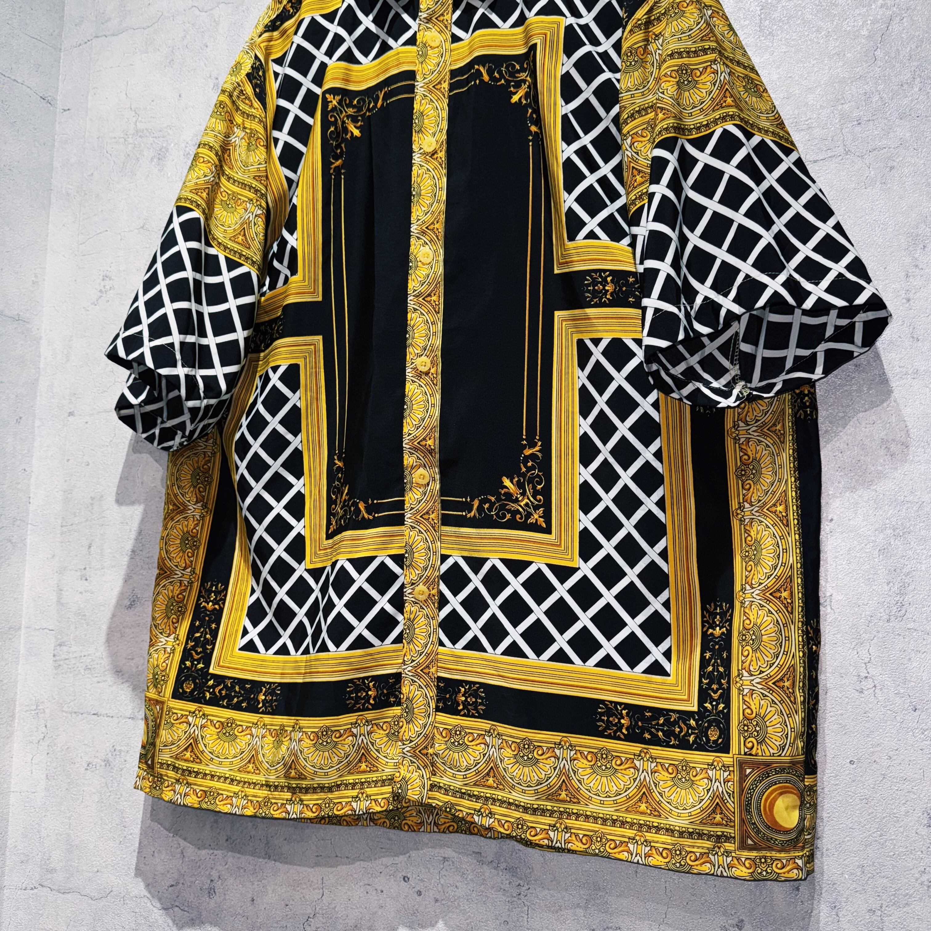"HERMES"や"VERSACE”などでも採用されているバロック柄に加え、背面には圧倒的な存在感を放つメデューサヘッドを載せたラグジュアリーな半袖シャツ。モノトーン×ゴールドのカラーリングは品格があり圧巻…