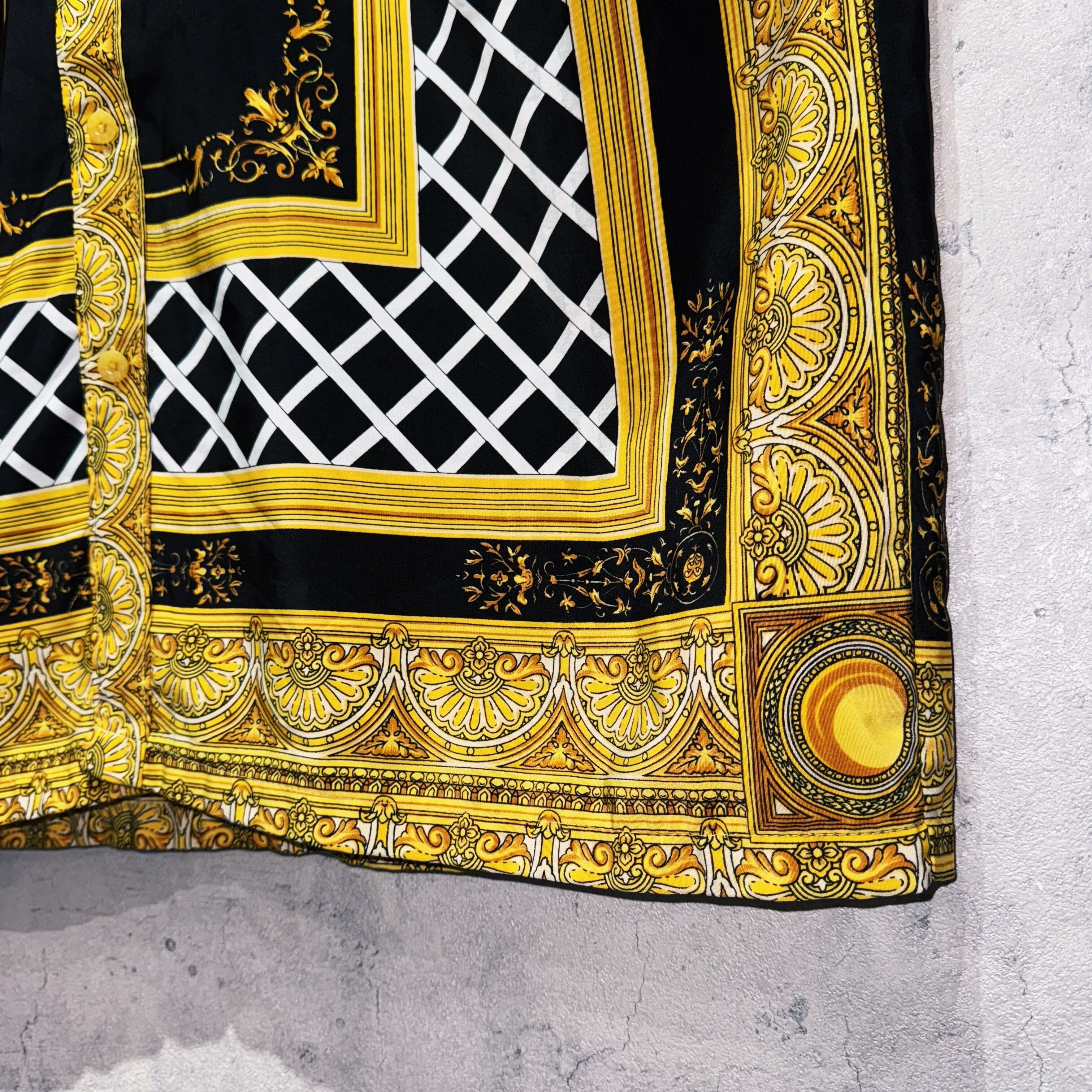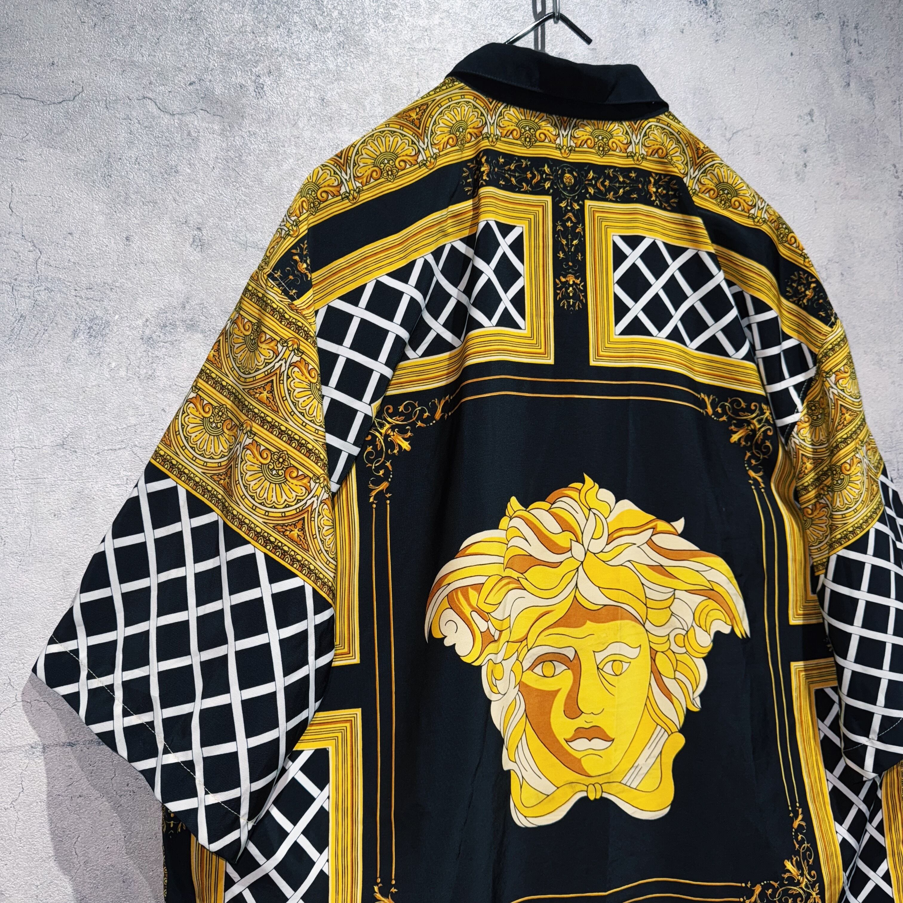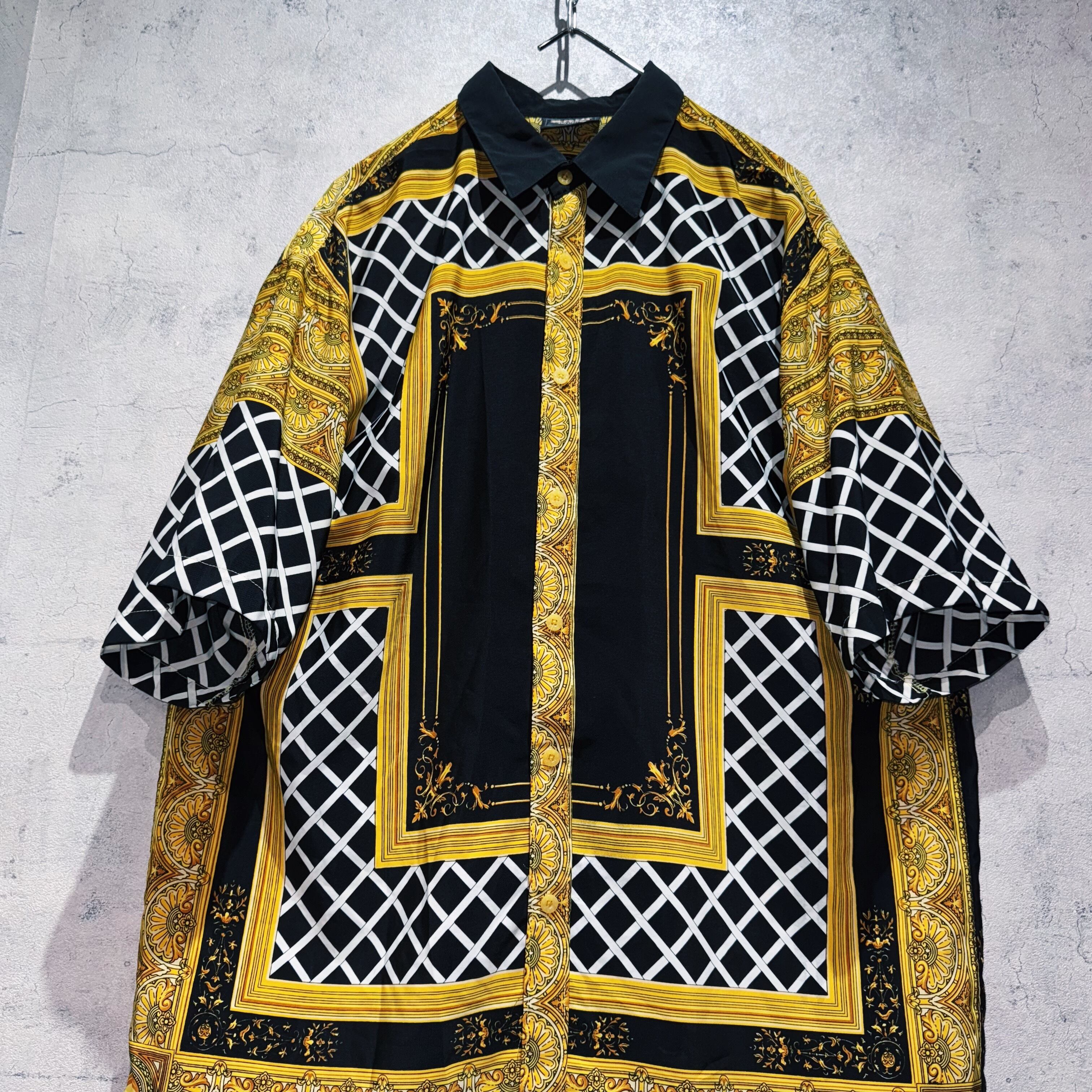 "HERMES"や"VERSACE”などでも採用されているバロック柄に加え、背面には圧倒的な存在感を放つメデューサヘッドを載せたラグジュアリーな半袖シャツ。モノトーン×ゴールドのカラーリングは品格があり圧巻…
