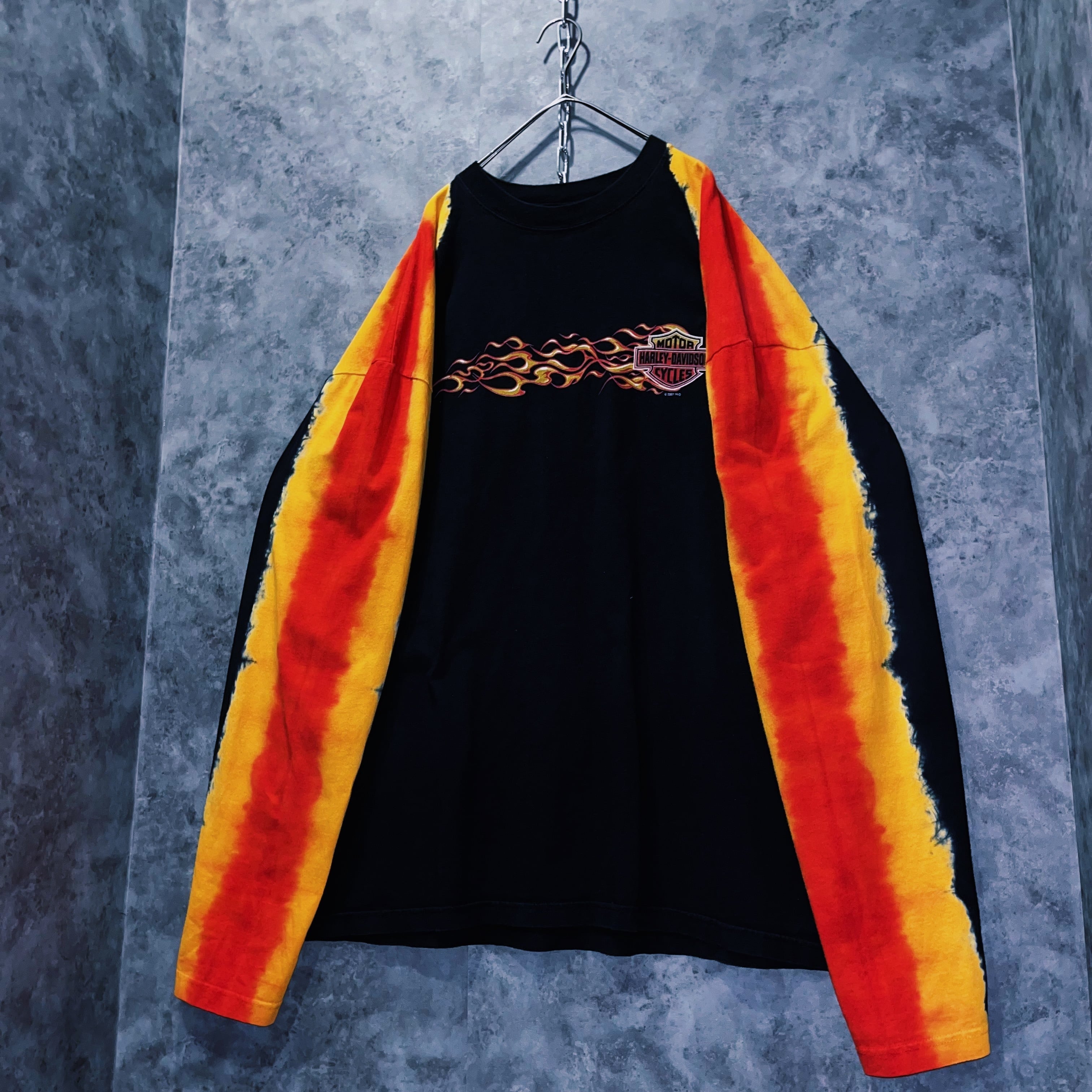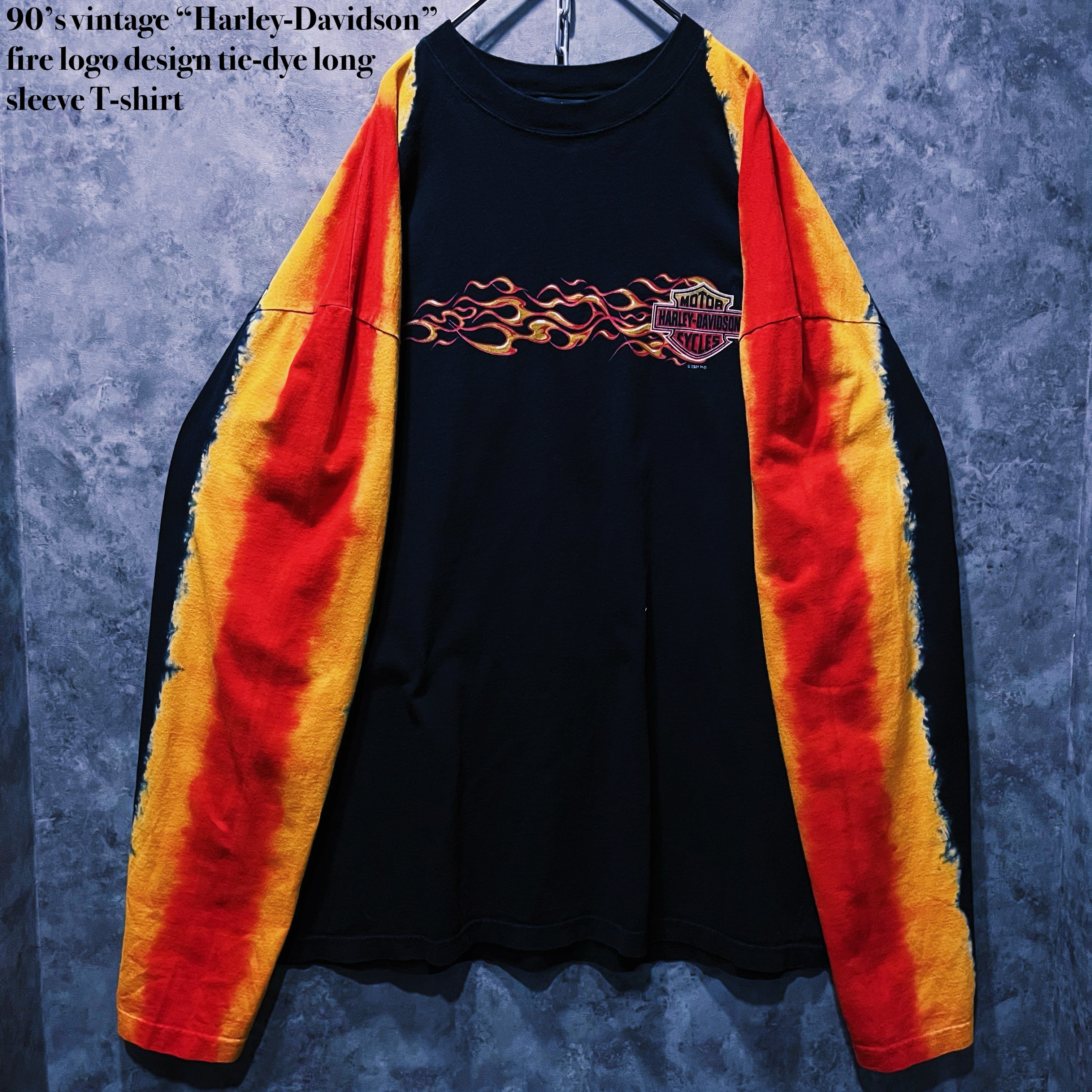 90’s ヴィンテージ“Harley-Davidson”ファイアーロゴデザインタイ-ダイロングスリーブTシャツ