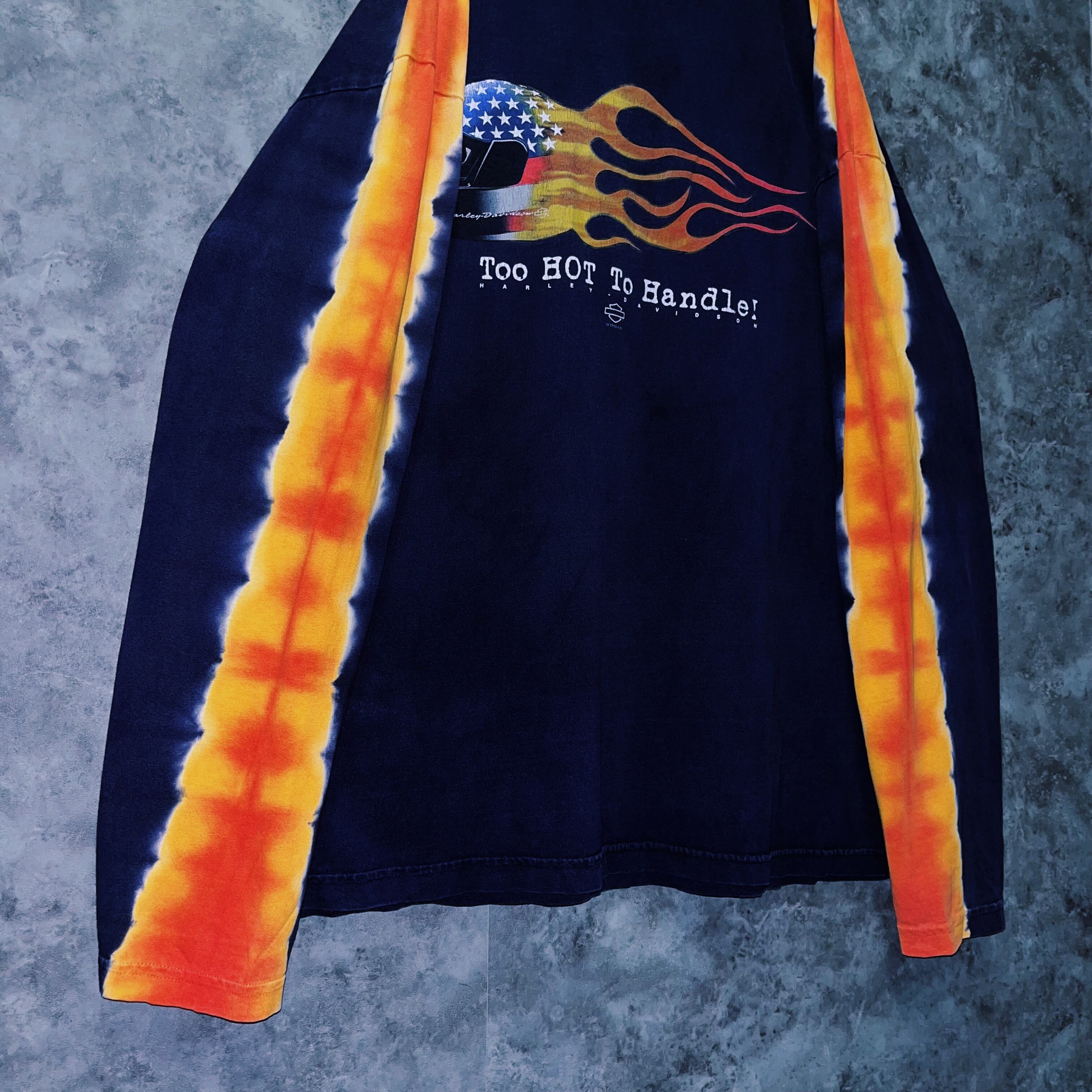 90’sヴィンテージ“Harley-Davidson”ファイアーパターンダイデザインロングスリーブTシャツ