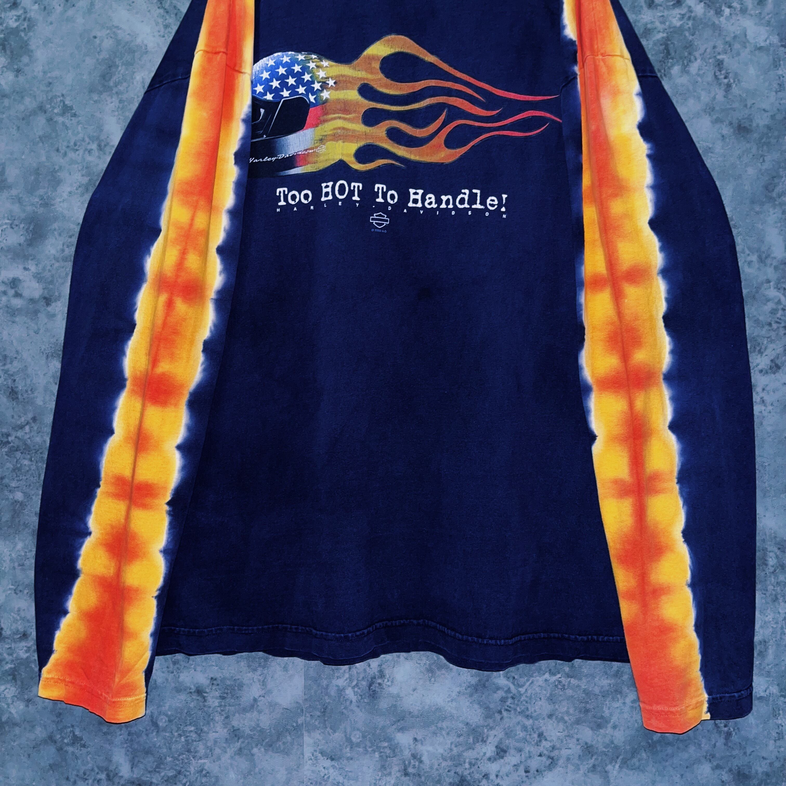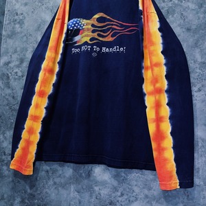 90’s vintage “Harley-Davidson” fire pattern dyed design long sleeve T-shirt