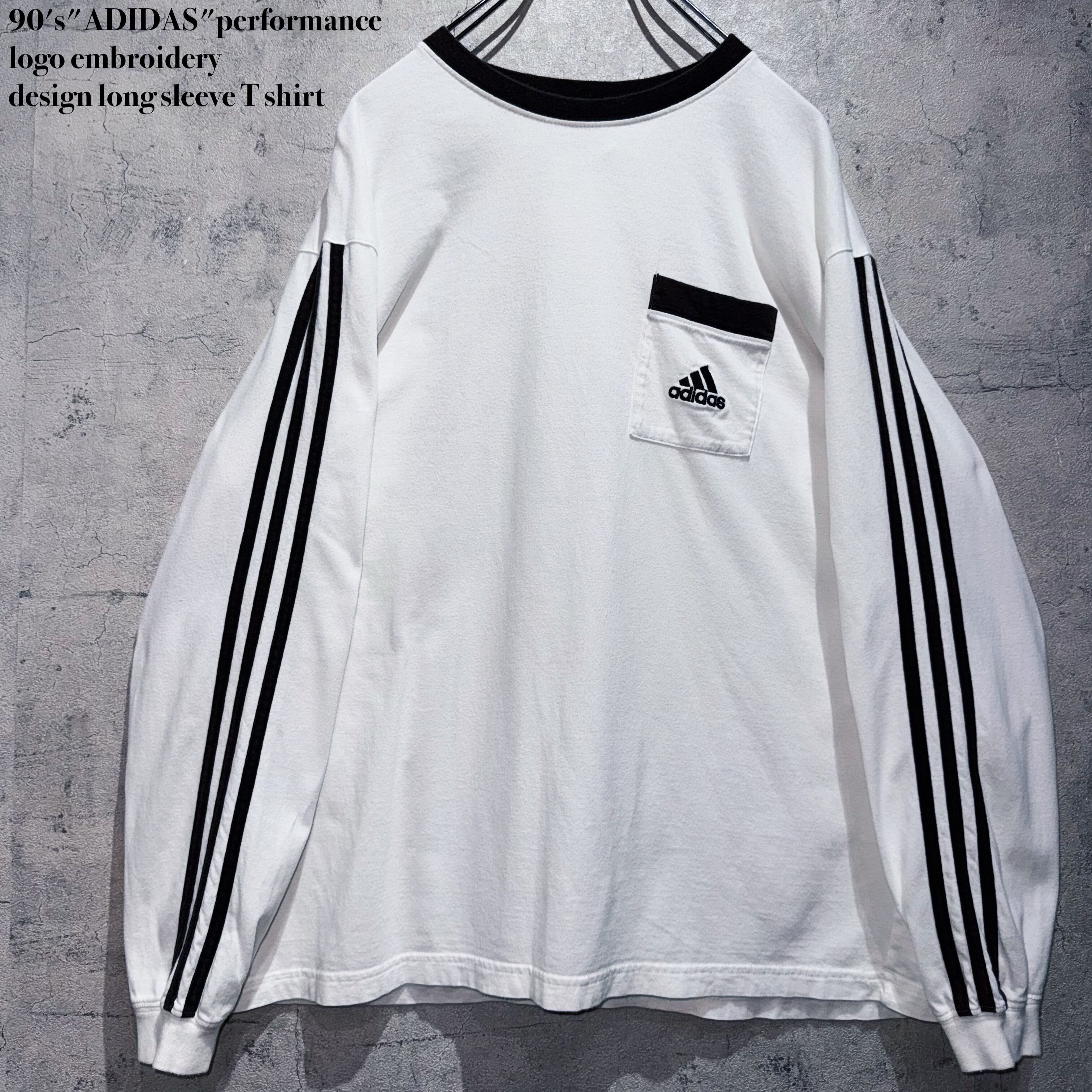 90年代"アディダス"パフォーマンスロゴエンブロイダリーデザインロングスリーブTシャツ