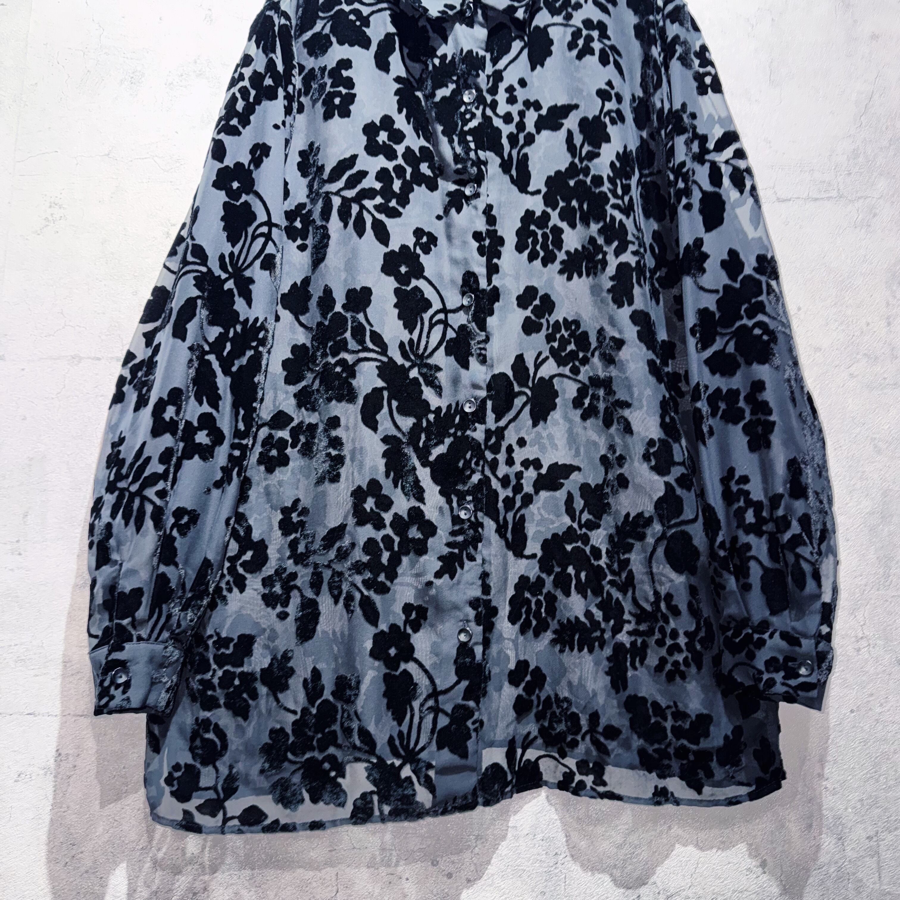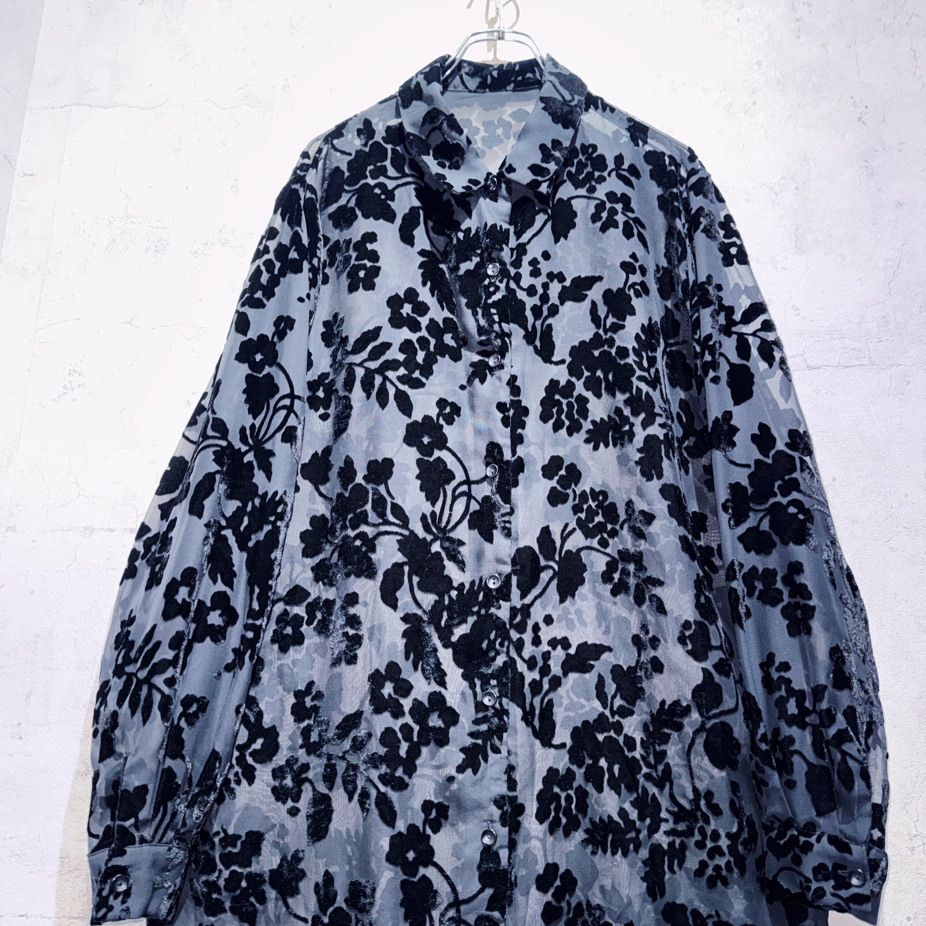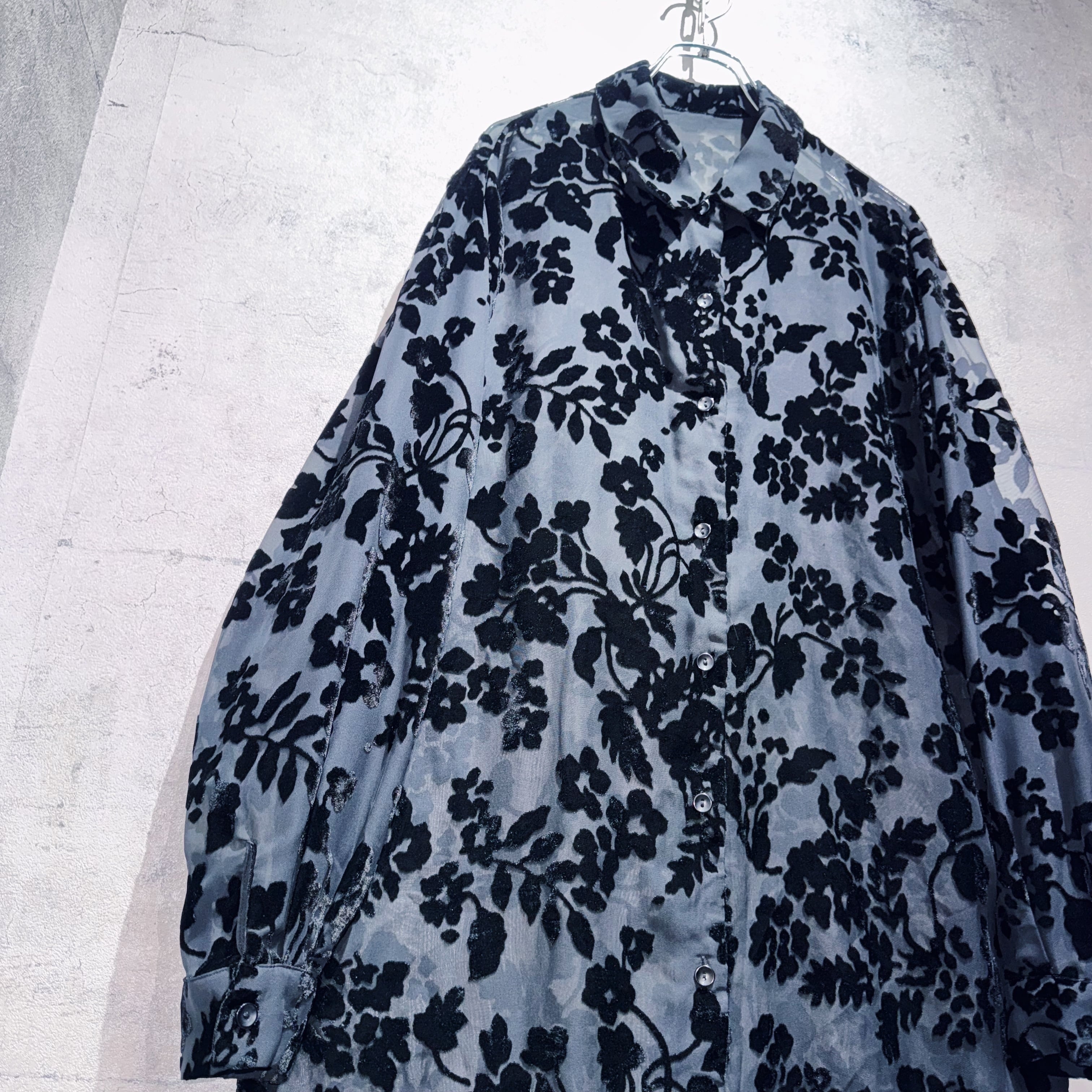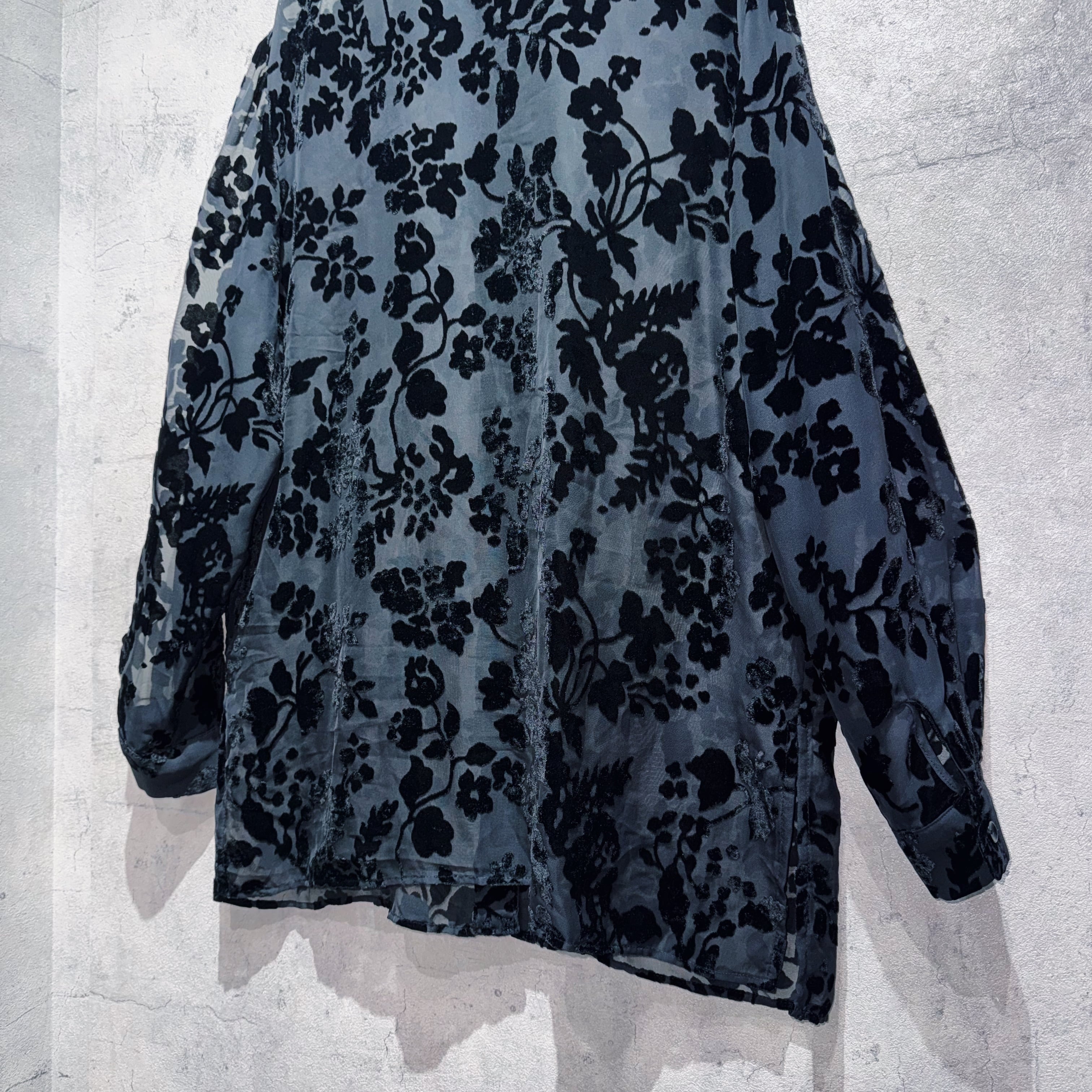 ヴィンテージボタニカルパターンデザインベルベットシアーシャツ