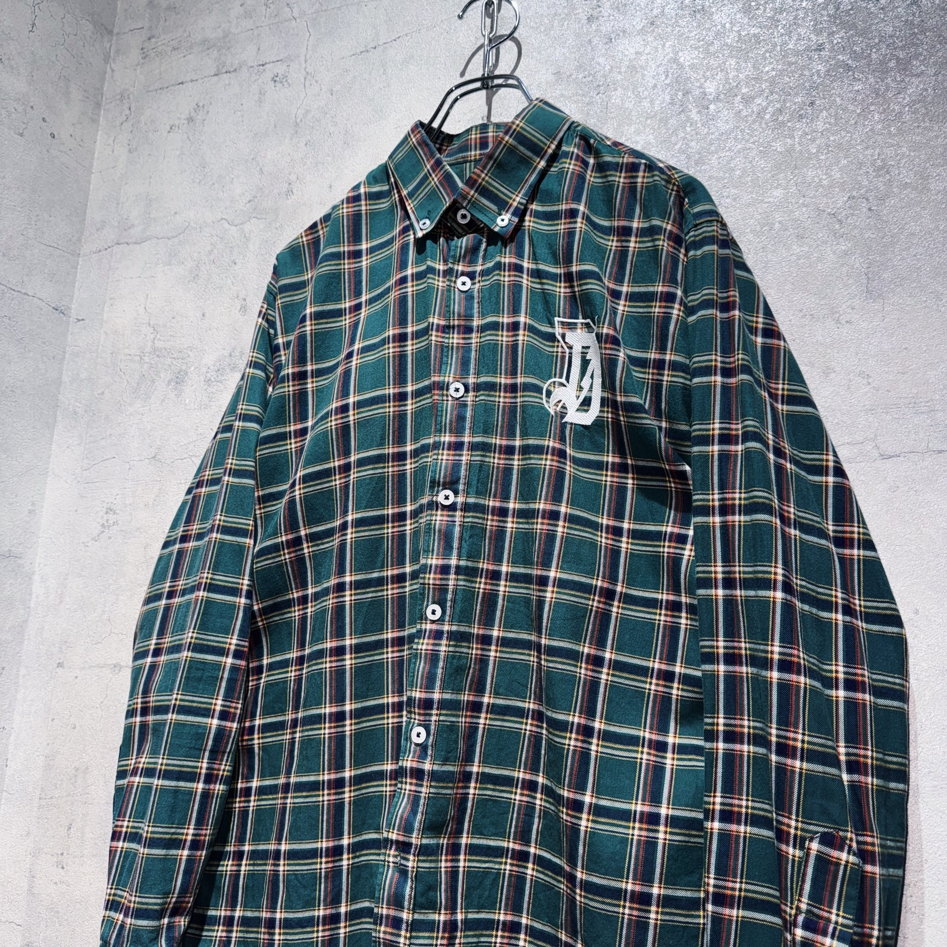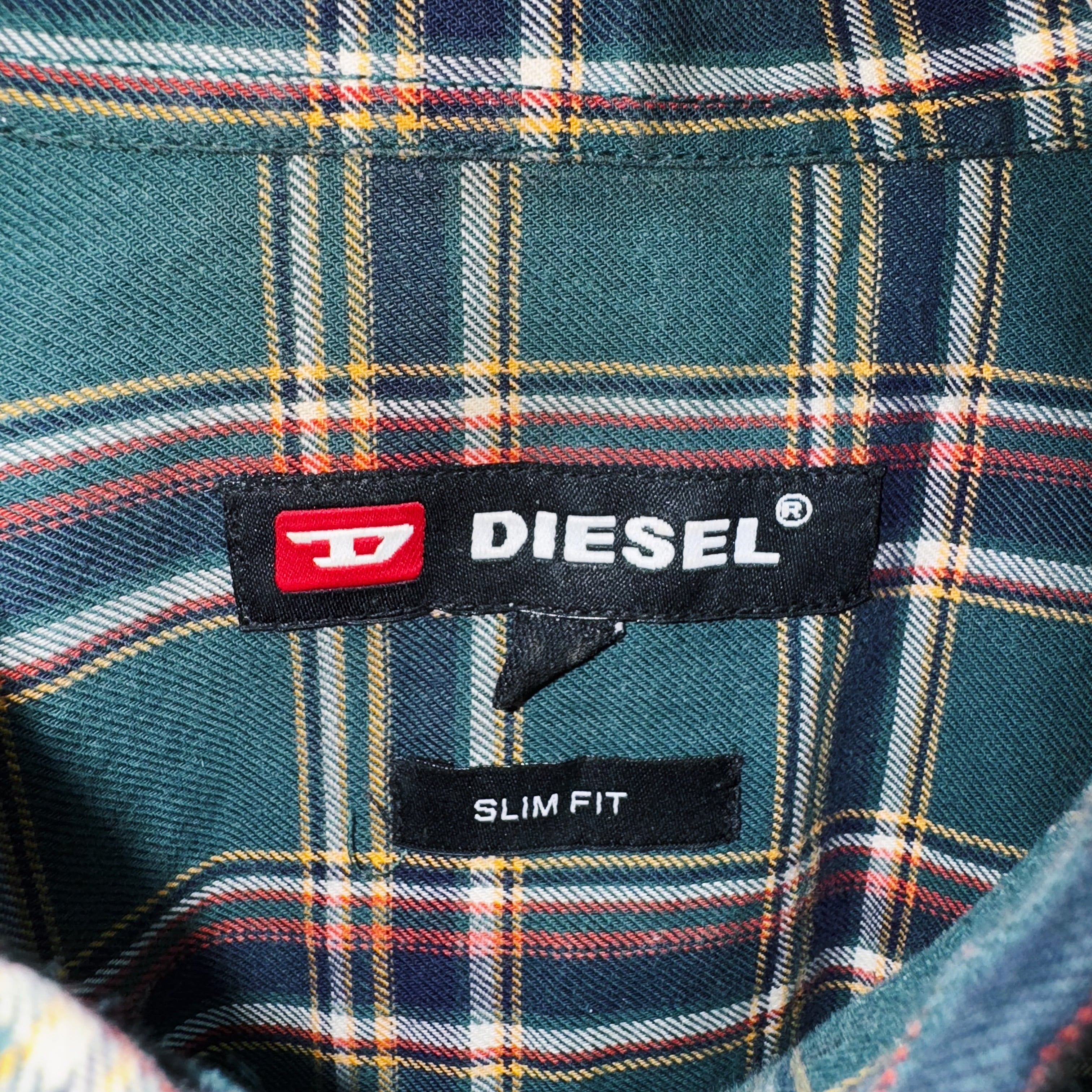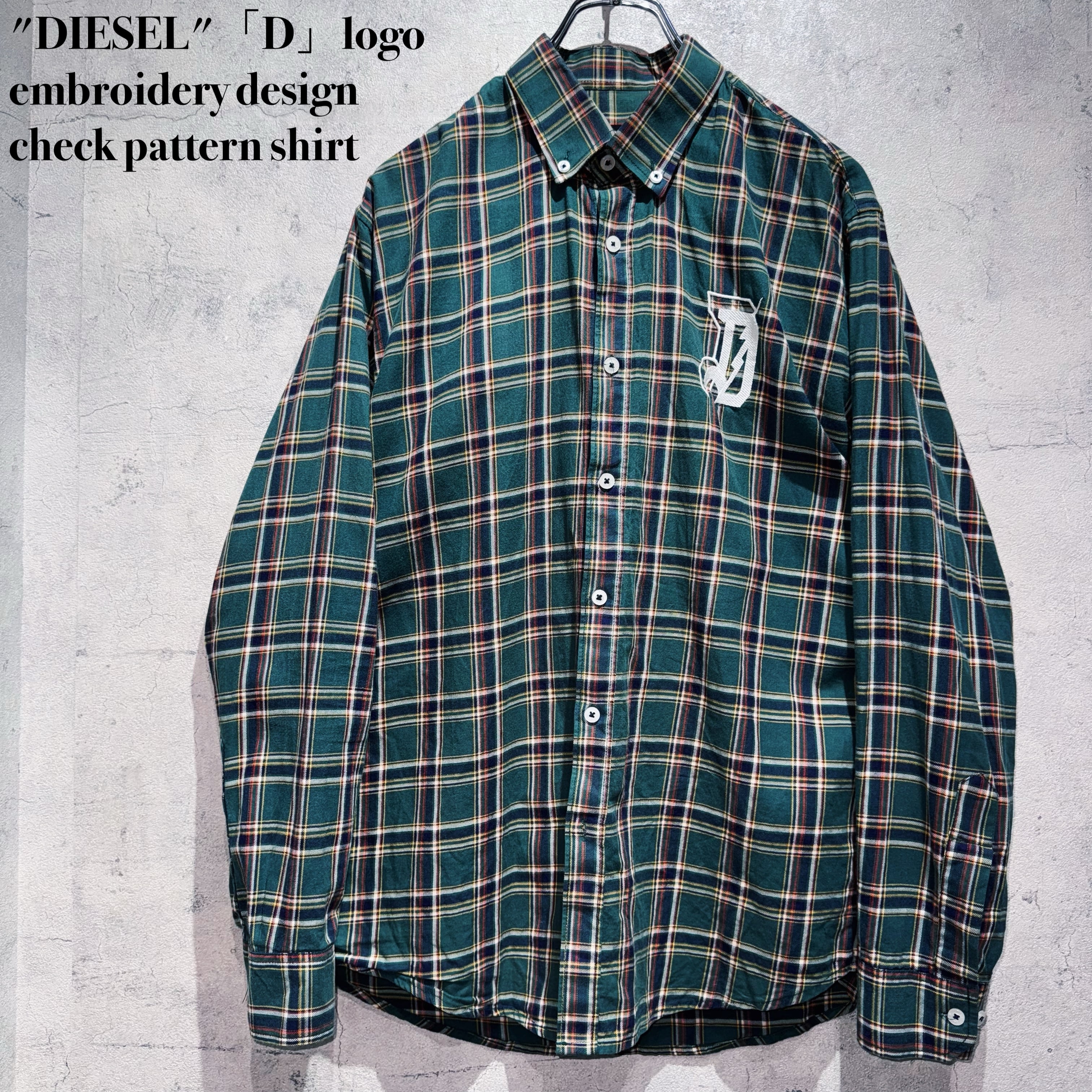 "DIESEL"「D」logo embroidery design check pattern shirt