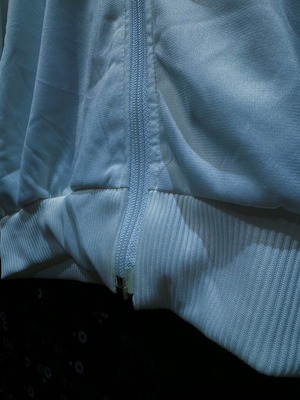 白地に漆黒のスリーストライプが映える、ヴィンテージadidasトラックジャケット。
