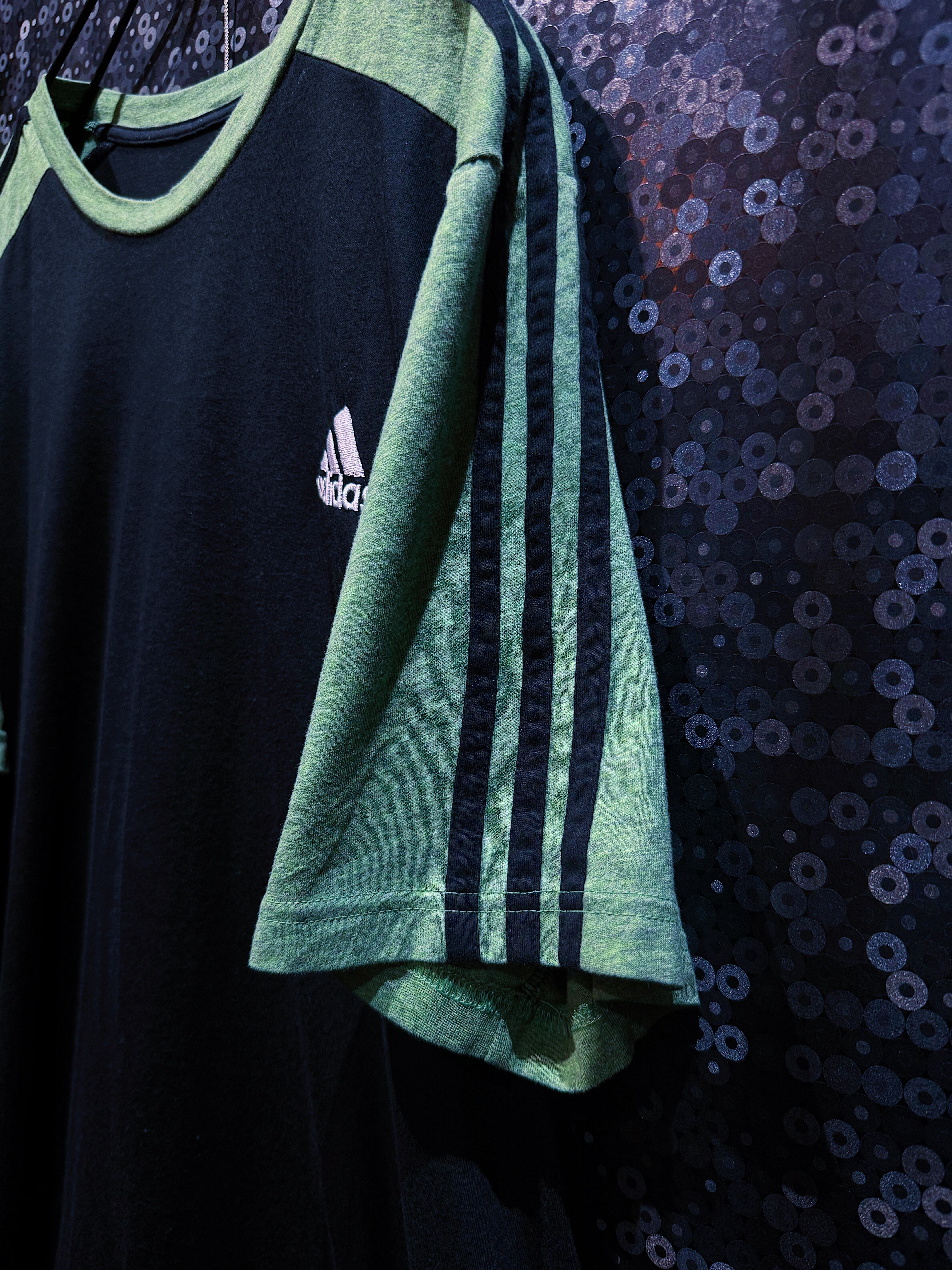 【ÆIEM】"adidas"vintage performance logo Green neck line coloring Black T-shirt