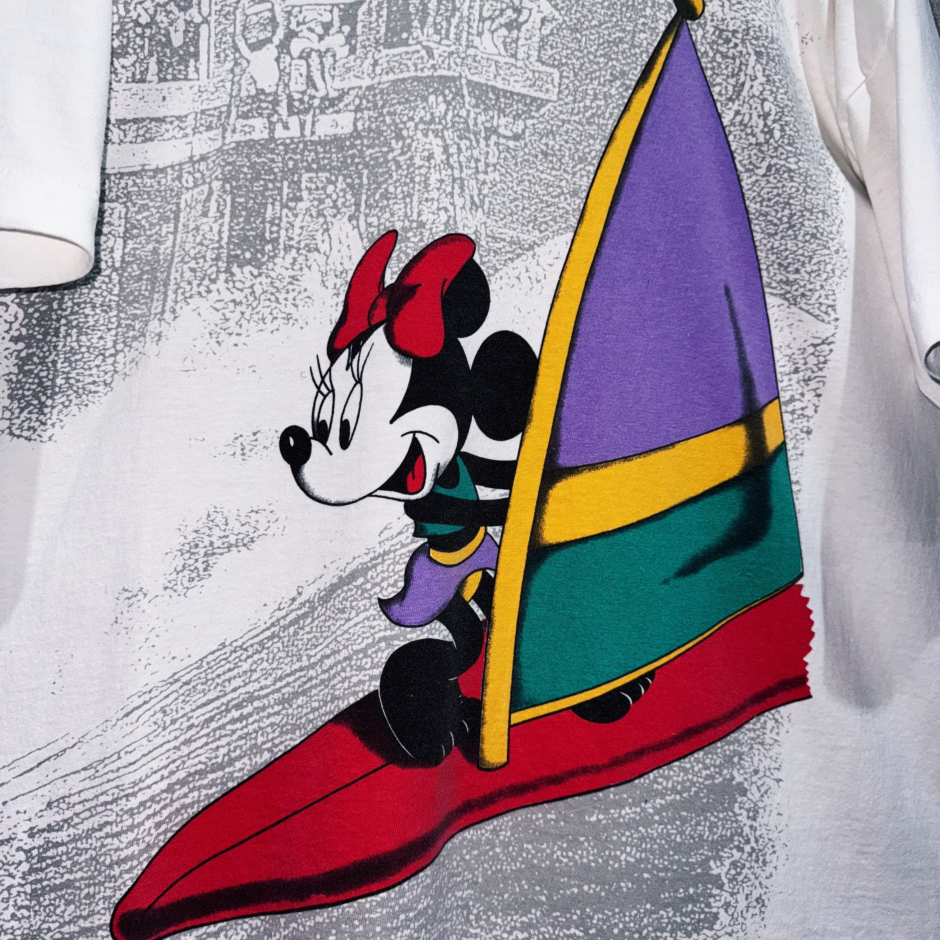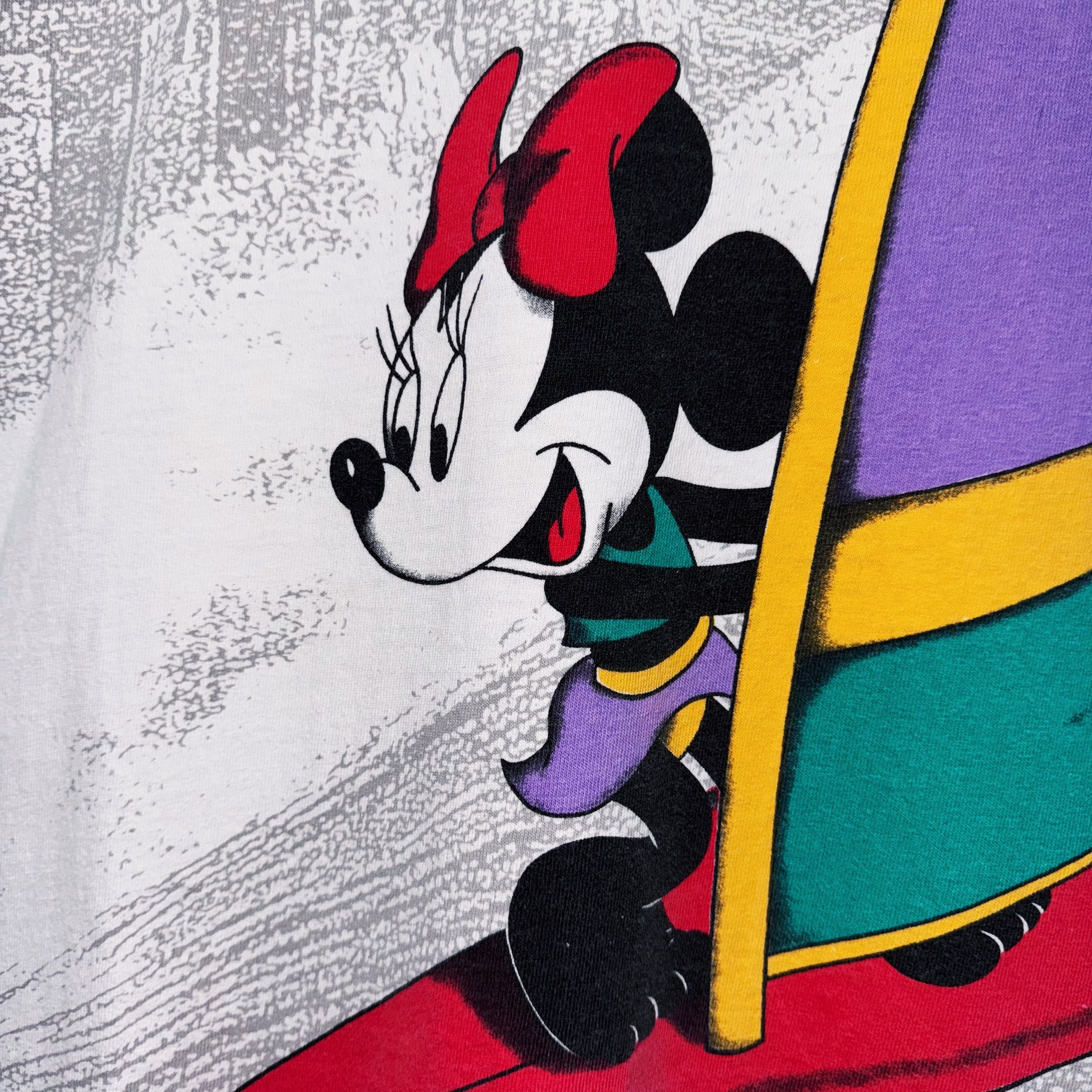 90年代"ミニーマウス"サーフィングラフィックデザインルーズTシャツ