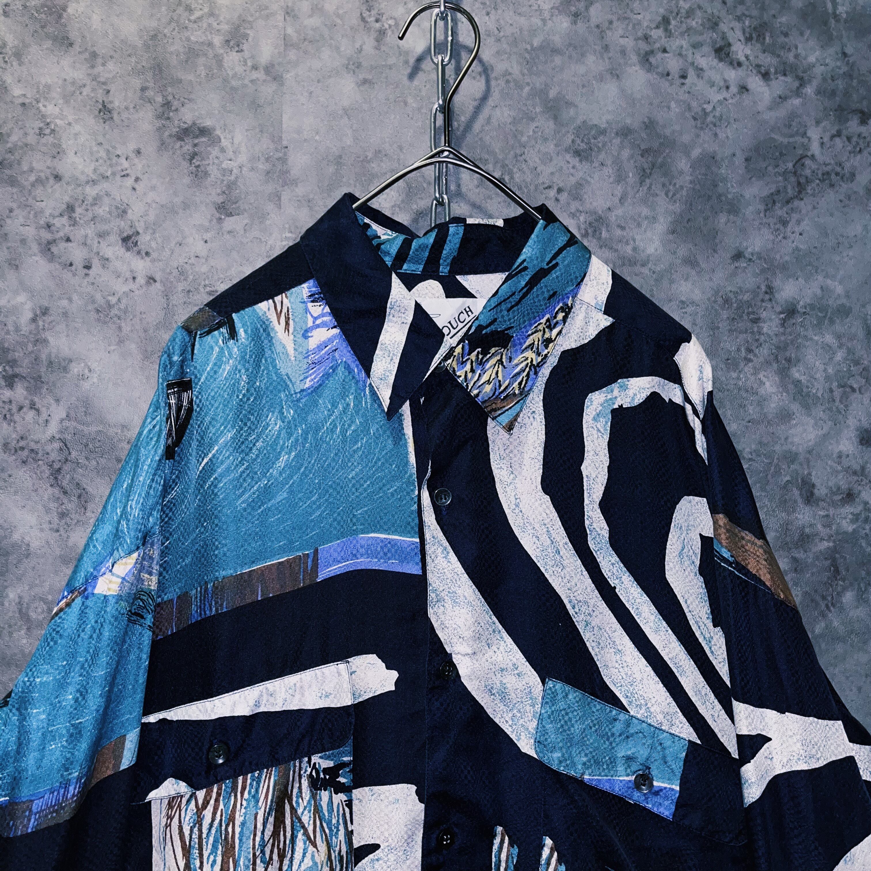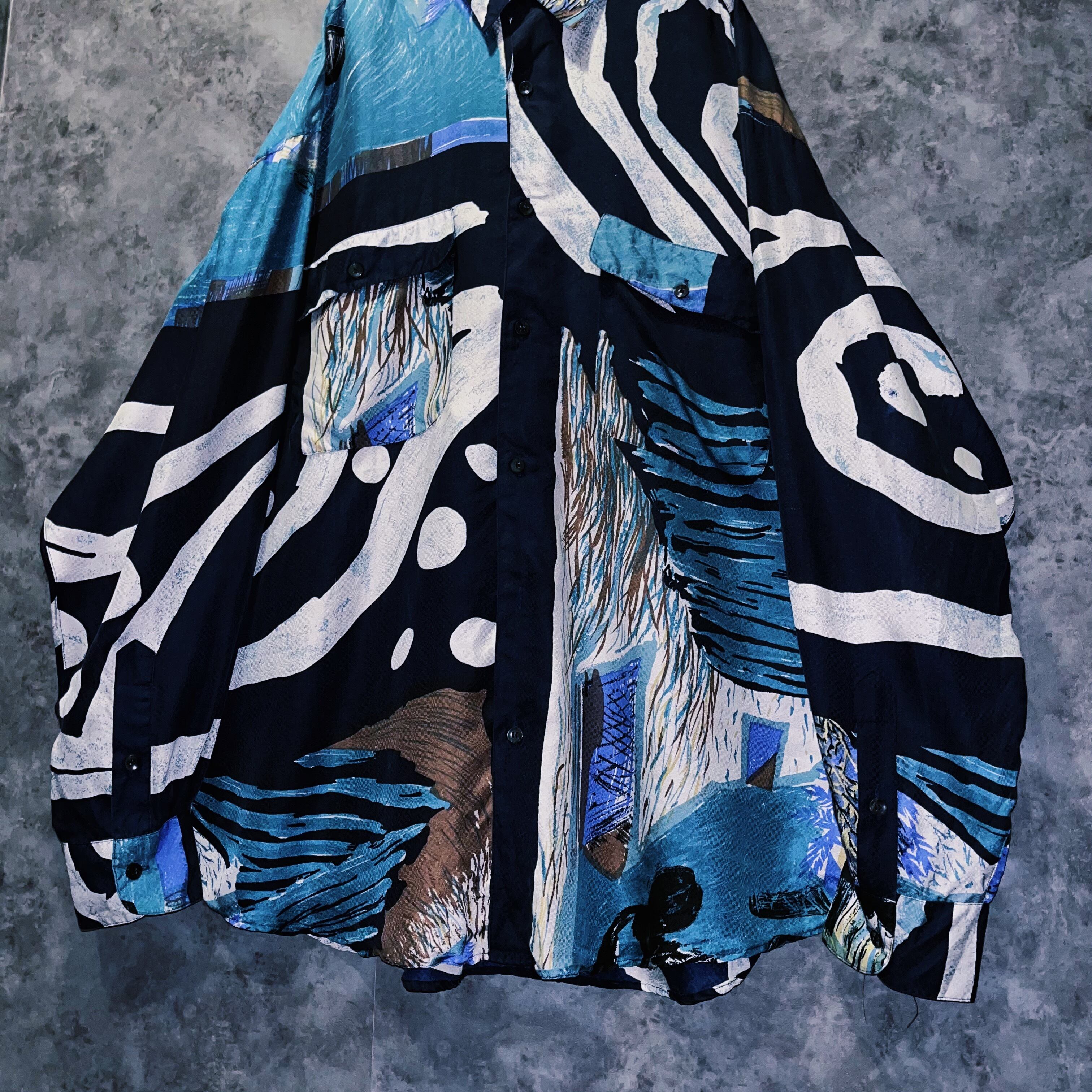 【doppio】"Dead stock"90's Art graphic pattern design silk shirt