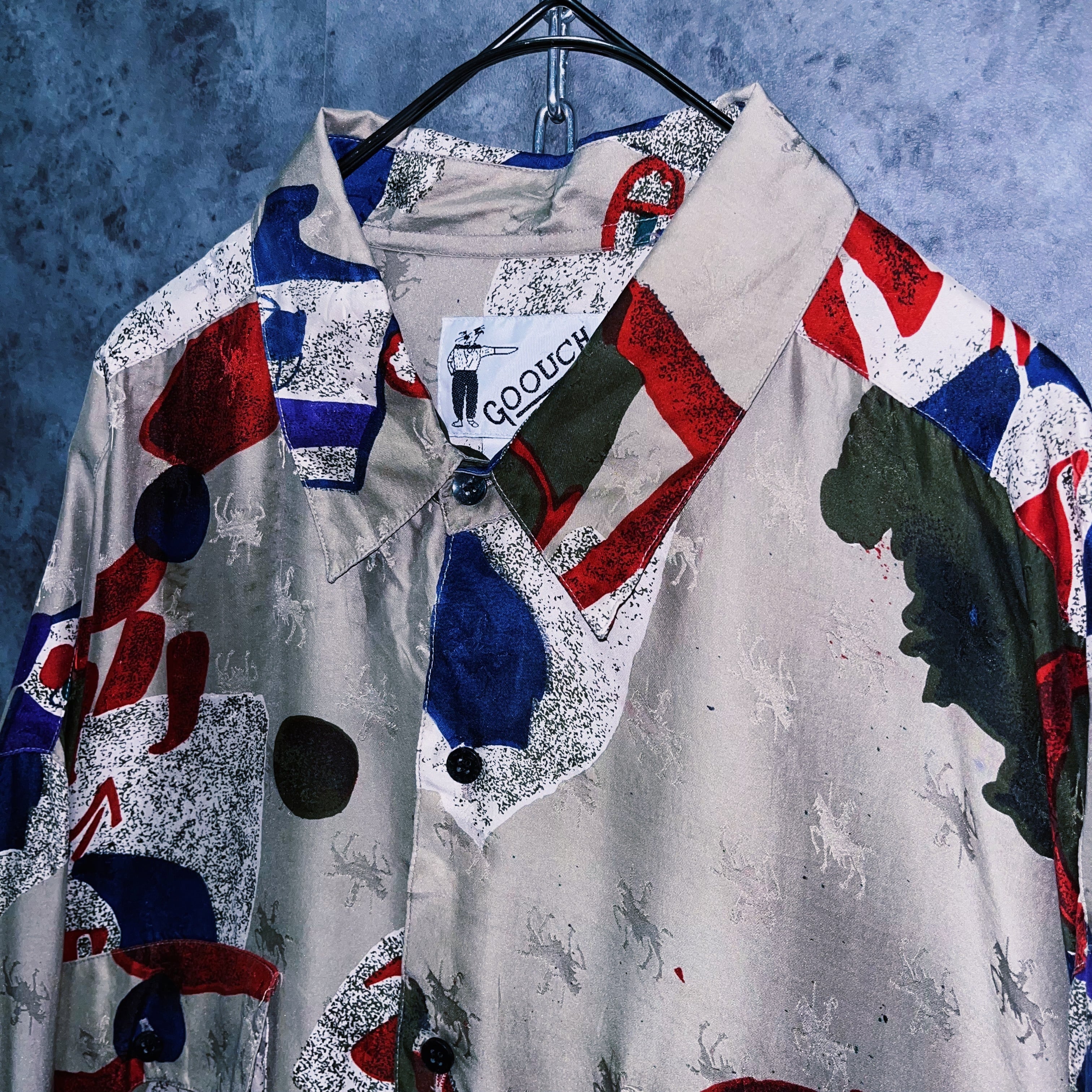 【doppio】"Dead stock"90's Art graphic pattern design silk shirt