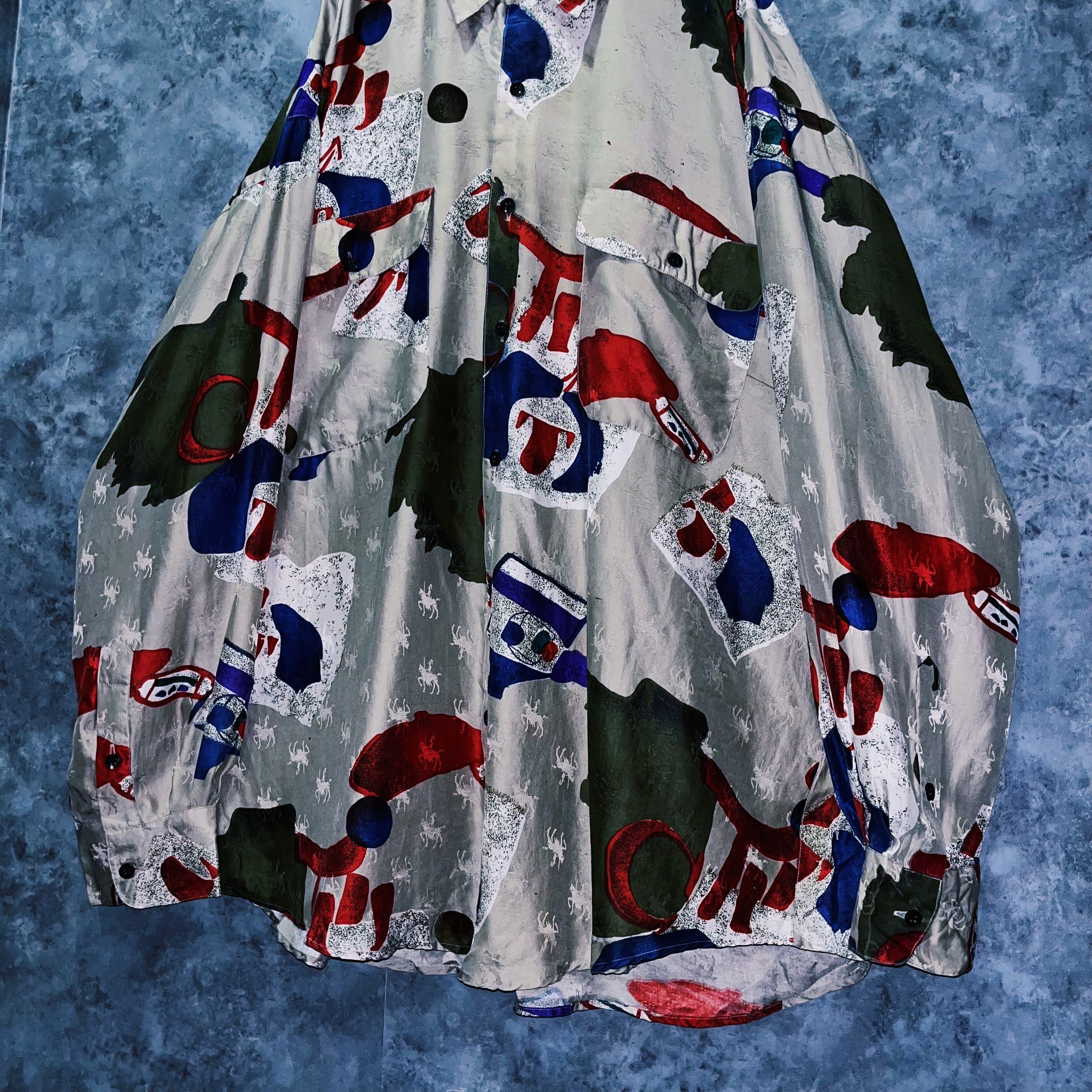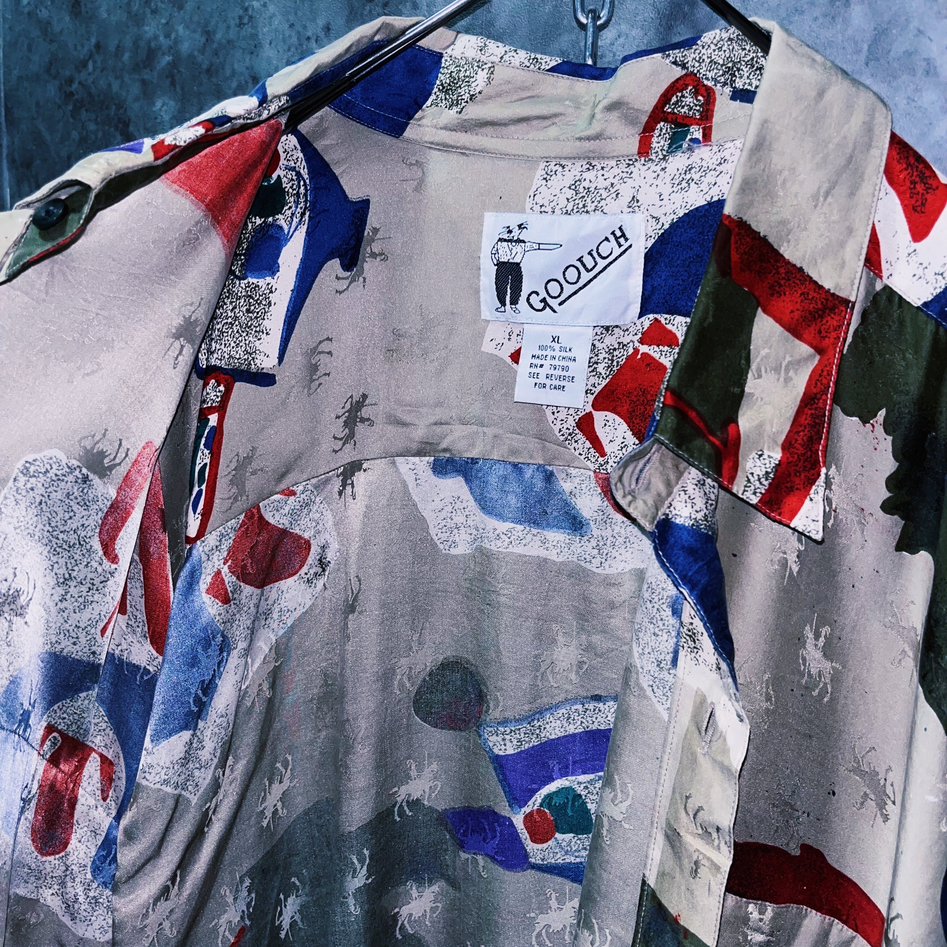 "デッドストック"90年代アートグラフィックパターンデザインシルクシャツ