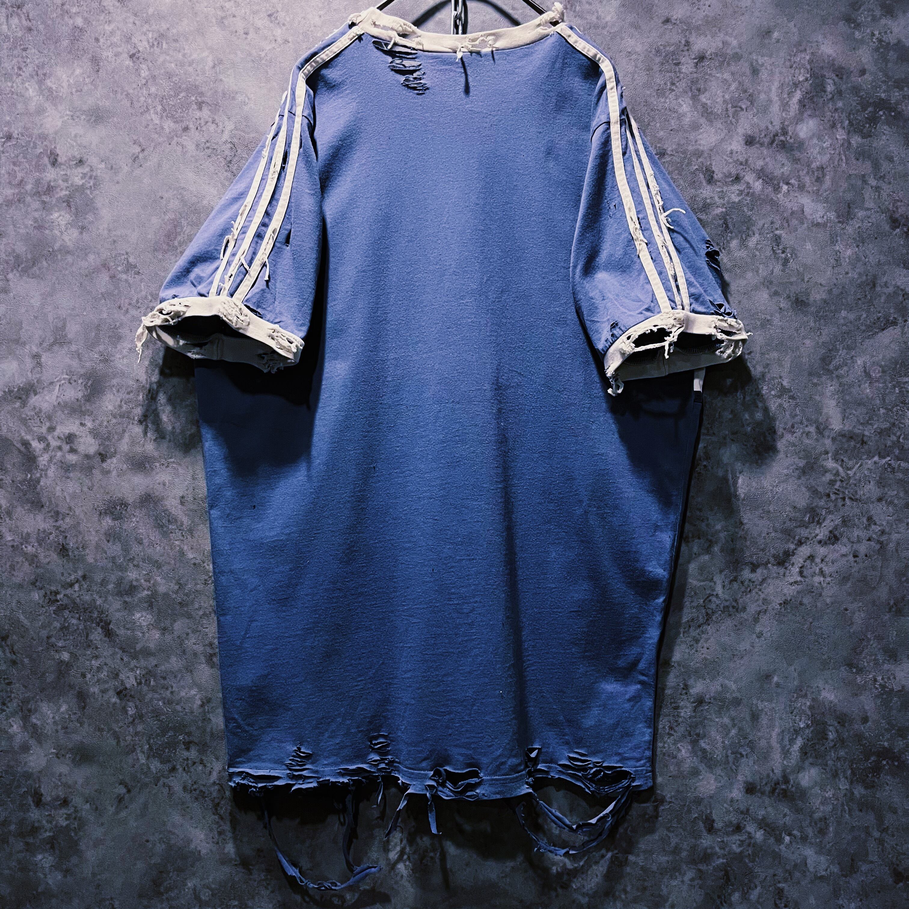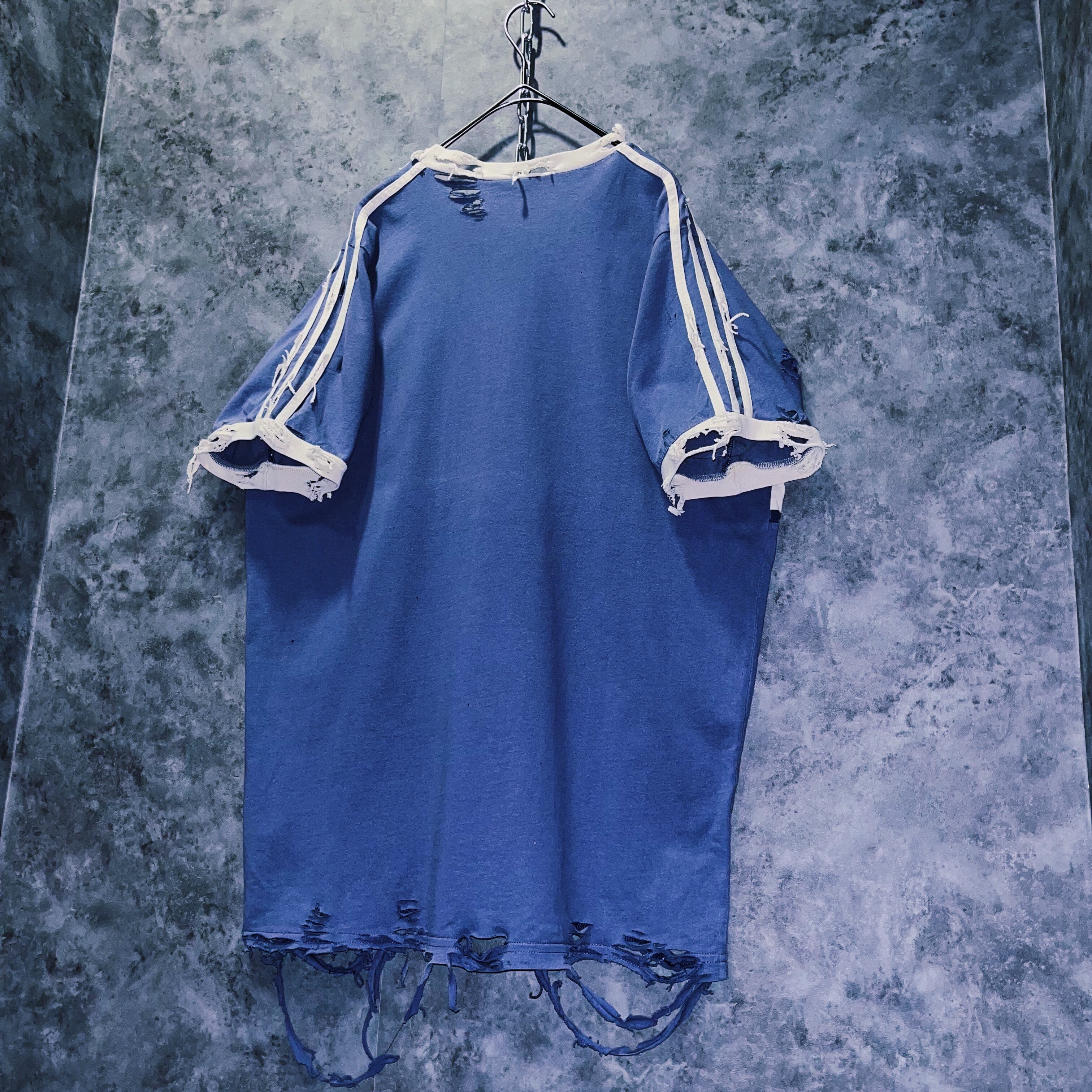 【doppio】vintage “adidas” three stripe design boro custom ringer T-shirt